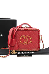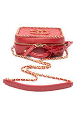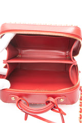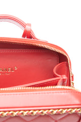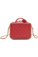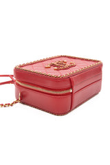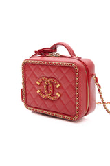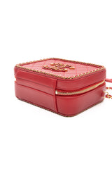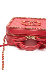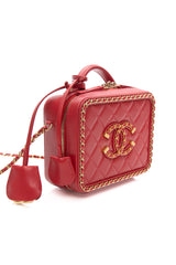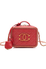 CHANEL Red Quilted Goatskin Filigree Chain Around Vanity Case