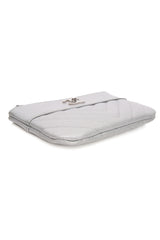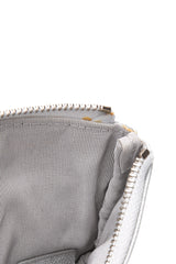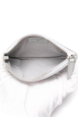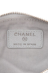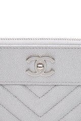 CHANEL Metallic Silver Caviar Chevron Quilted Small Mademoiselle Zip Pouch Case