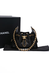 CHANEL 26P Black Caviar Quilted Chanel 25 Mini Hobo Bag (New)