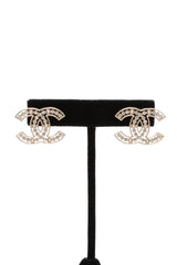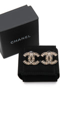 CHANEL Gold CC Crystal Pearl Earrings