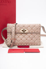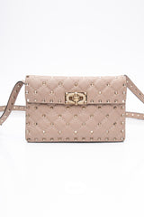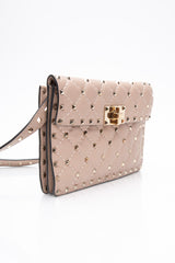 VALENTINO Rose Beige Rockstud Spike Leather Crossbody