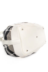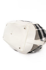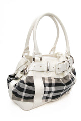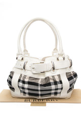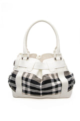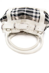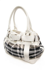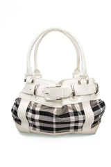 BURBERRY Black and White Check Beaton Leather Handle Bag