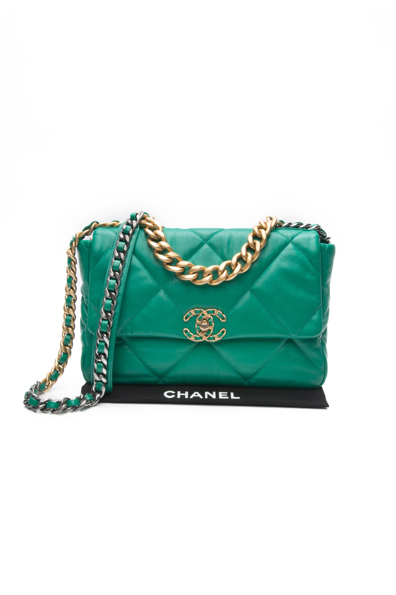 CHANEL 19 Green Quilted Lambskin Large Flap Bag