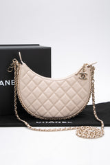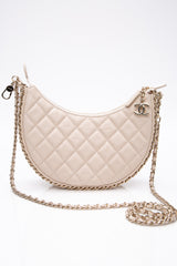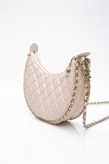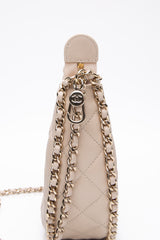 CHANEL 23P Ecru Light Beige Lambskin Quilted Small Hobo Bag