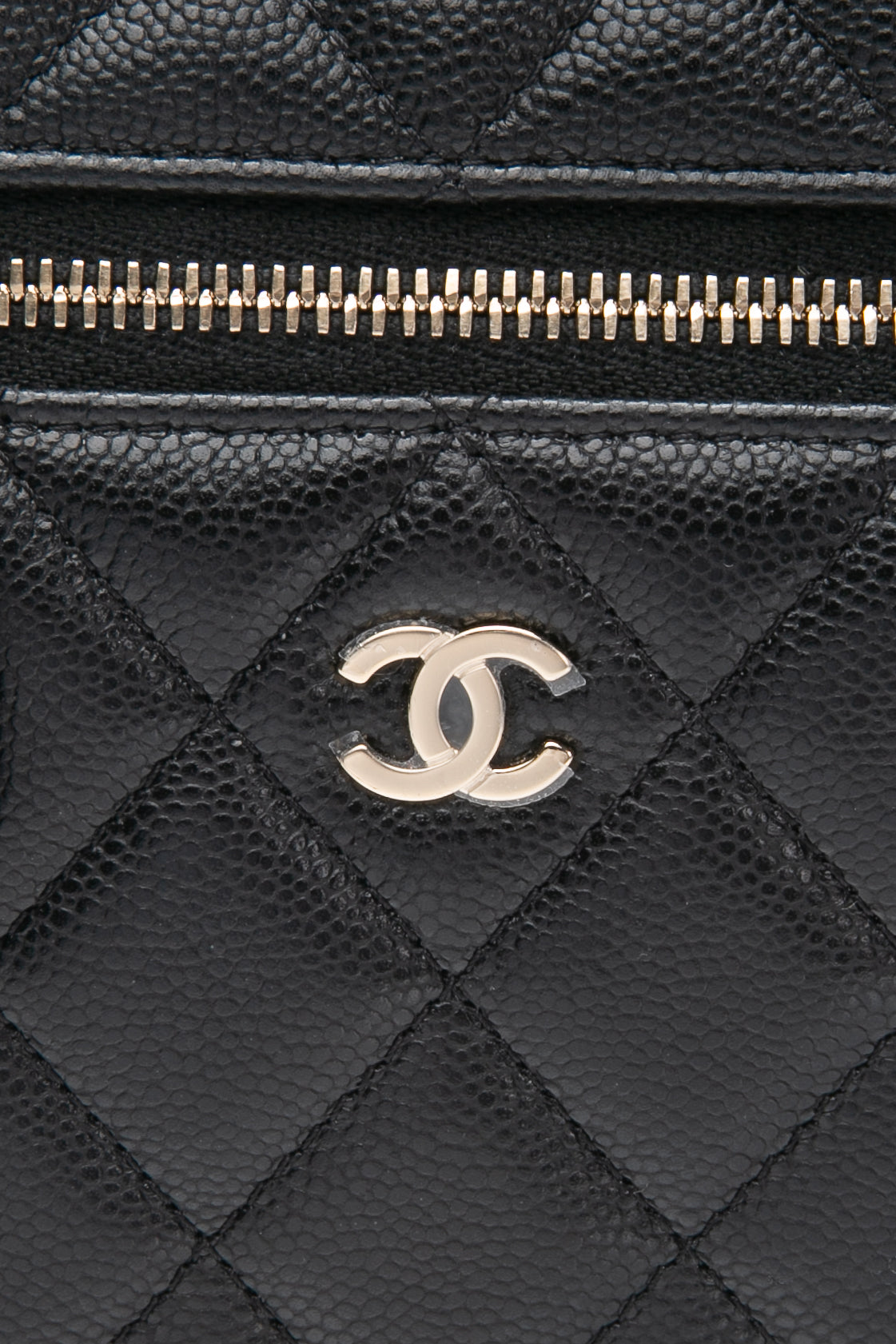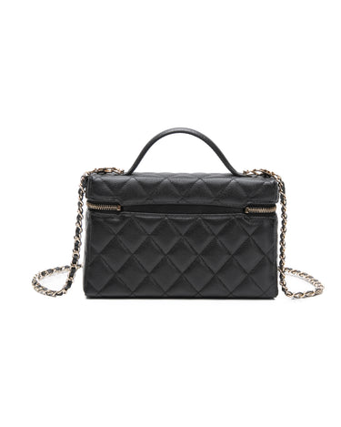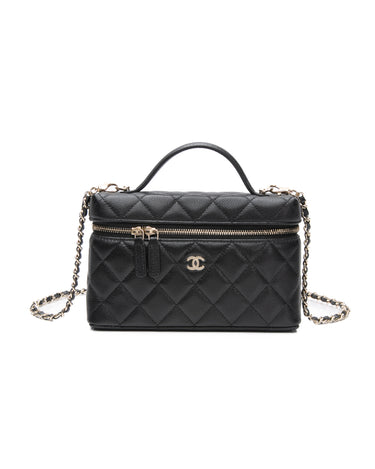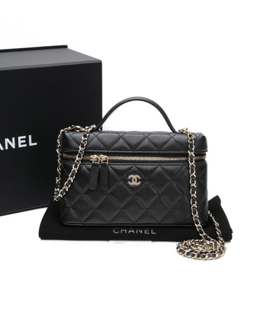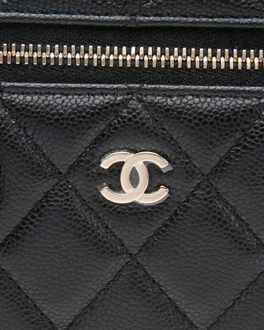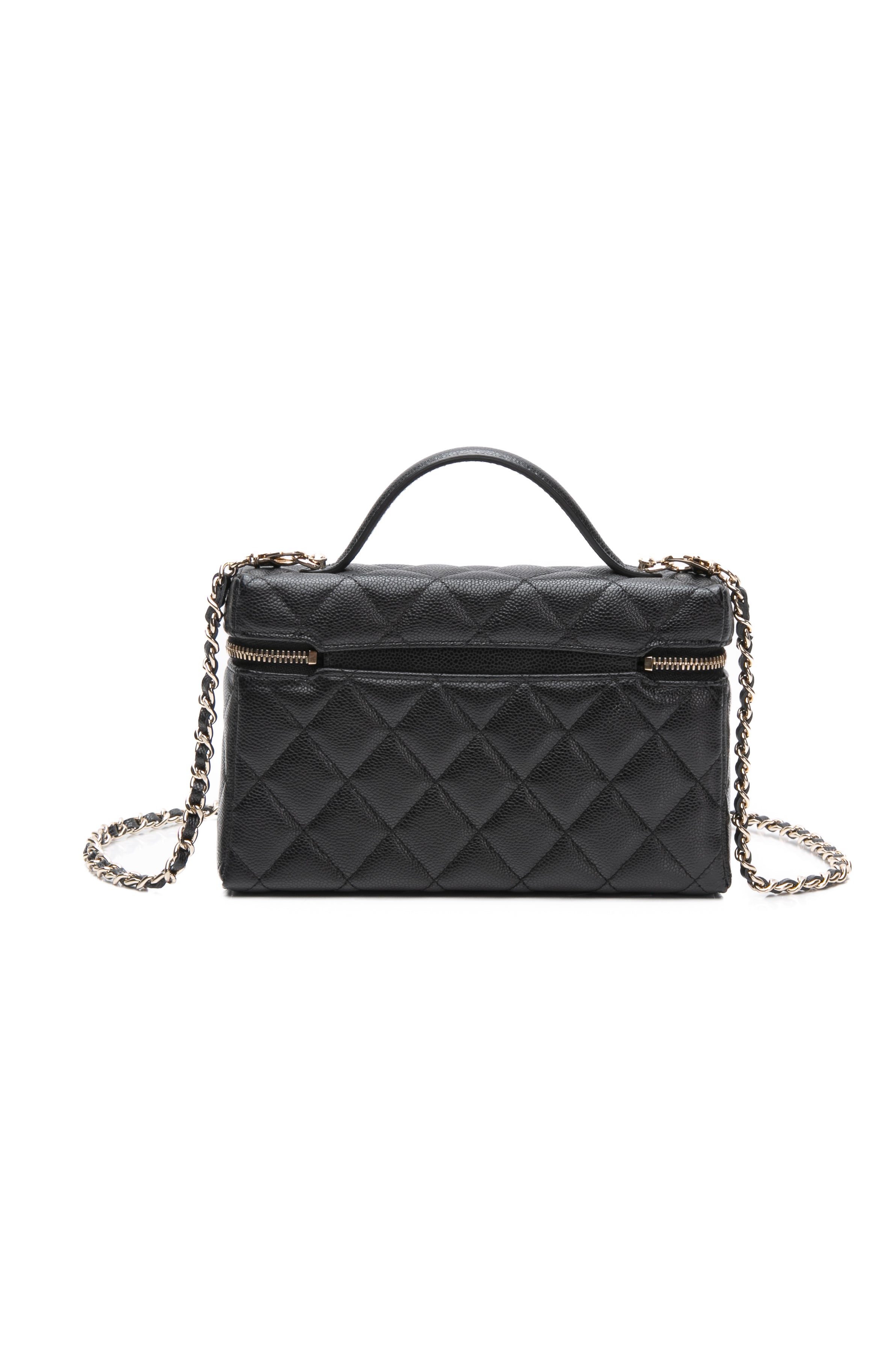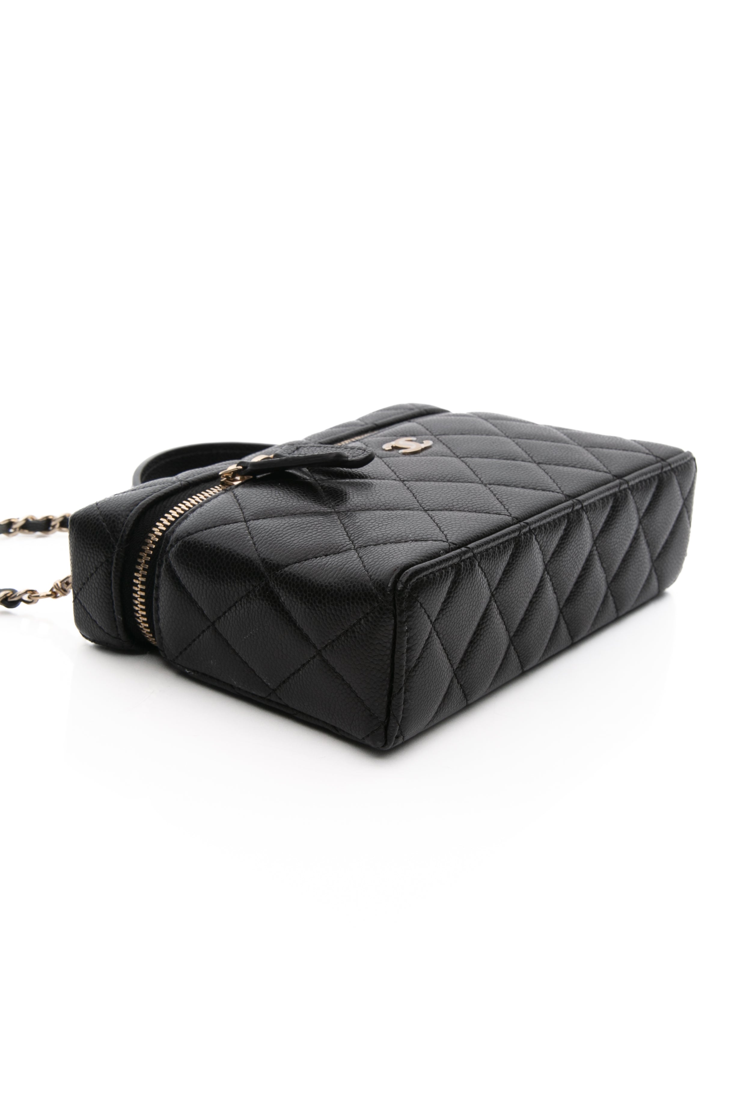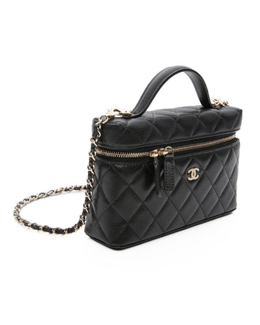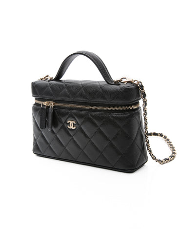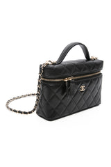 CHANEL 25K Black Caviar Quilted Top Handle Slim Vanity Case with Chain