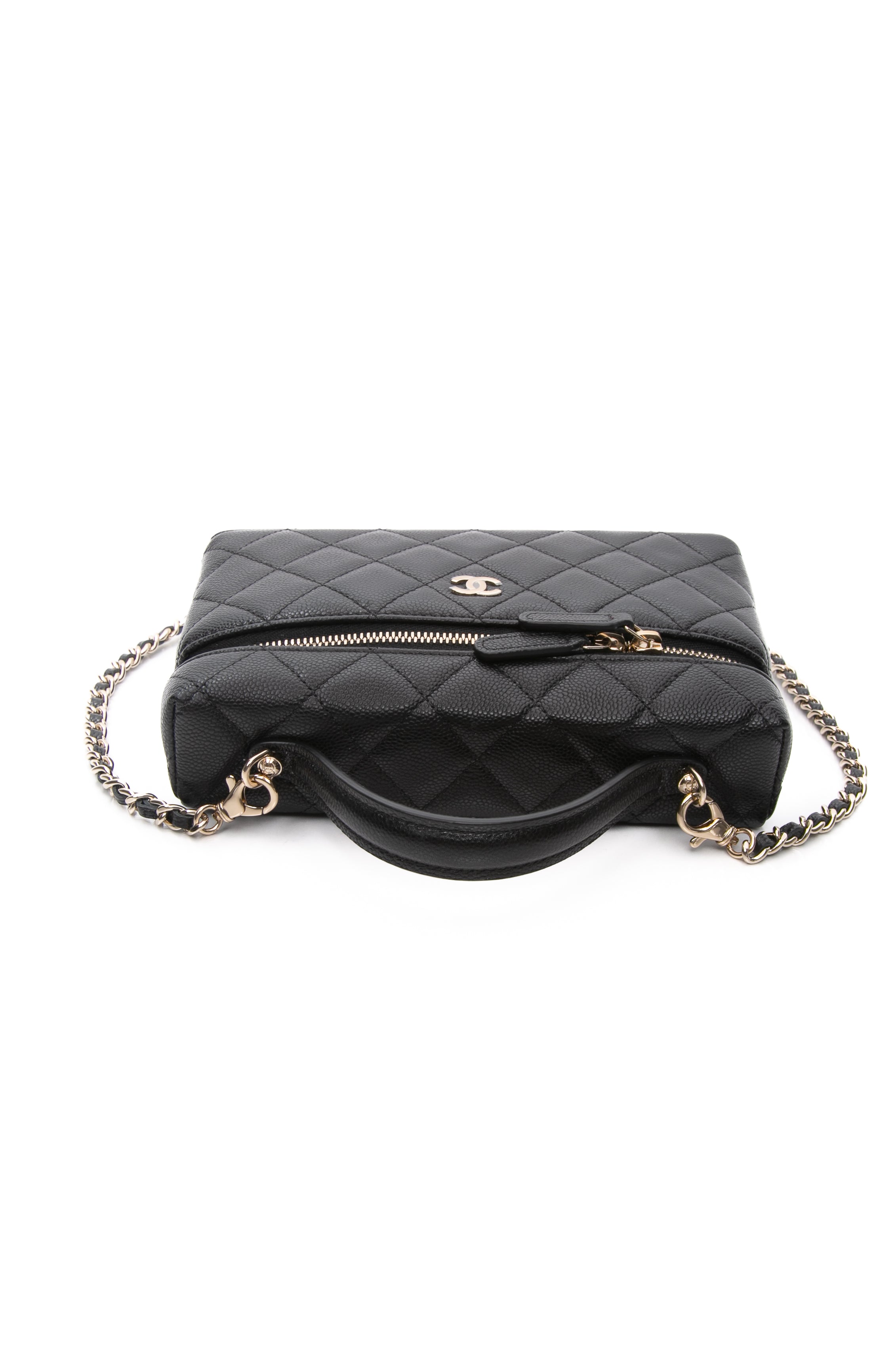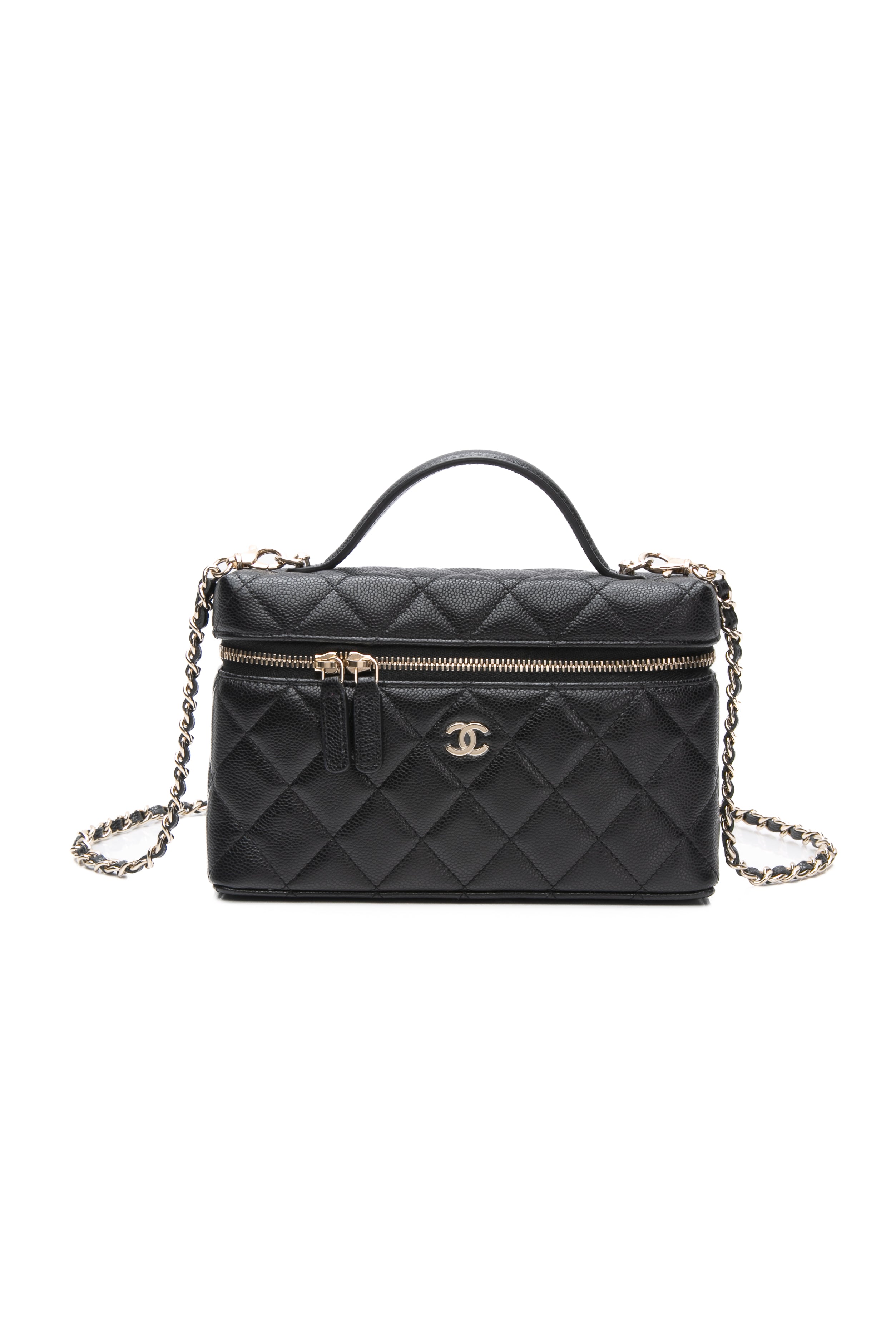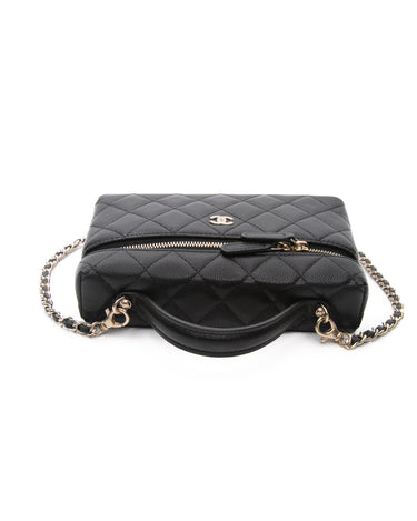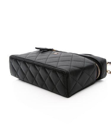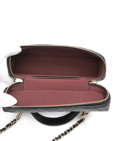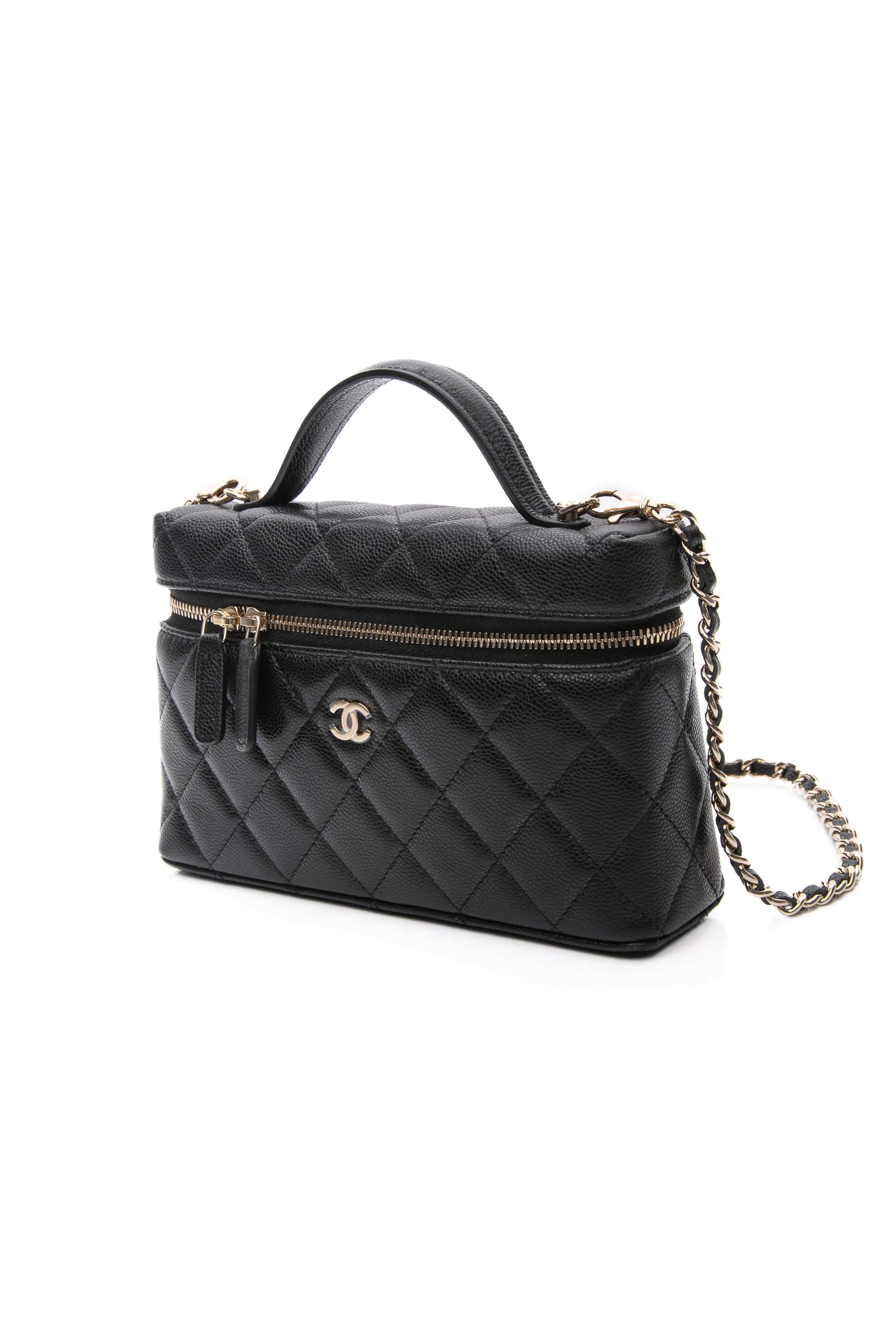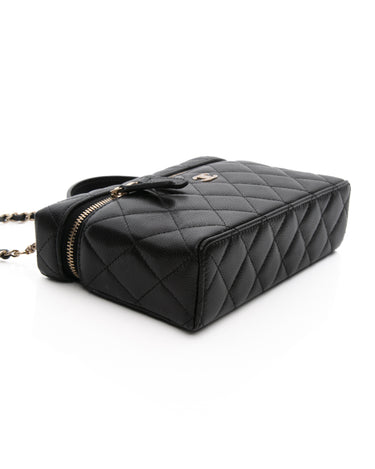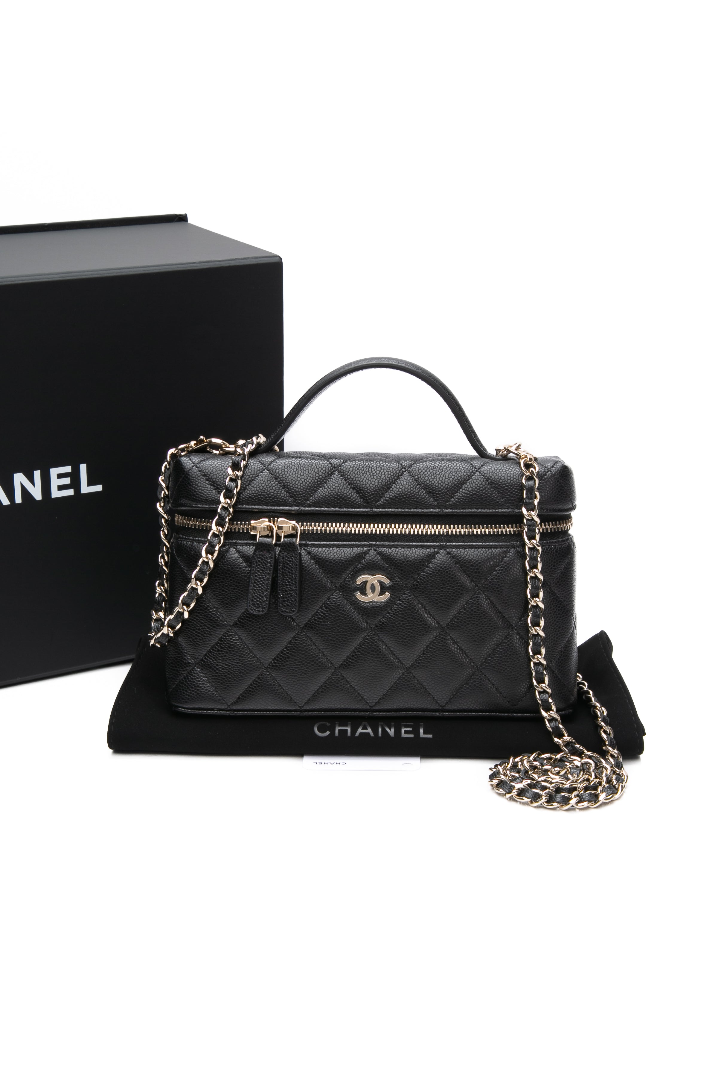 CHANEL 25K Black Caviar Quilted Top Handle Slim Vanity Case with Chain