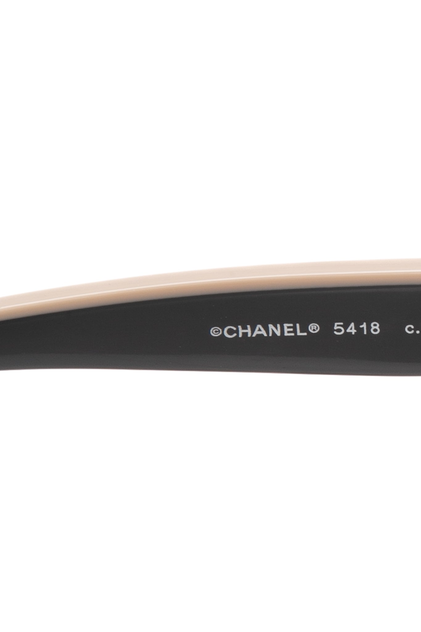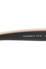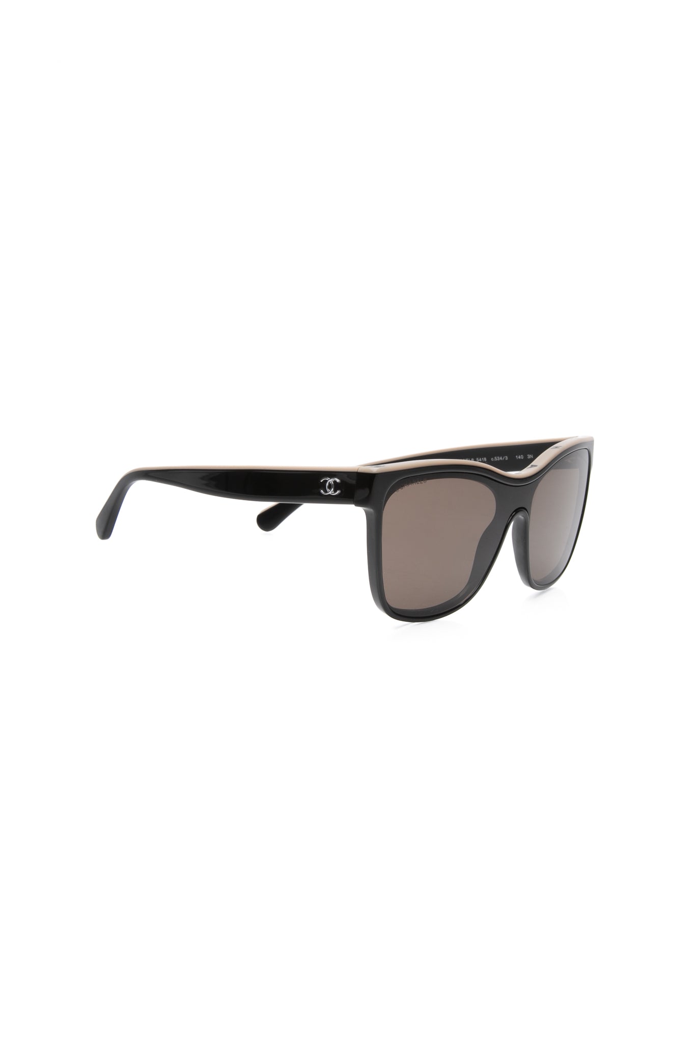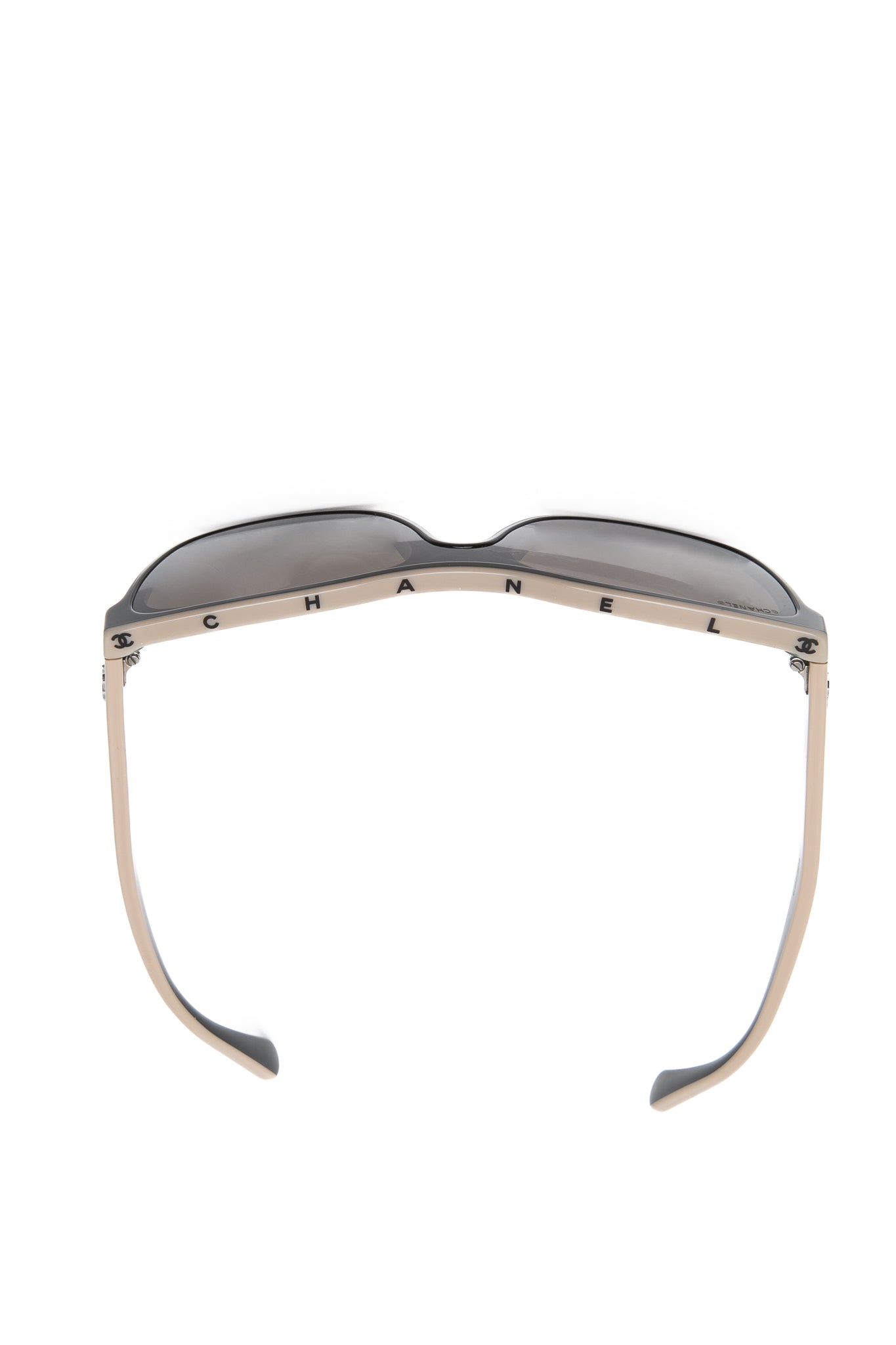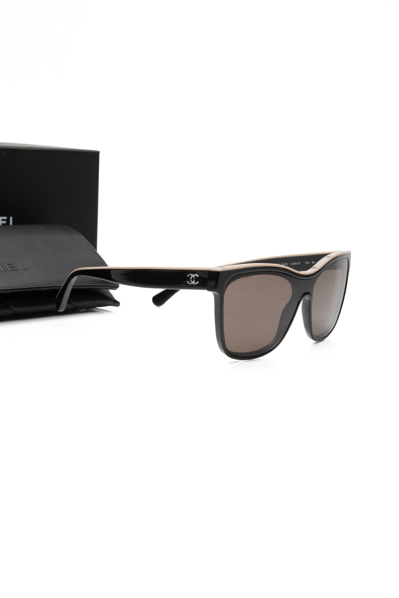 CHANEL Black and Beige Acetate Logo Shield Sunglasses