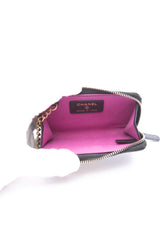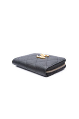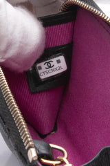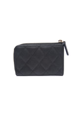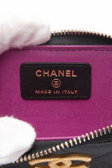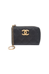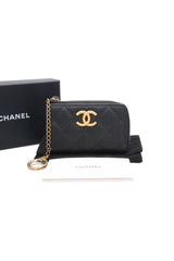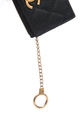 CHANEL Black Caviar Quilted CC Logo Zipped Key Ring Holder Case