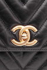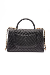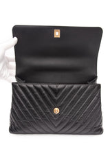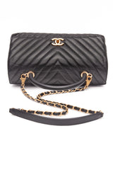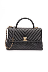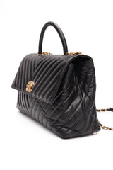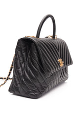 CHANEL Black Chevron Quilted Medium Coco Handle Flap Bag