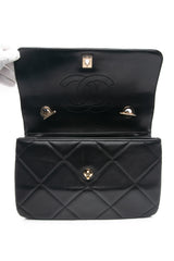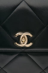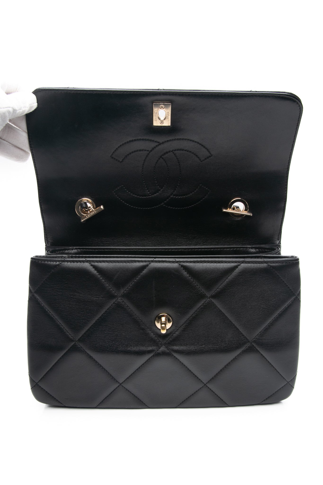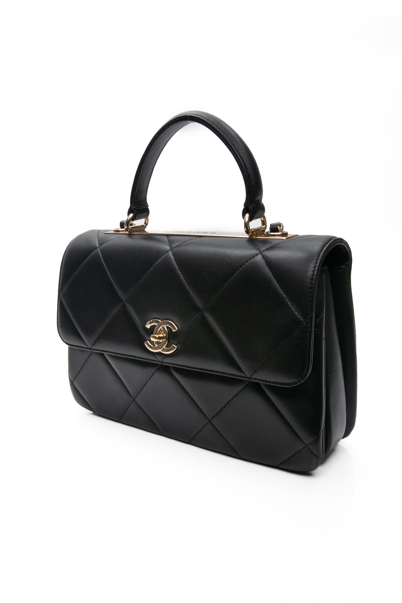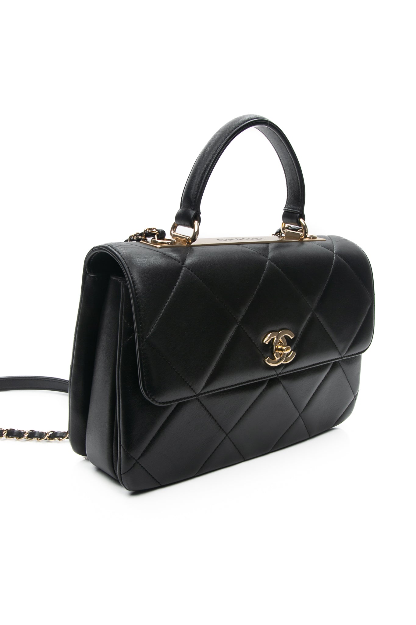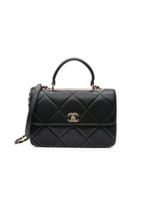 CHANEL Black Lambskin Quilted Trendy CC Medium Top Handle Flap Crossbody Bag