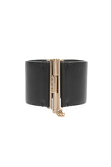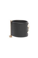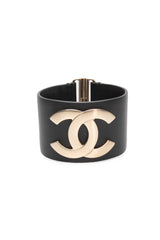 CHANEL Black Calfskin Leather CC Wide Cuff