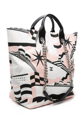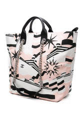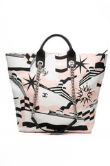 CHANEL Black, Pink, & White Canvas La Pausa Shopping Tote Bag