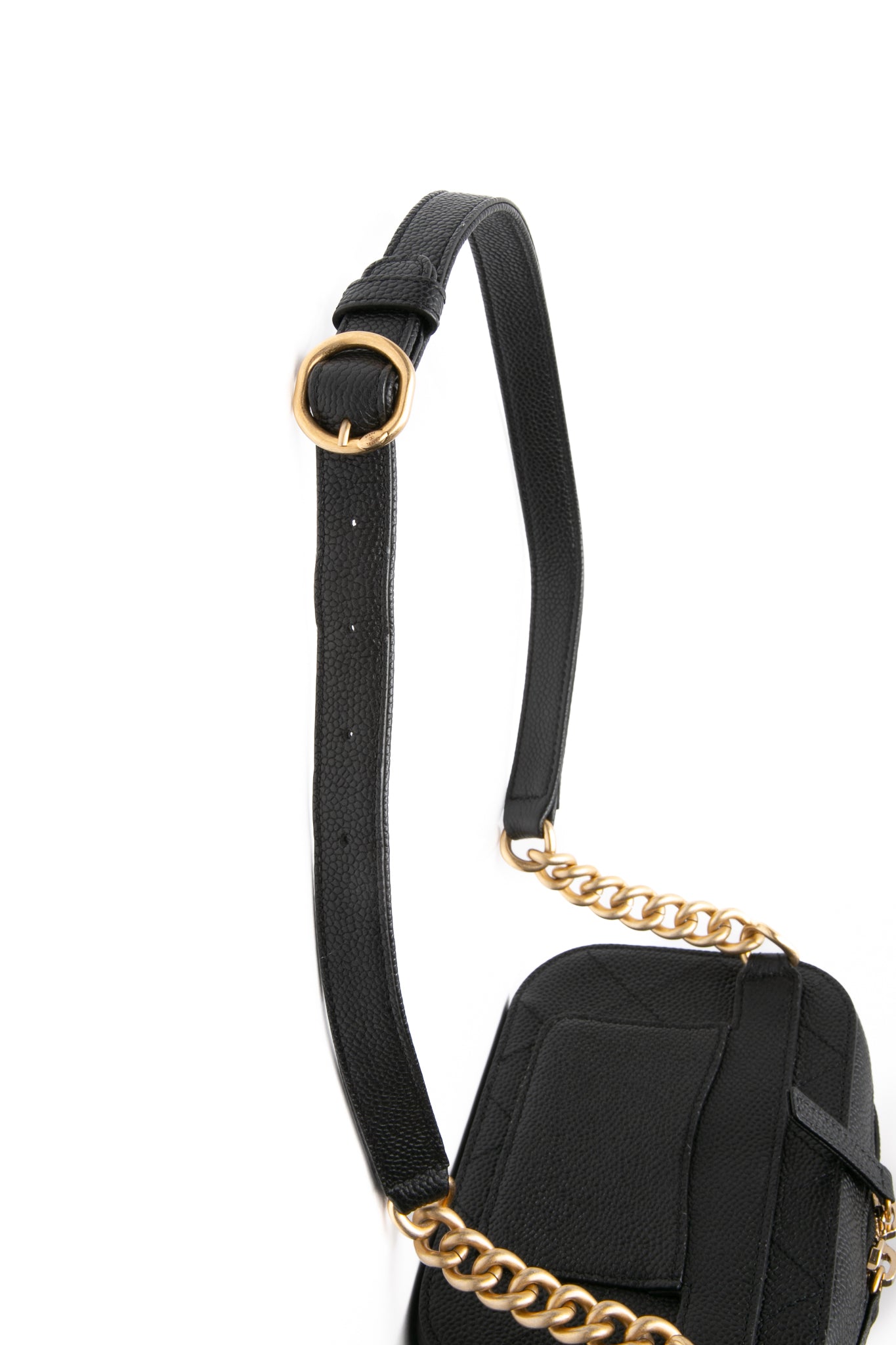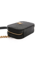 This stylish belt bag brings along the iconic CC logo on the exterior and a leather chain strap. It is crafted from black quilted leather and equipped with a zip closure that reveals a fabric-lined interior.