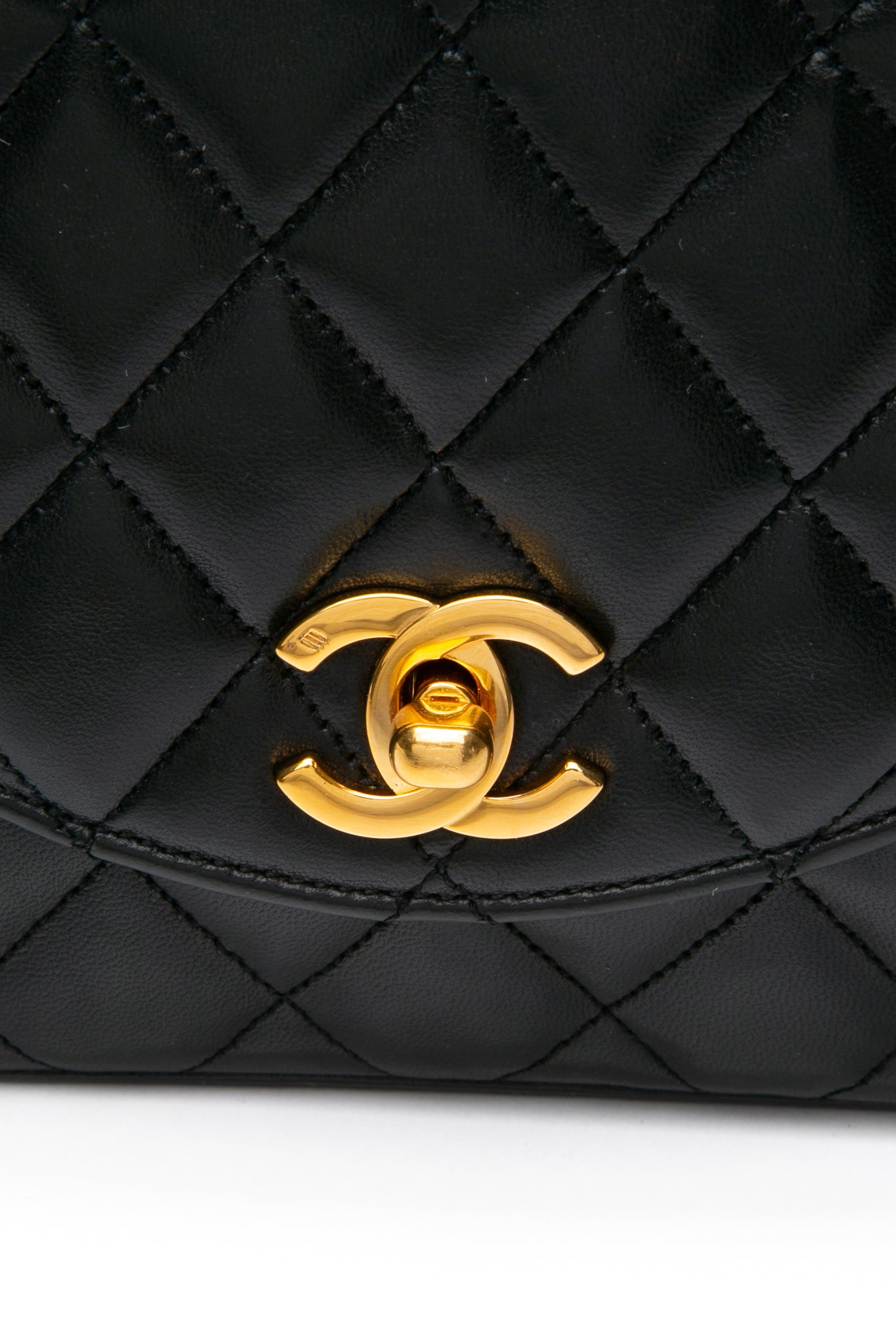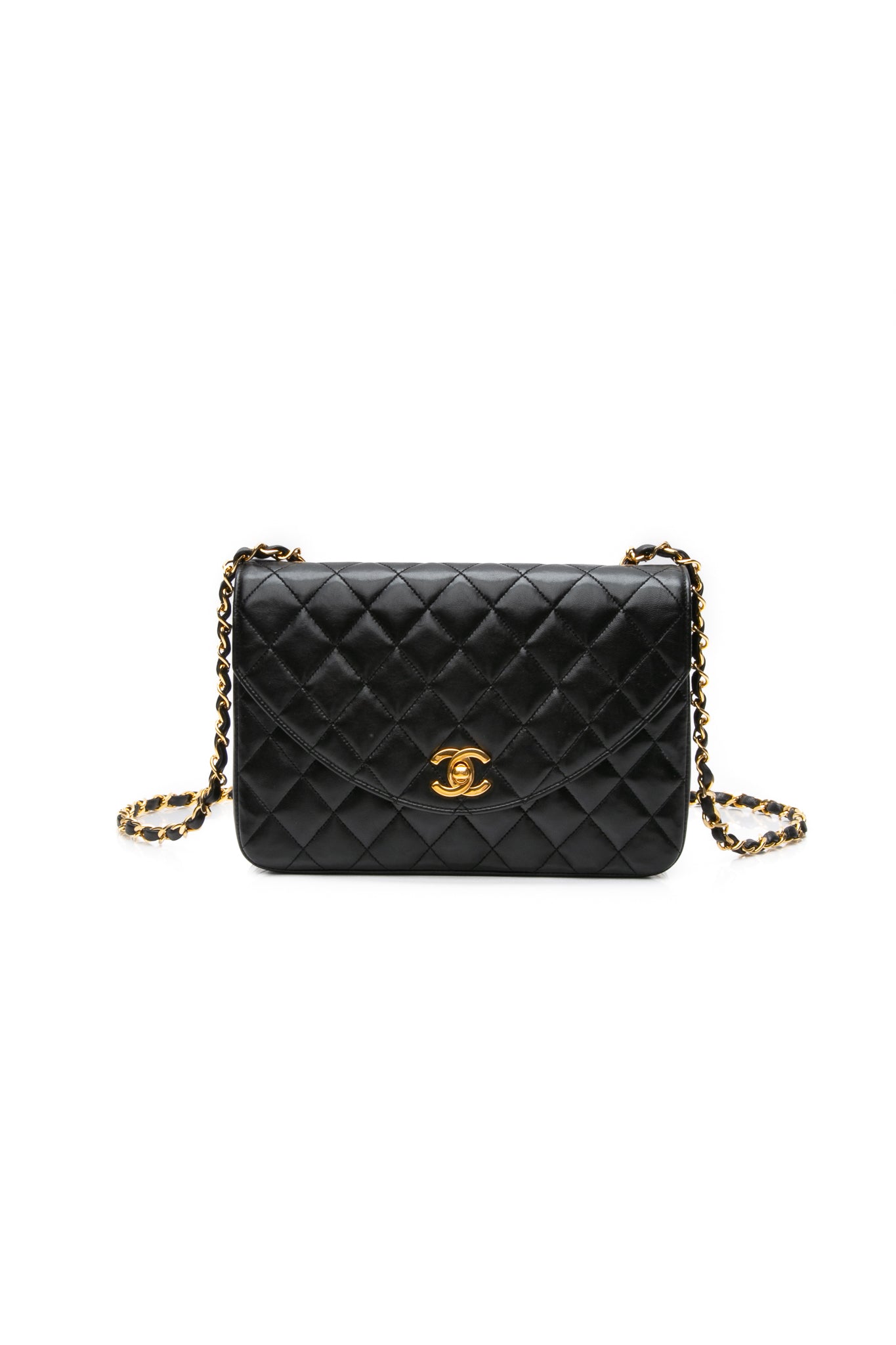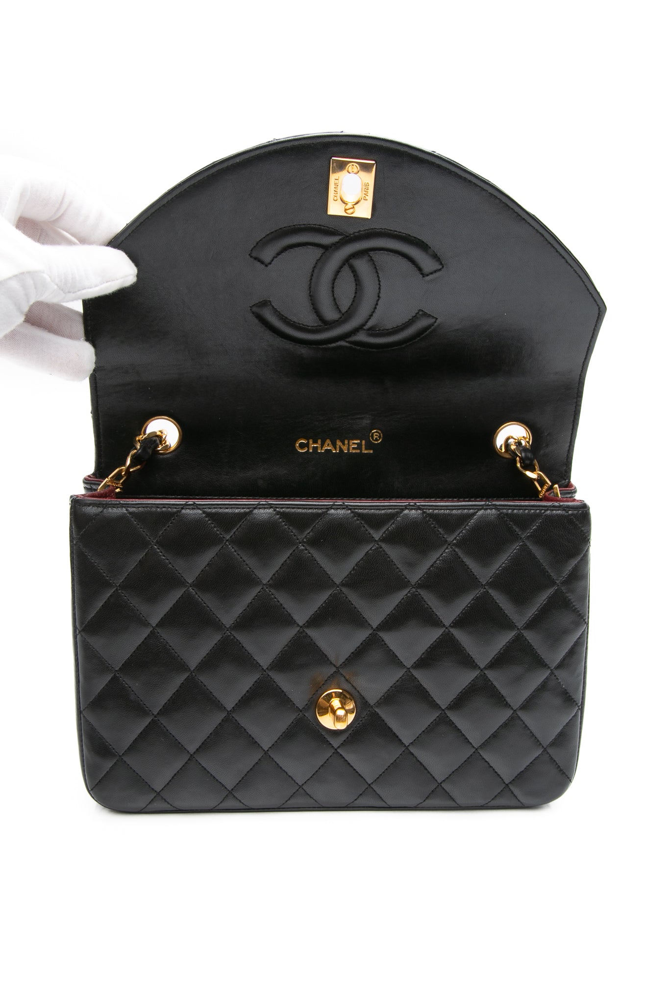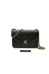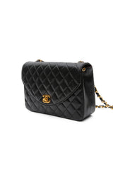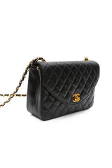 CHANEL Black Vintage Lambskin Quilted Half Moon Single Flap Crossbody Bag