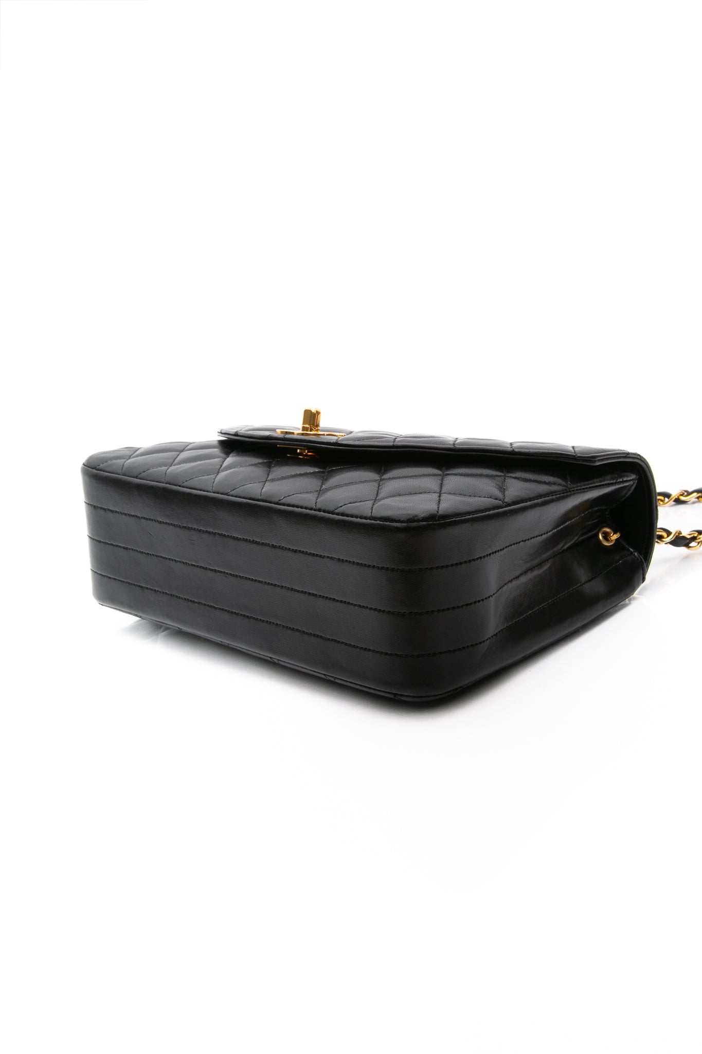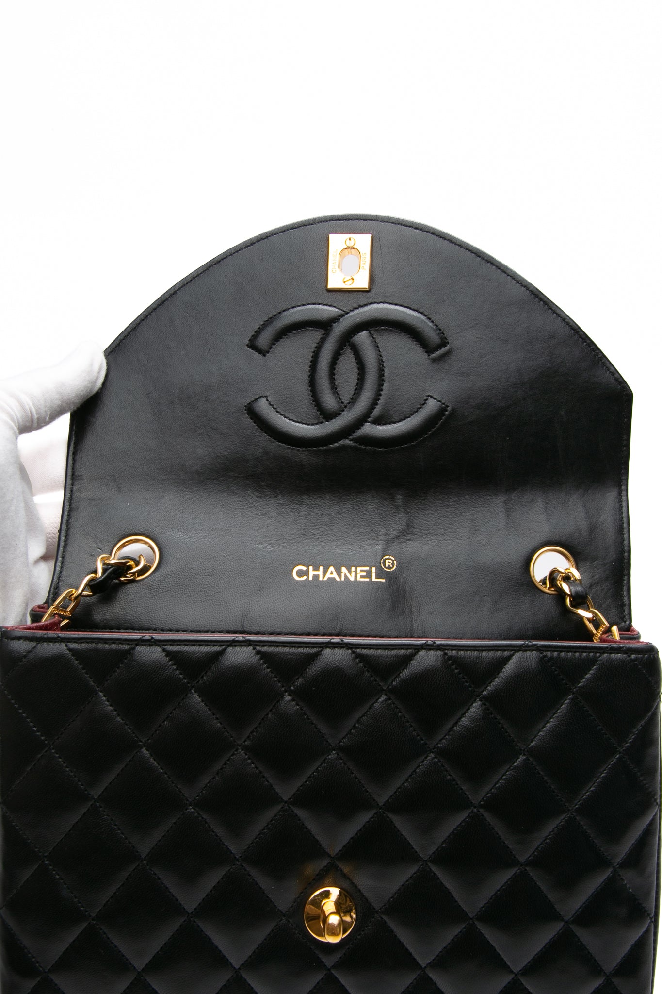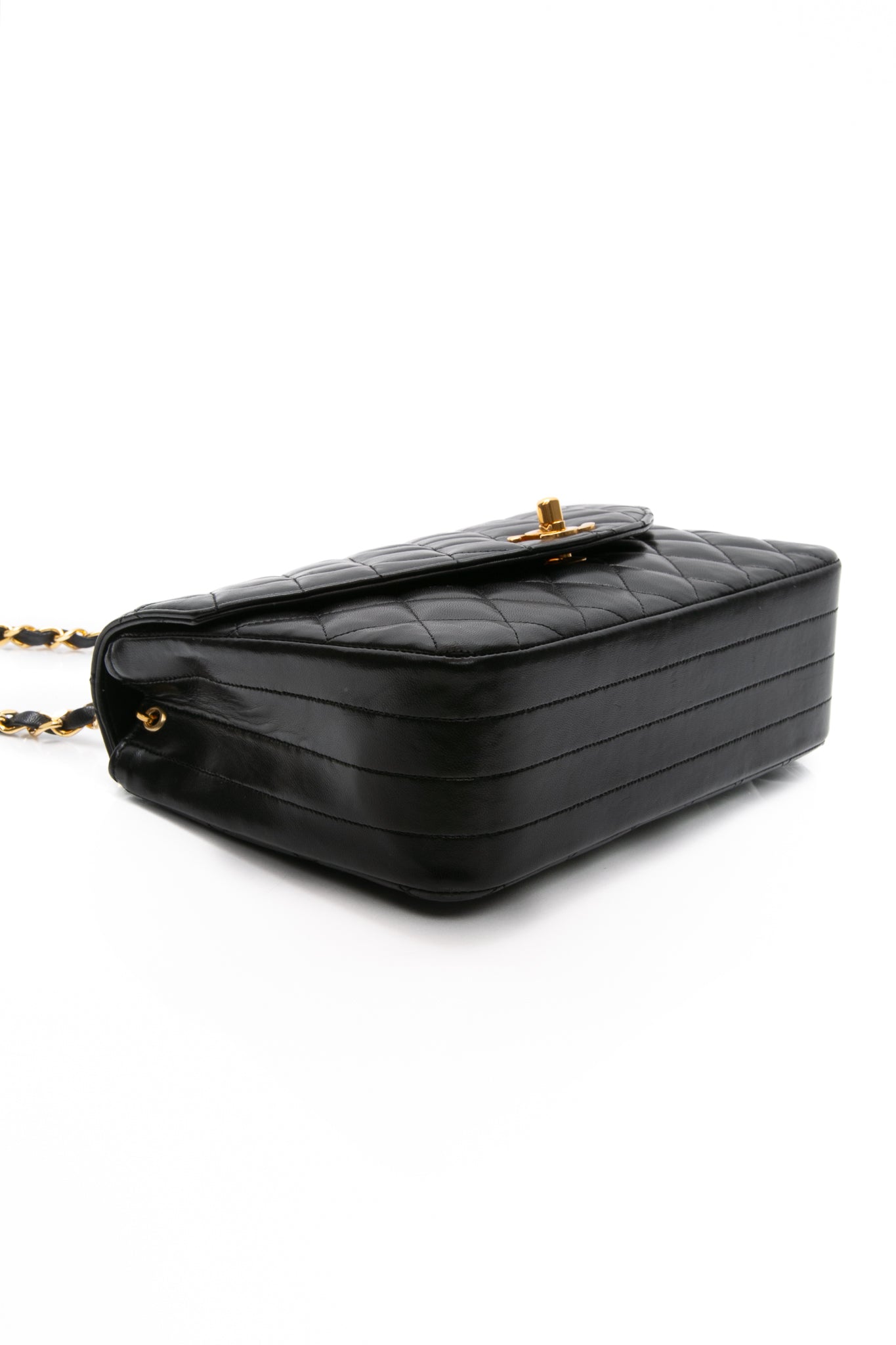 CHANEL Black Vintage Lambskin Quilted Half Moon Single Flap Crossbody Bag
