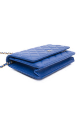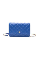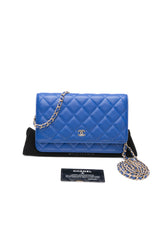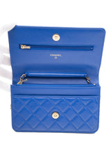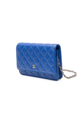 CHANEL Blue Lambskin Quilted Wallet On Chain WOC