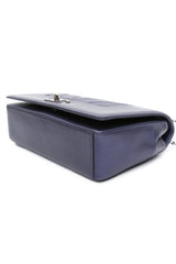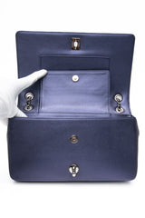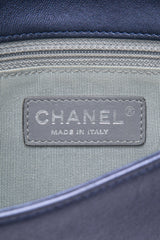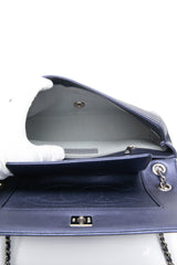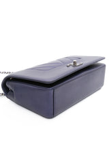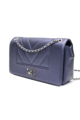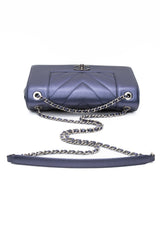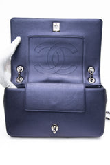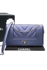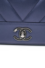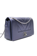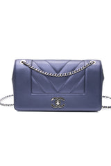 CHANEL Blue Metallic Sheepskin Chevron Quilted Medium Mademoiselle Flap Bag