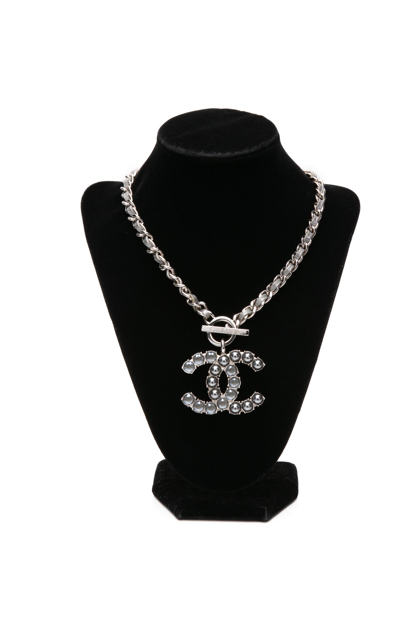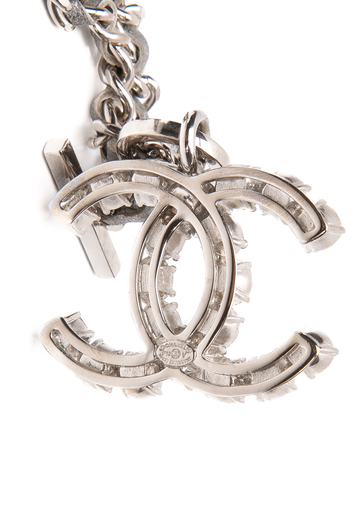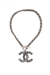 CHANEL CC Logo Crystal Silver Toned Filled Pendant Choker Necklace