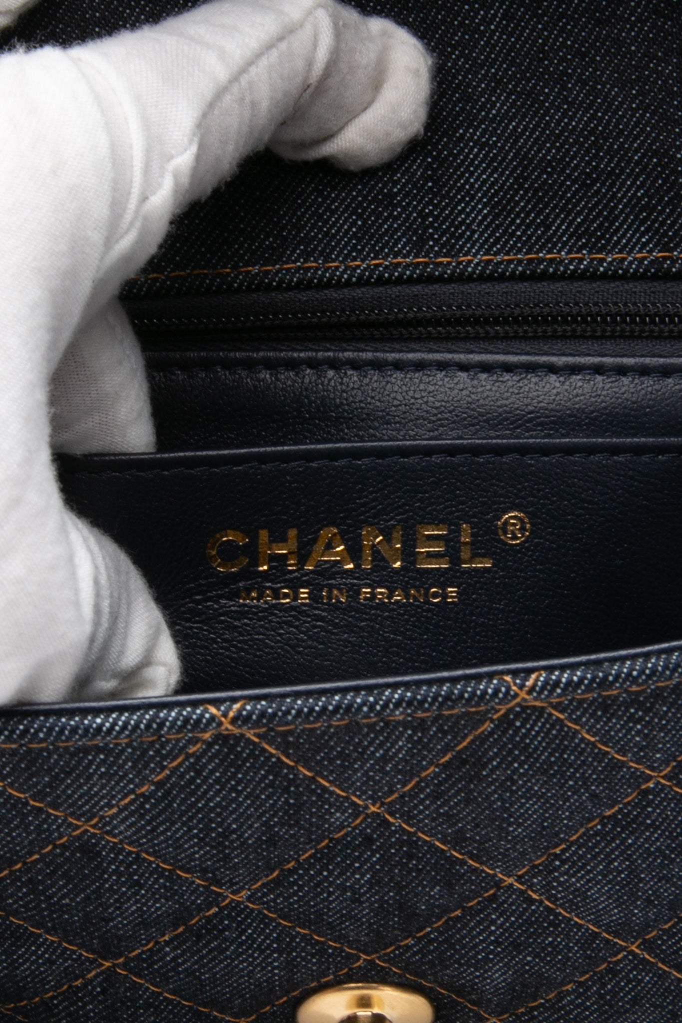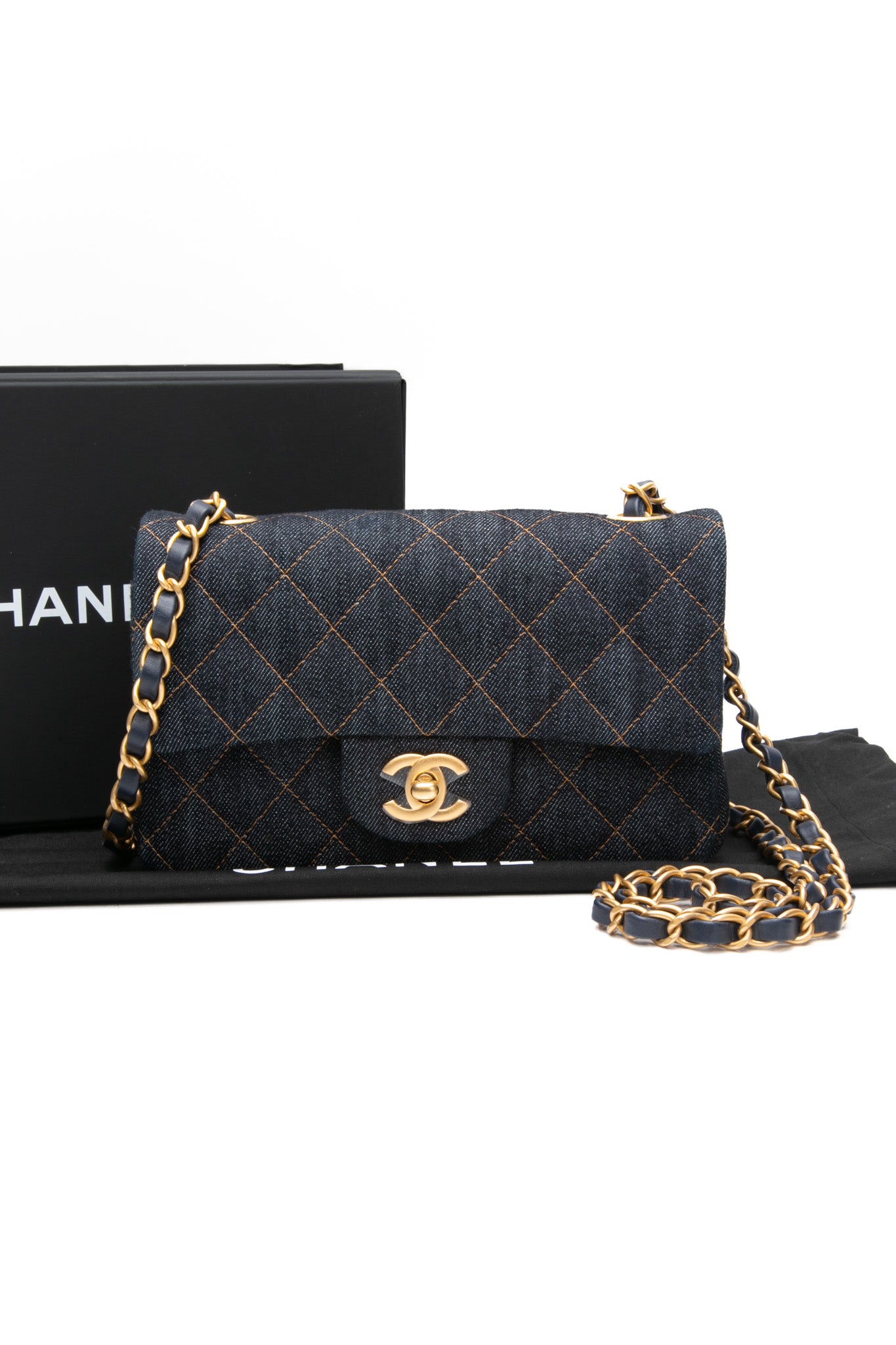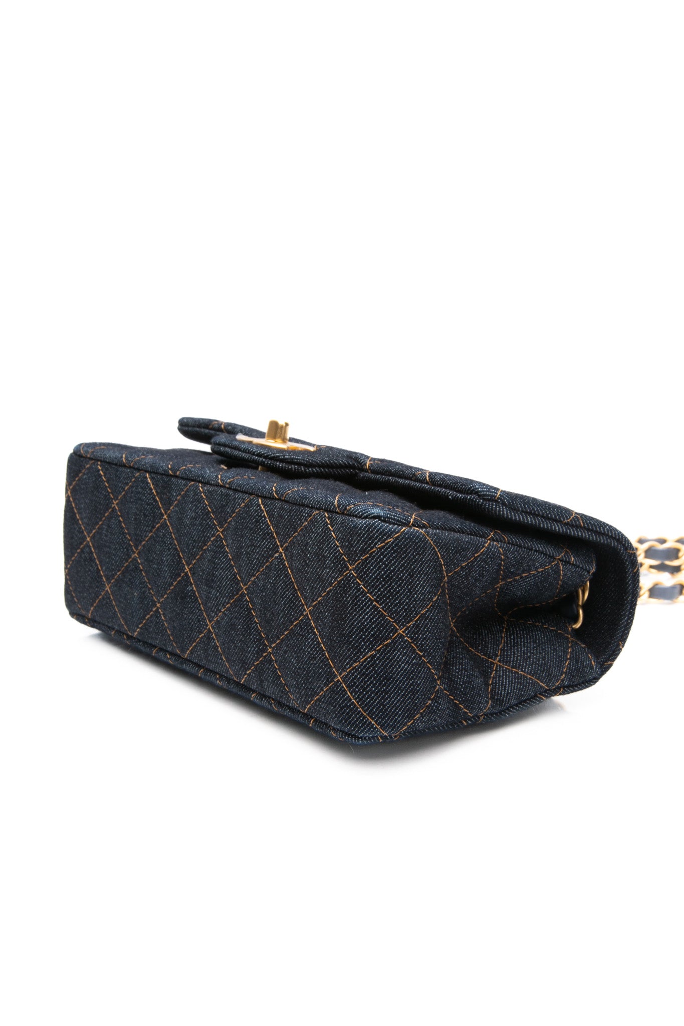 CHANEL Dark Blue Denim Quilted Mini Rectangular Flap Bag