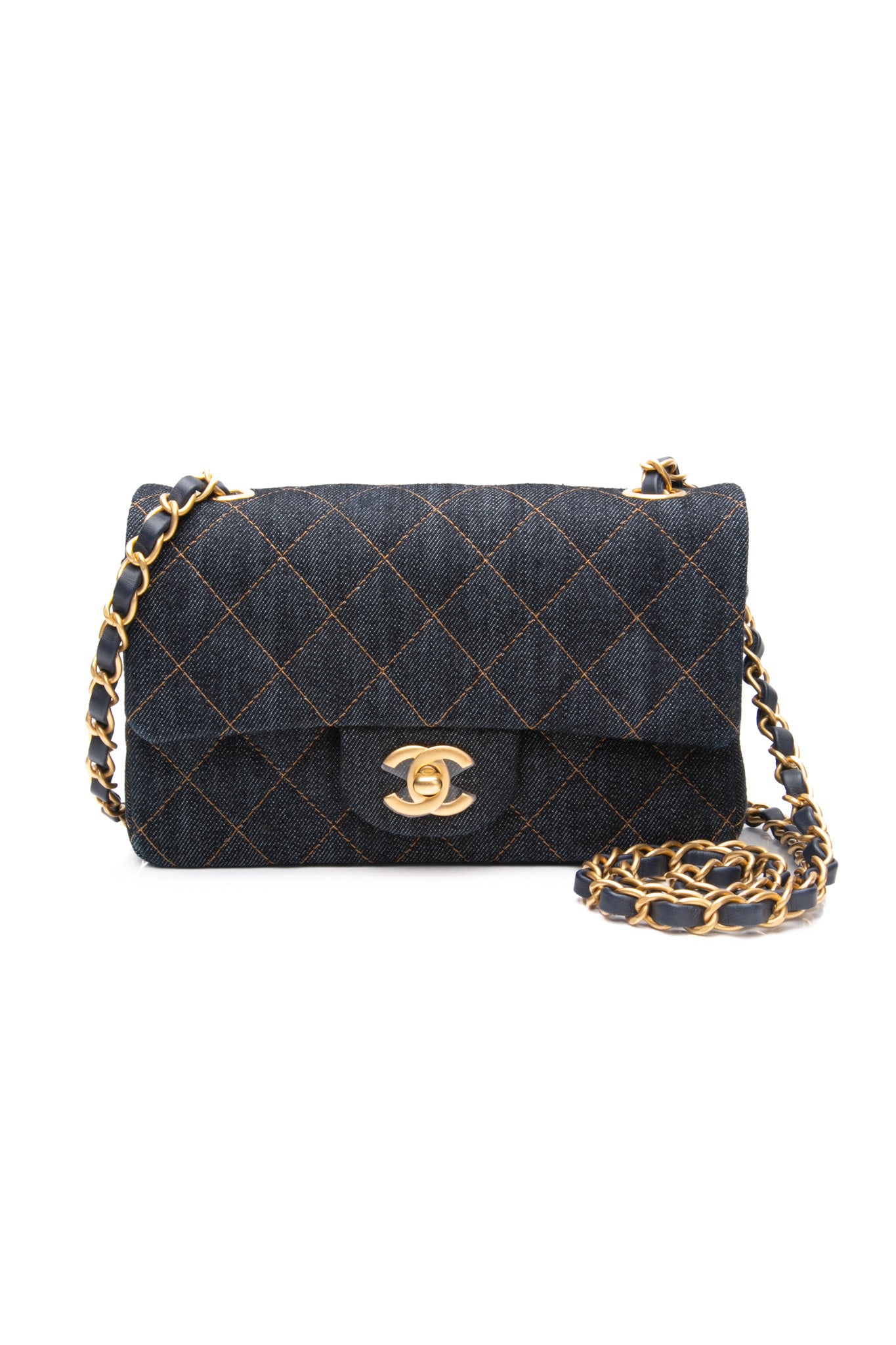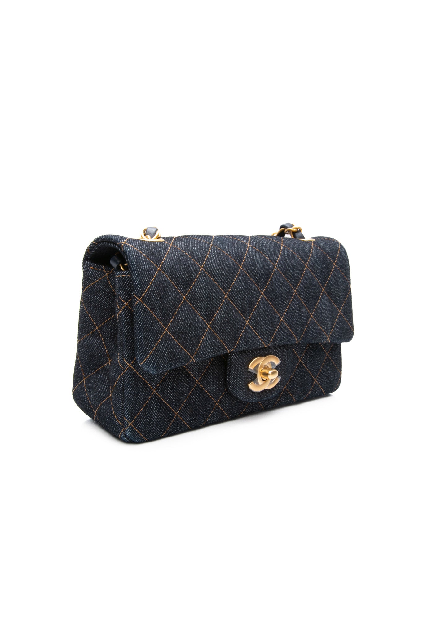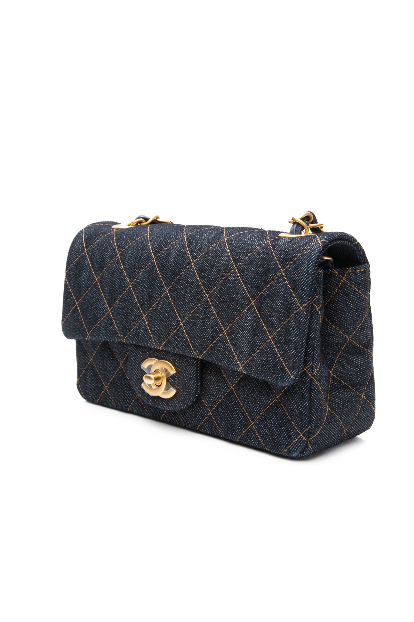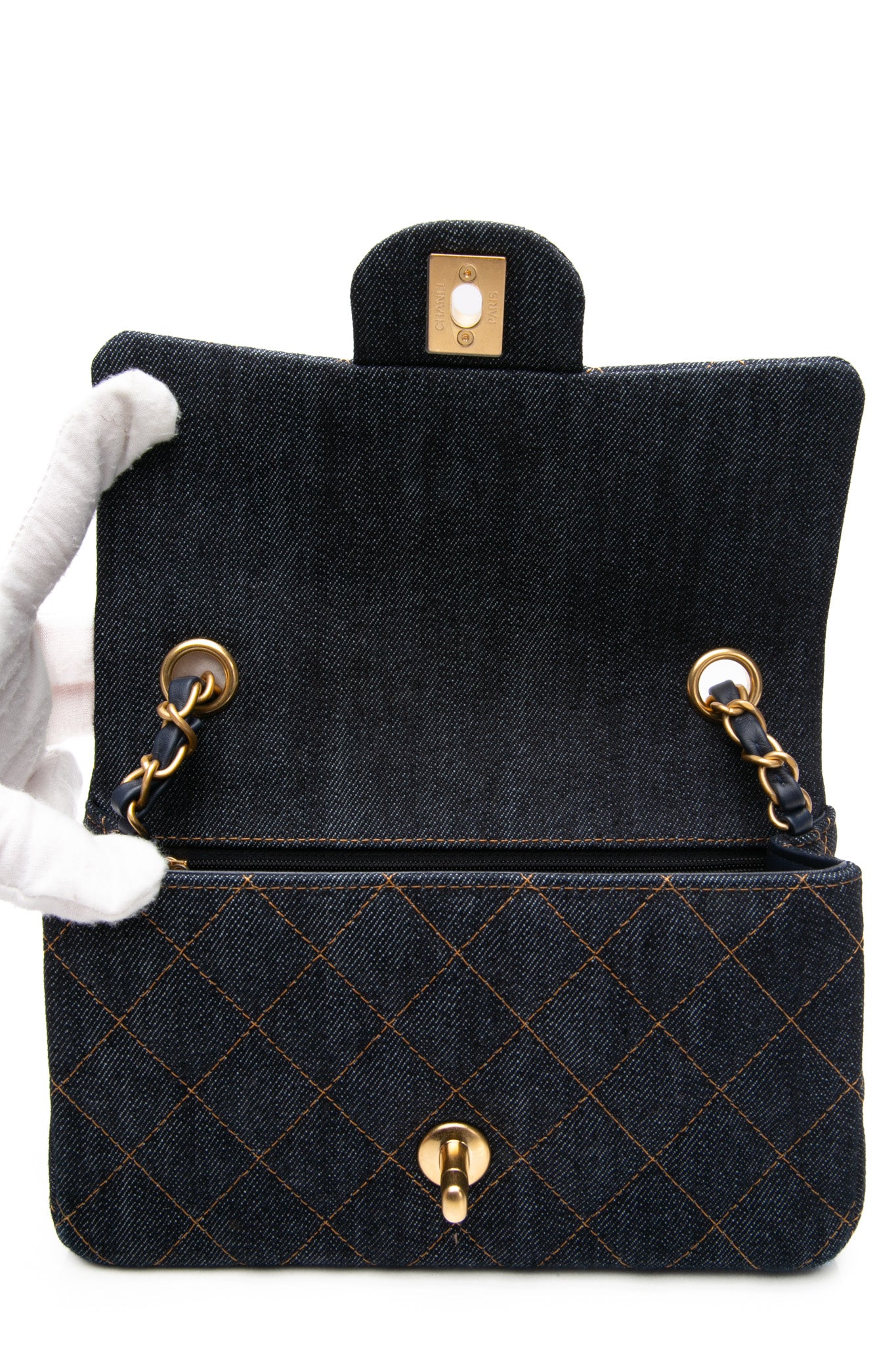 CHANEL Dark Blue Denim Quilted Mini Rectangular Flap Bag