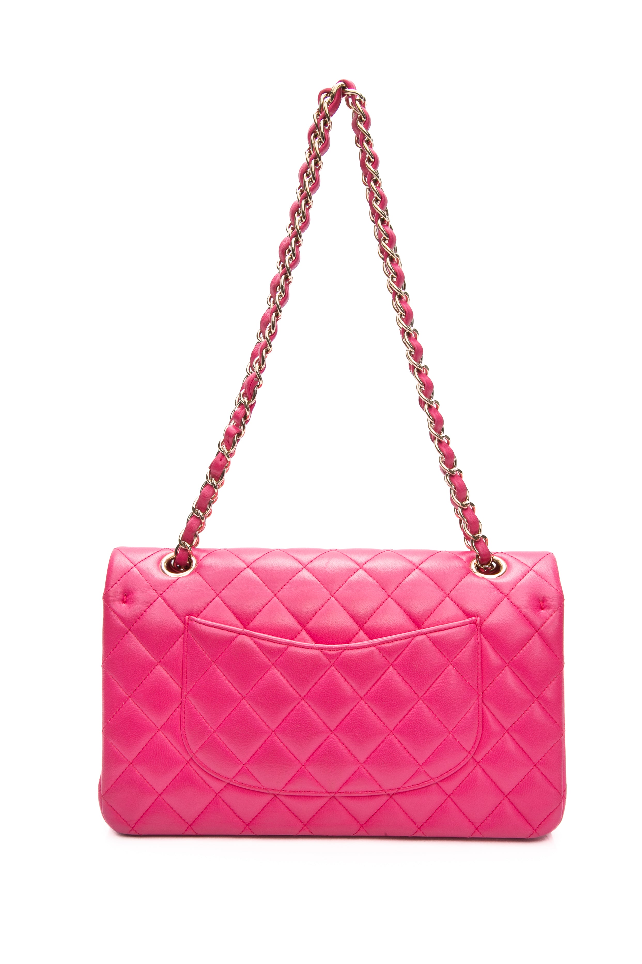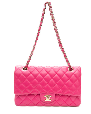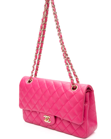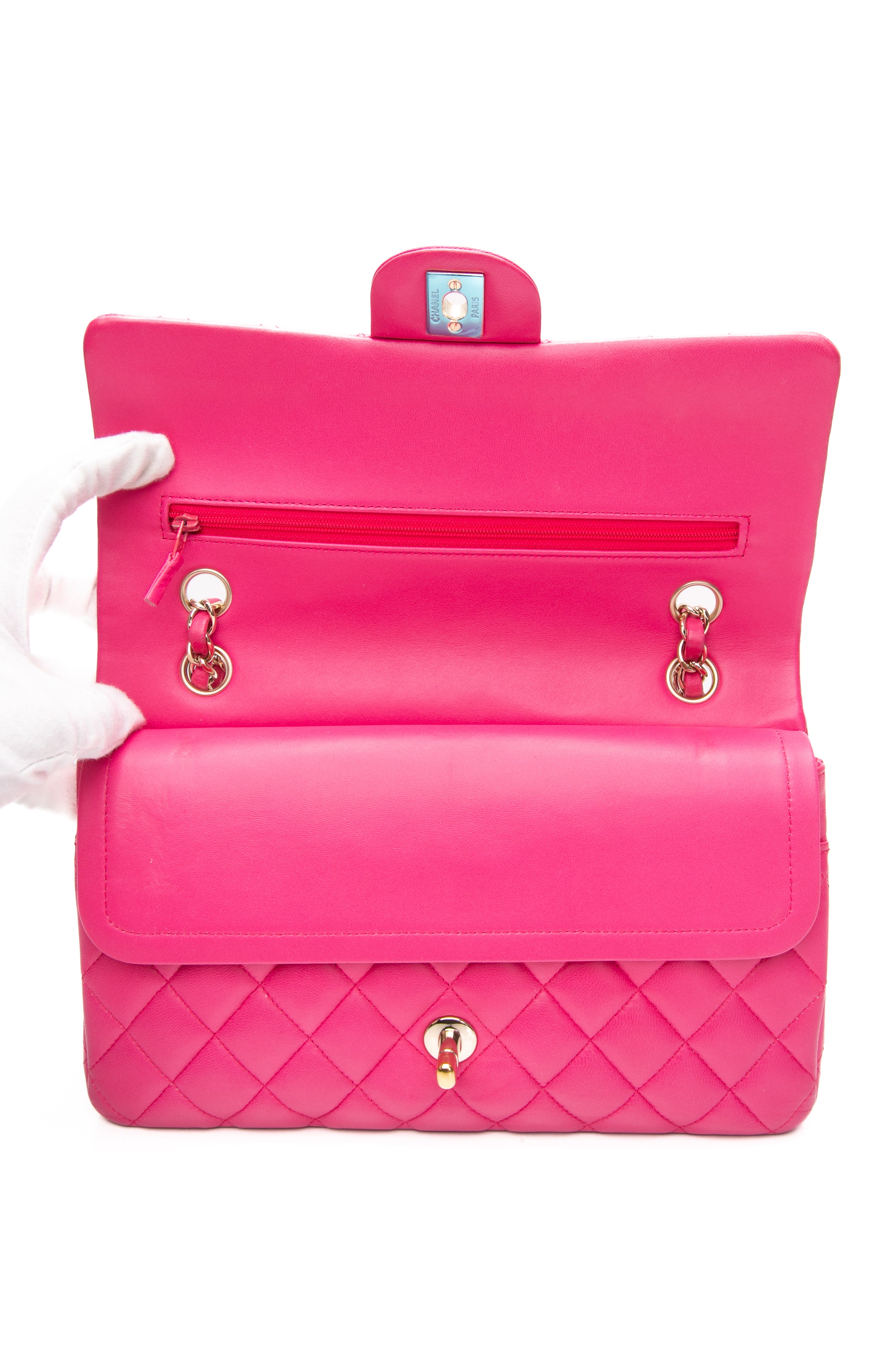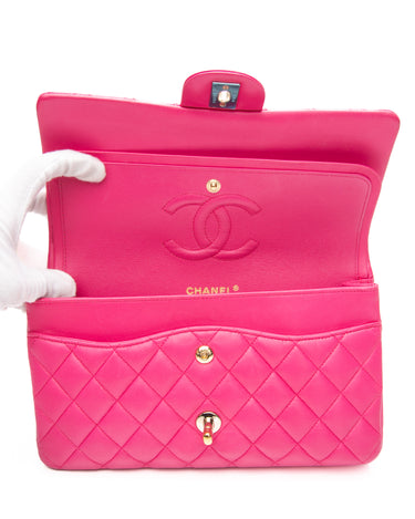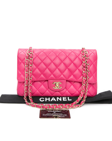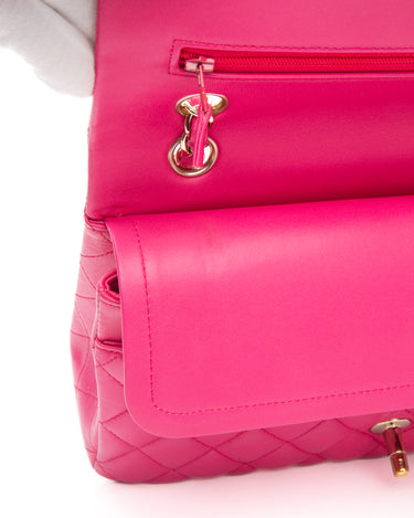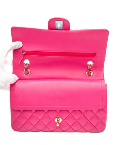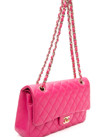 CHANEL Hot Pink Quilted Lambskin Medium Classic Double Flap Bag