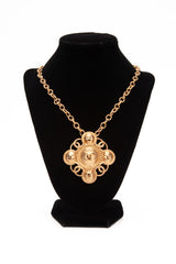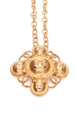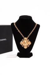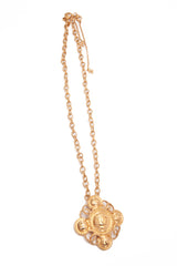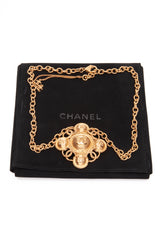 This stunning textured chain necklace is featured in brilliant gold and features a large gold pendant with Chanel CC logos and a clasp closure.