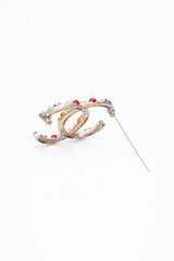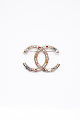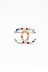 CHANEL Multicolor Gold Pearl crystal CC Brooch