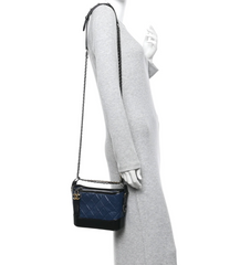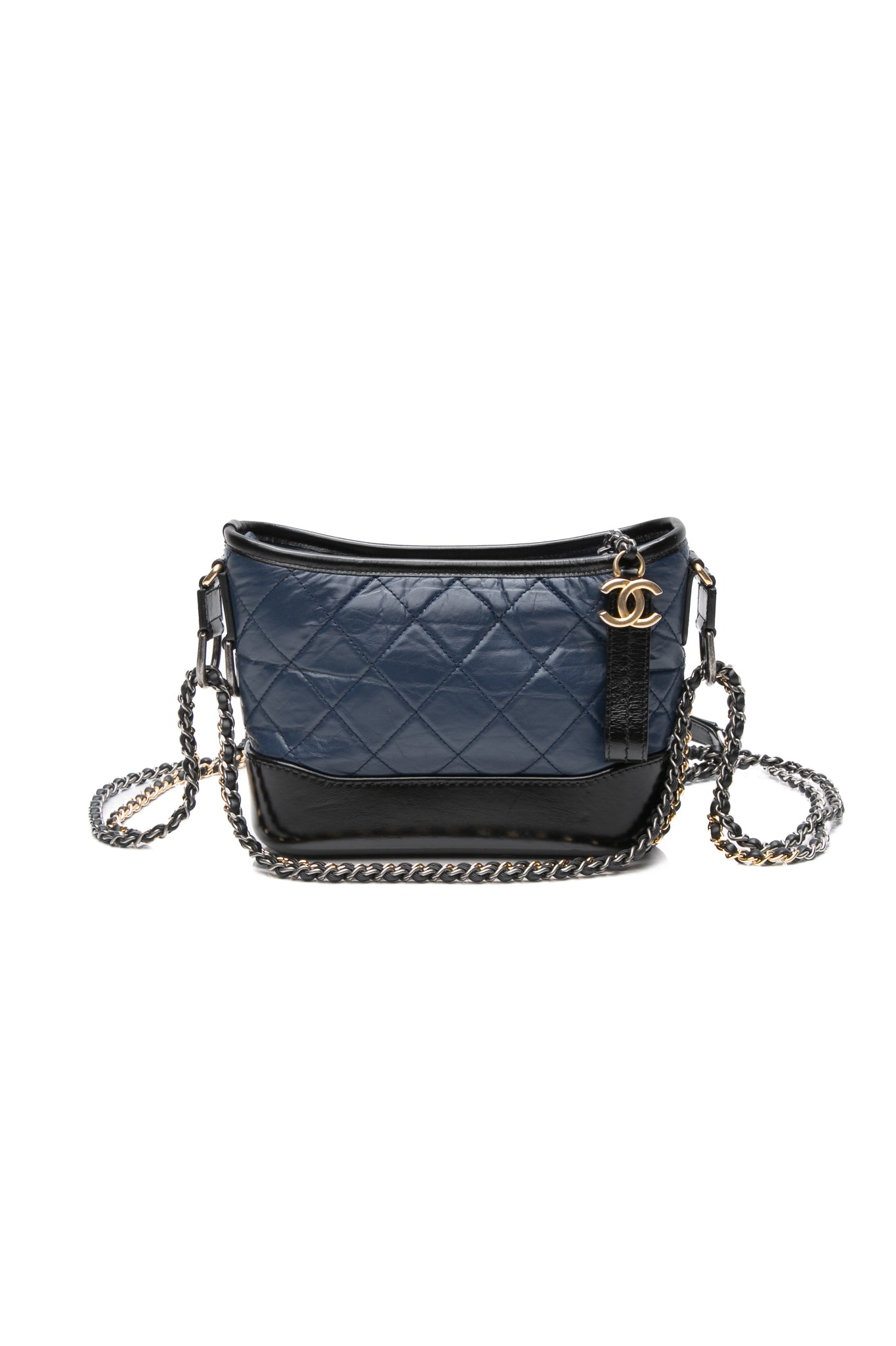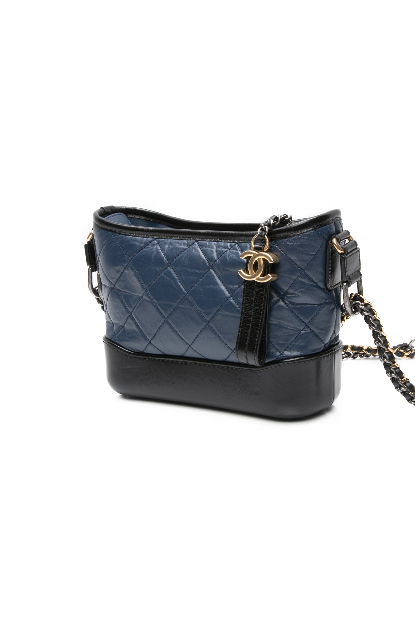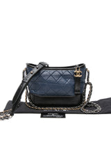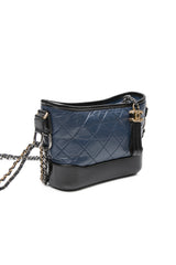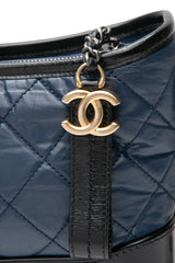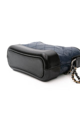 CHANEL Navy Black Aged Calfskin Quilted Small Gabrielle Hobo Bag
