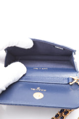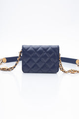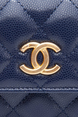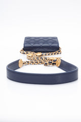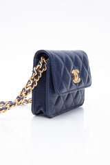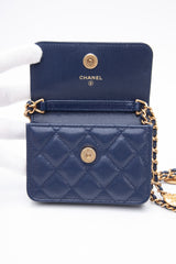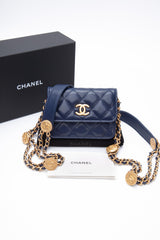 CHANEL Navy Quilted Caviar Twist Your Buttons Coin Purse with Chain Crossbody Bag