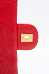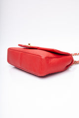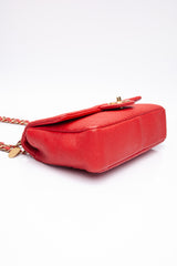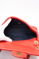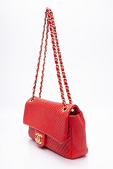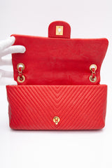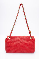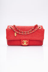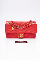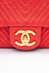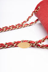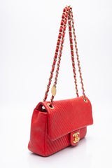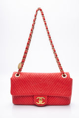 CHANEL Red Medallion Charm Chevron Wrinkled Calfskin Medium Flap Bag