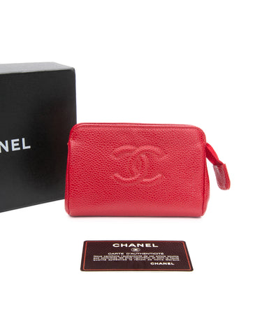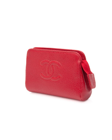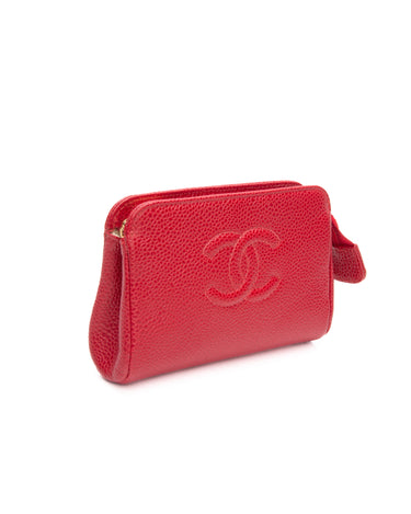 CHANEL Vintage Red Caviar Leather Timeless CC Small Pouch