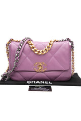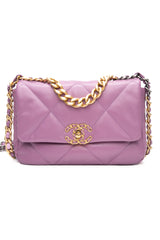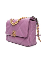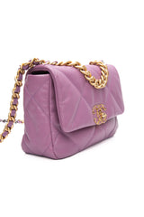 CHANEL Violet Purple Goatskin Quilted Chanel 19 Flap Bag