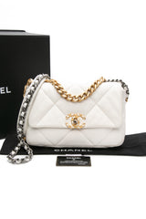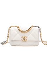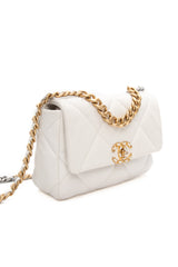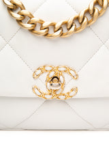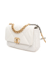 CHANEL White Goatskin Quilted Chanel 19 Flap Bag
