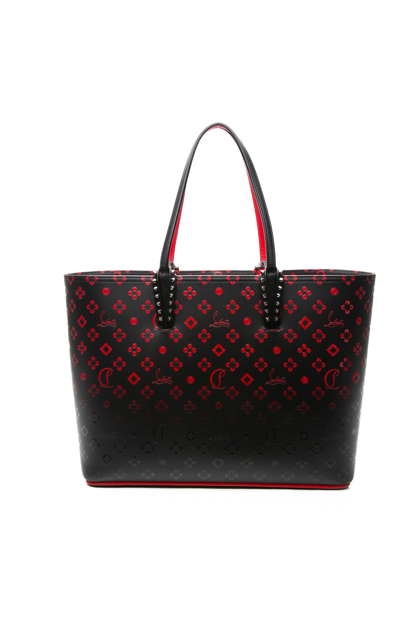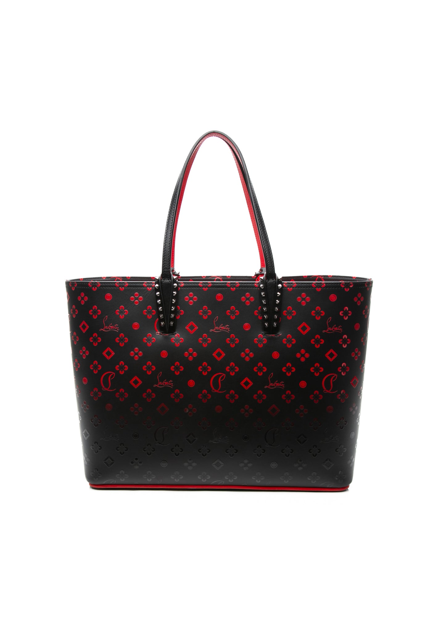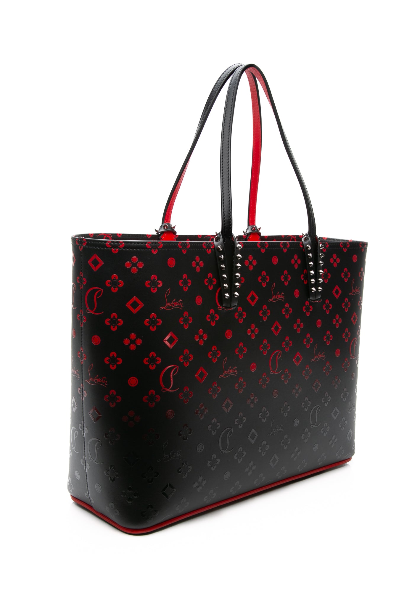 CHRISTIAN LOUBOUTIN Black and Red Perforated Calfskin Degrade Loubinthesky East West Cabata Tote Bag