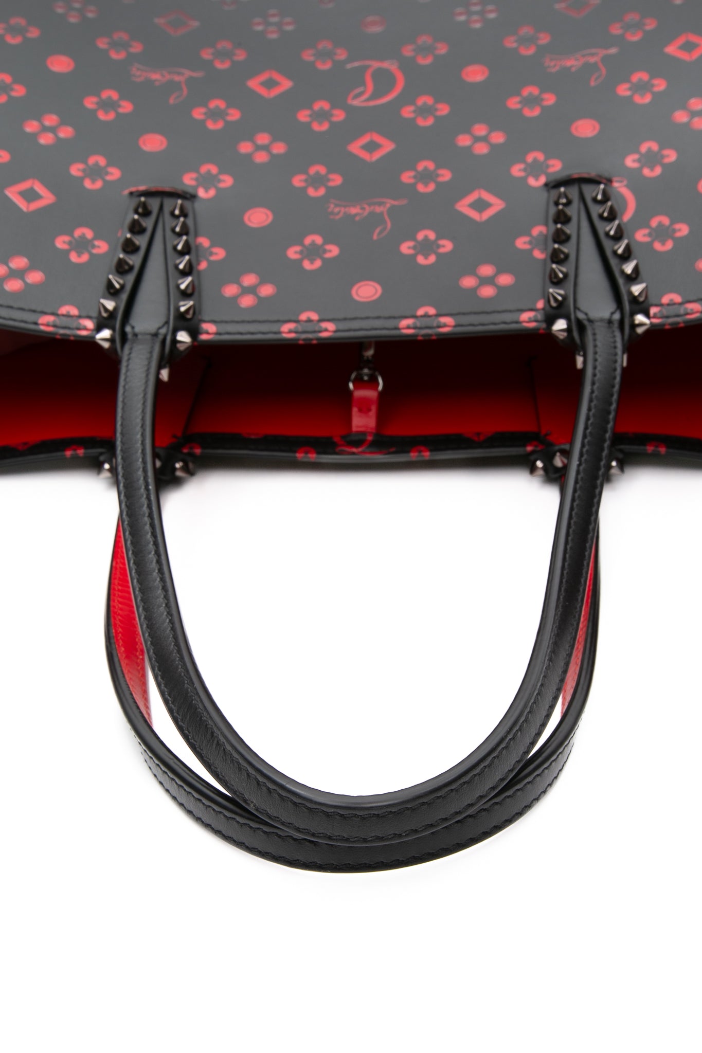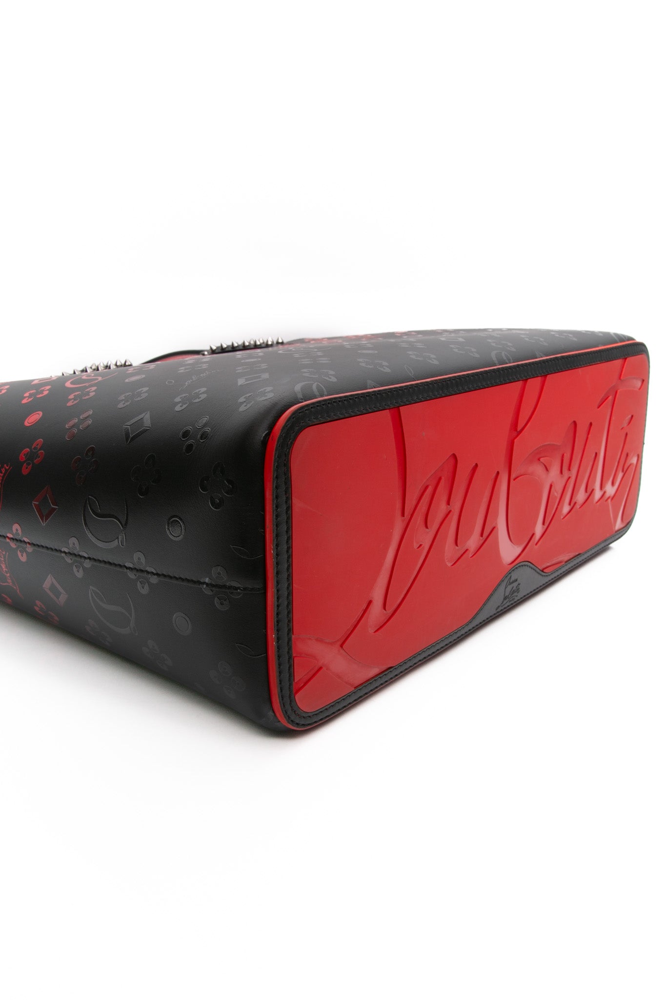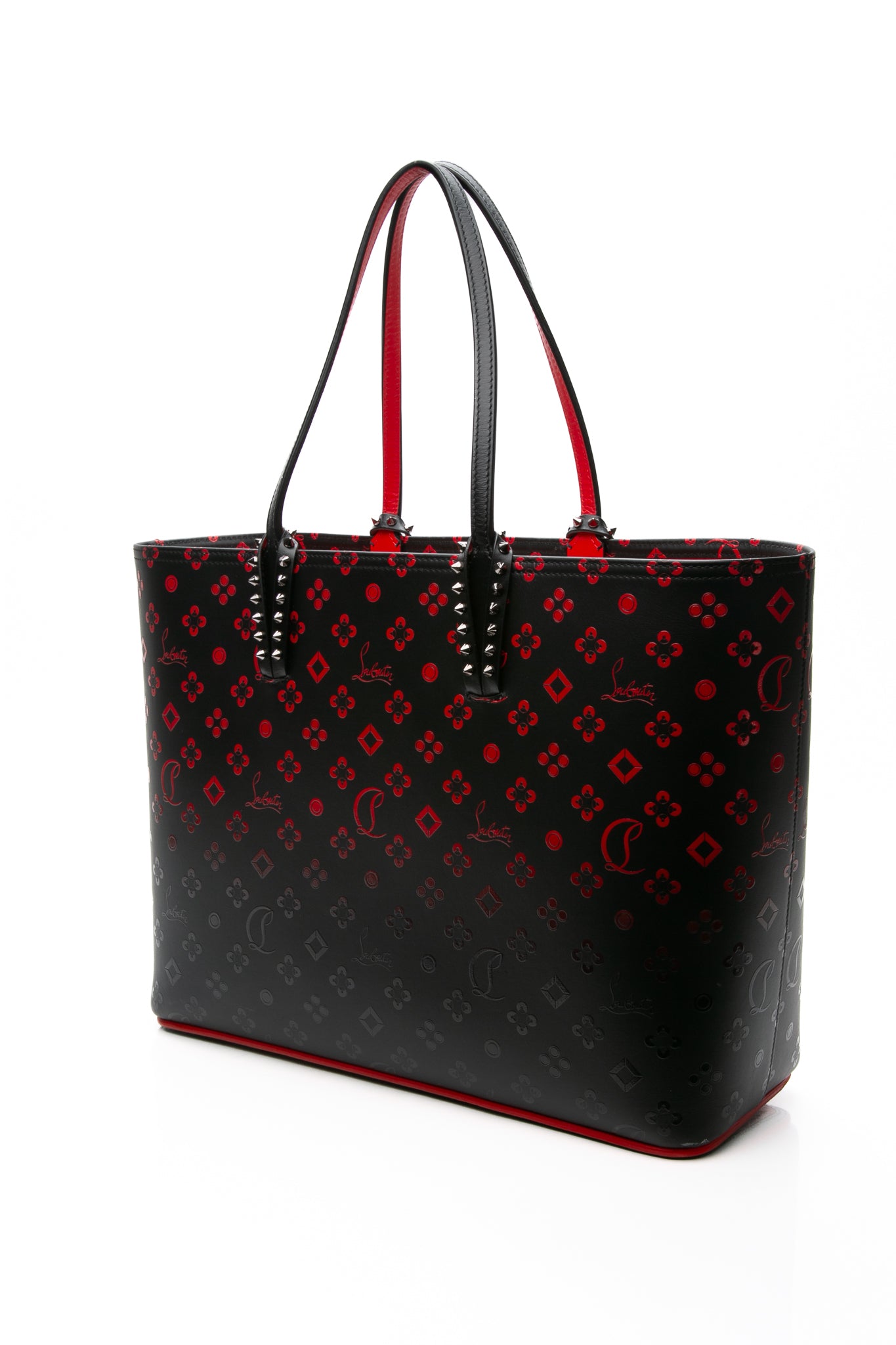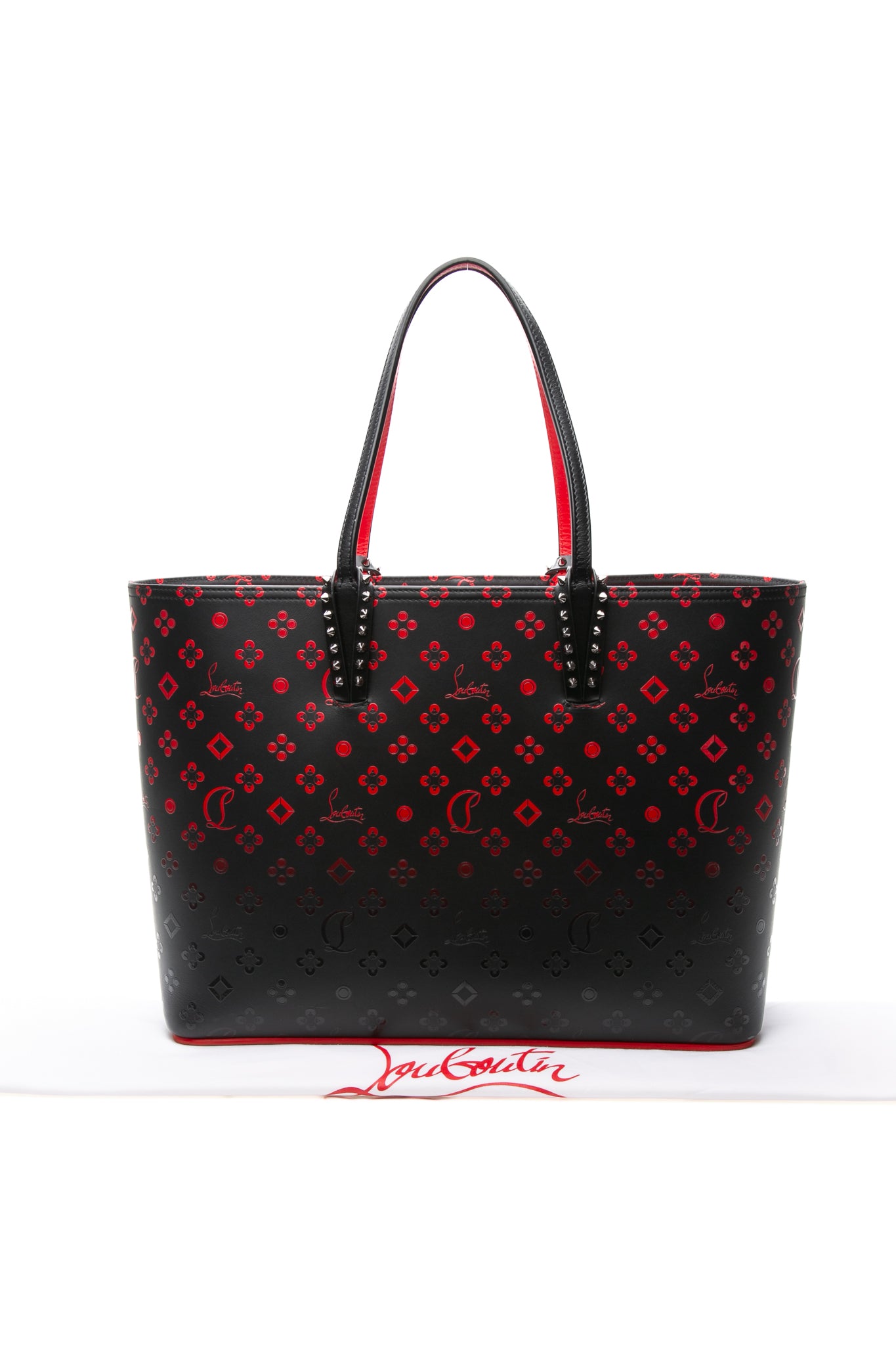 CHRISTIAN LOUBOUTIN Black and Red Perforated Calfskin Degrade Loubinthesky East West Cabata Tote Bag