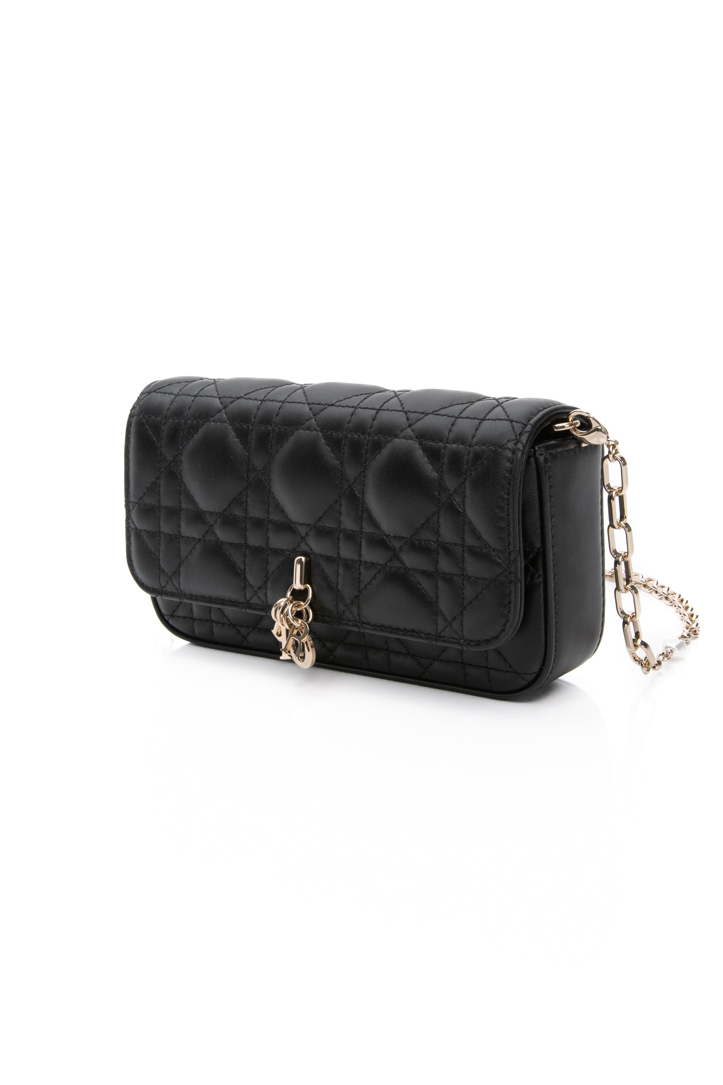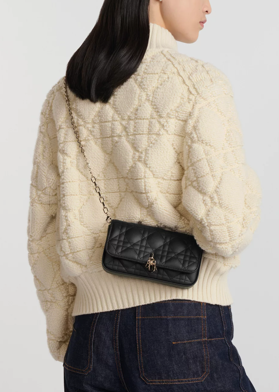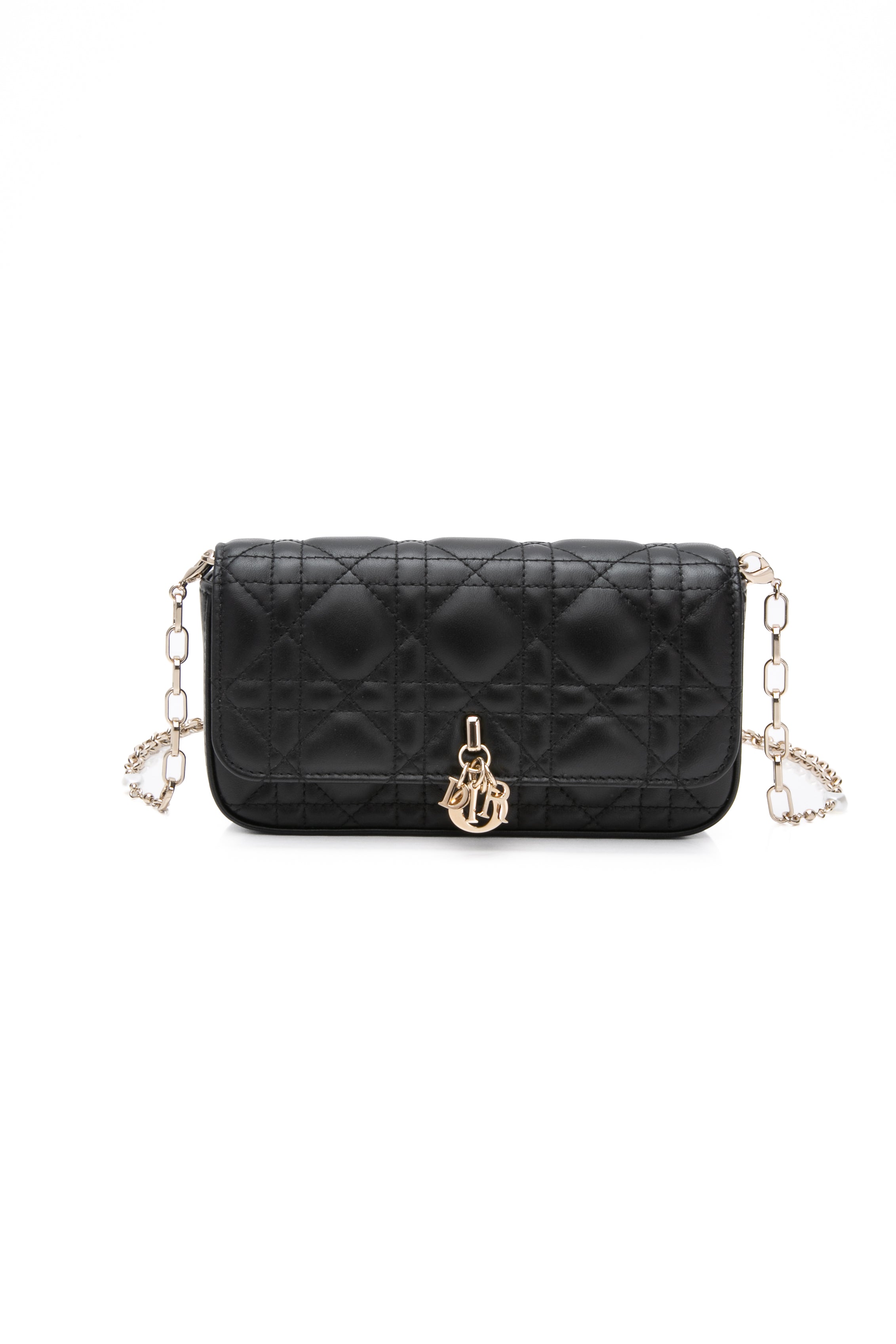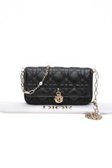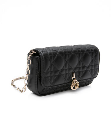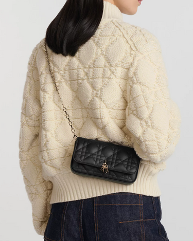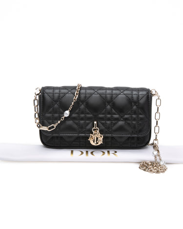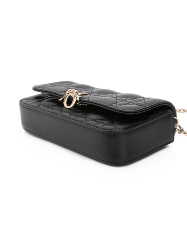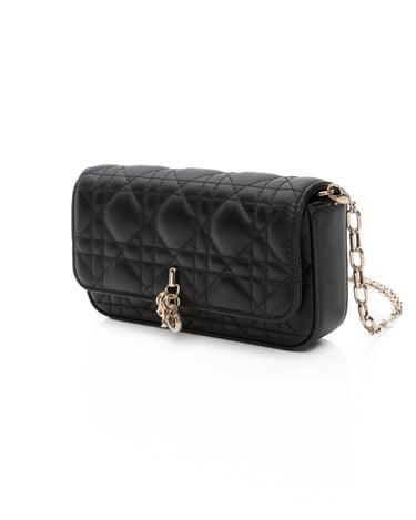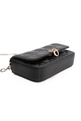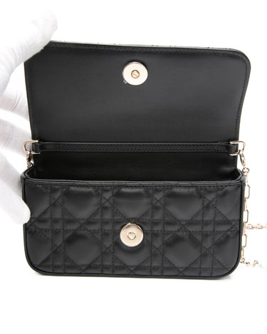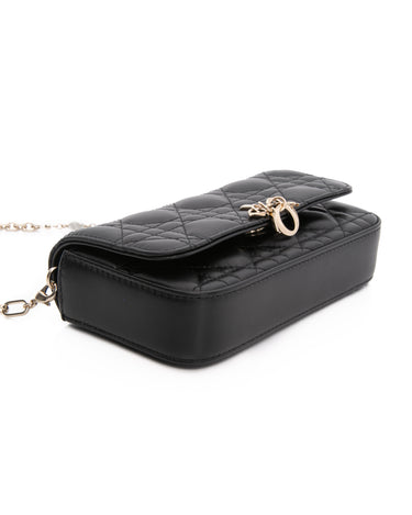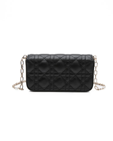 DIOR Black Lambskin Cannage Dior Talk Phone Pouch on Chain (New)