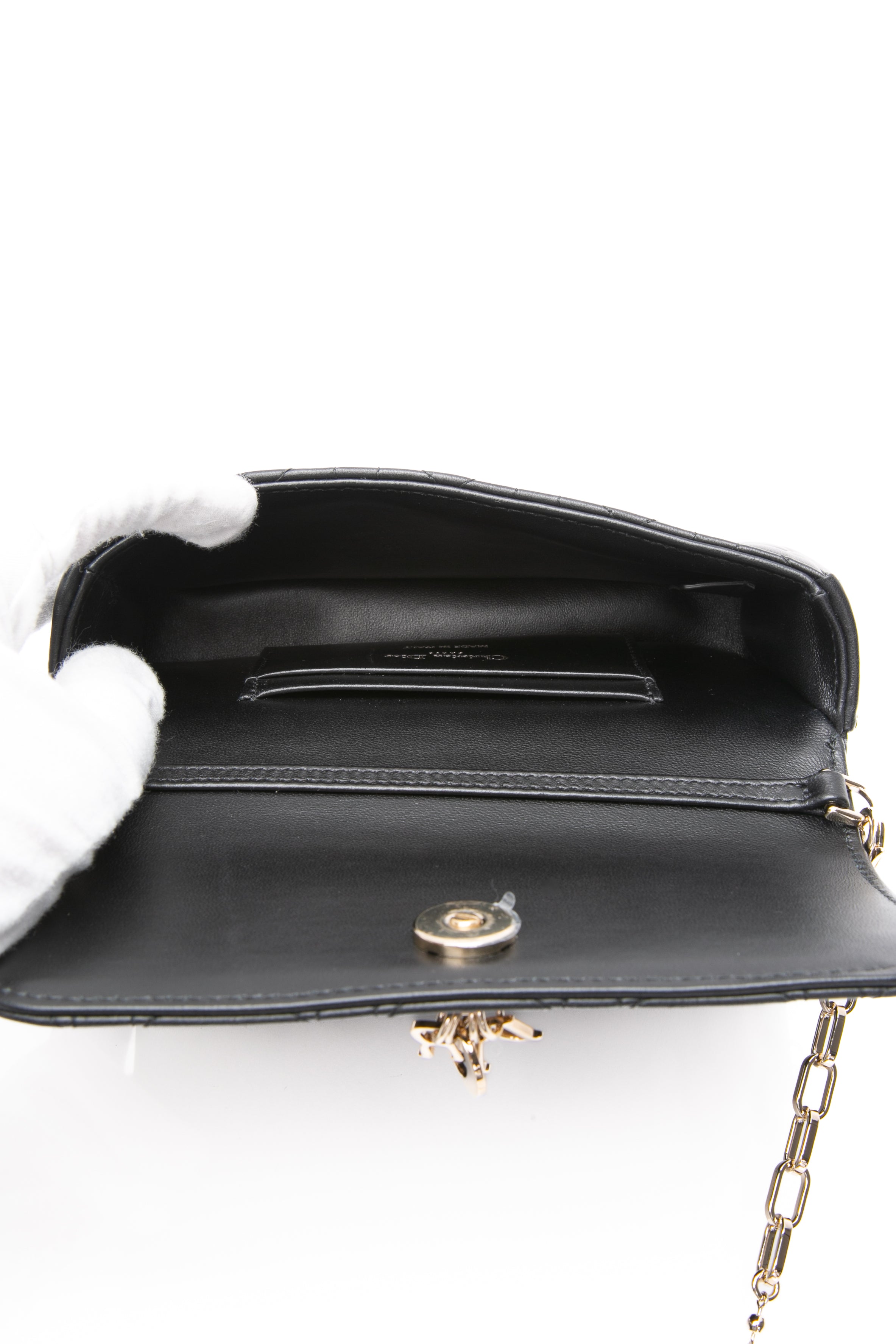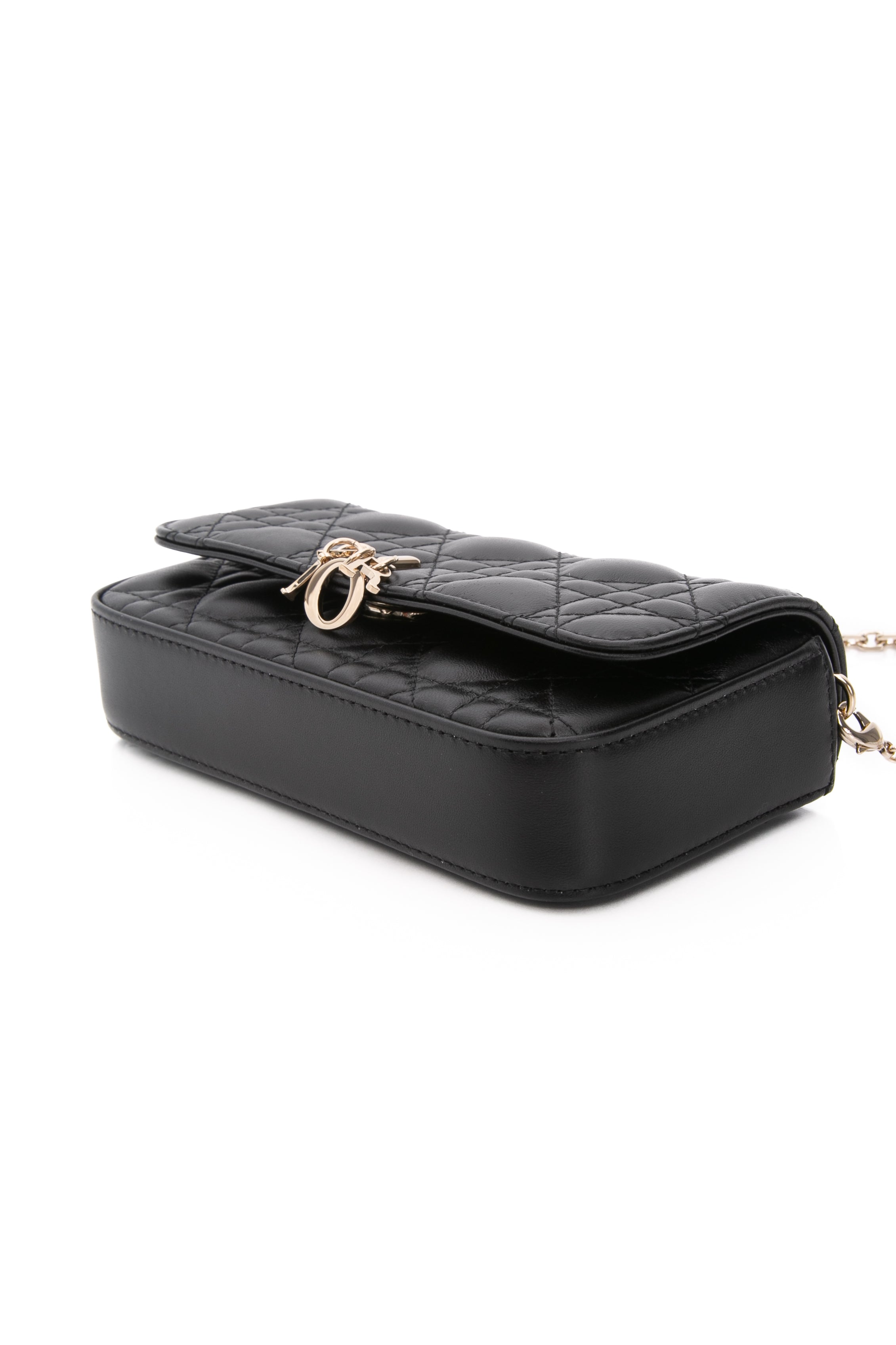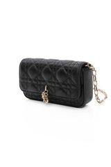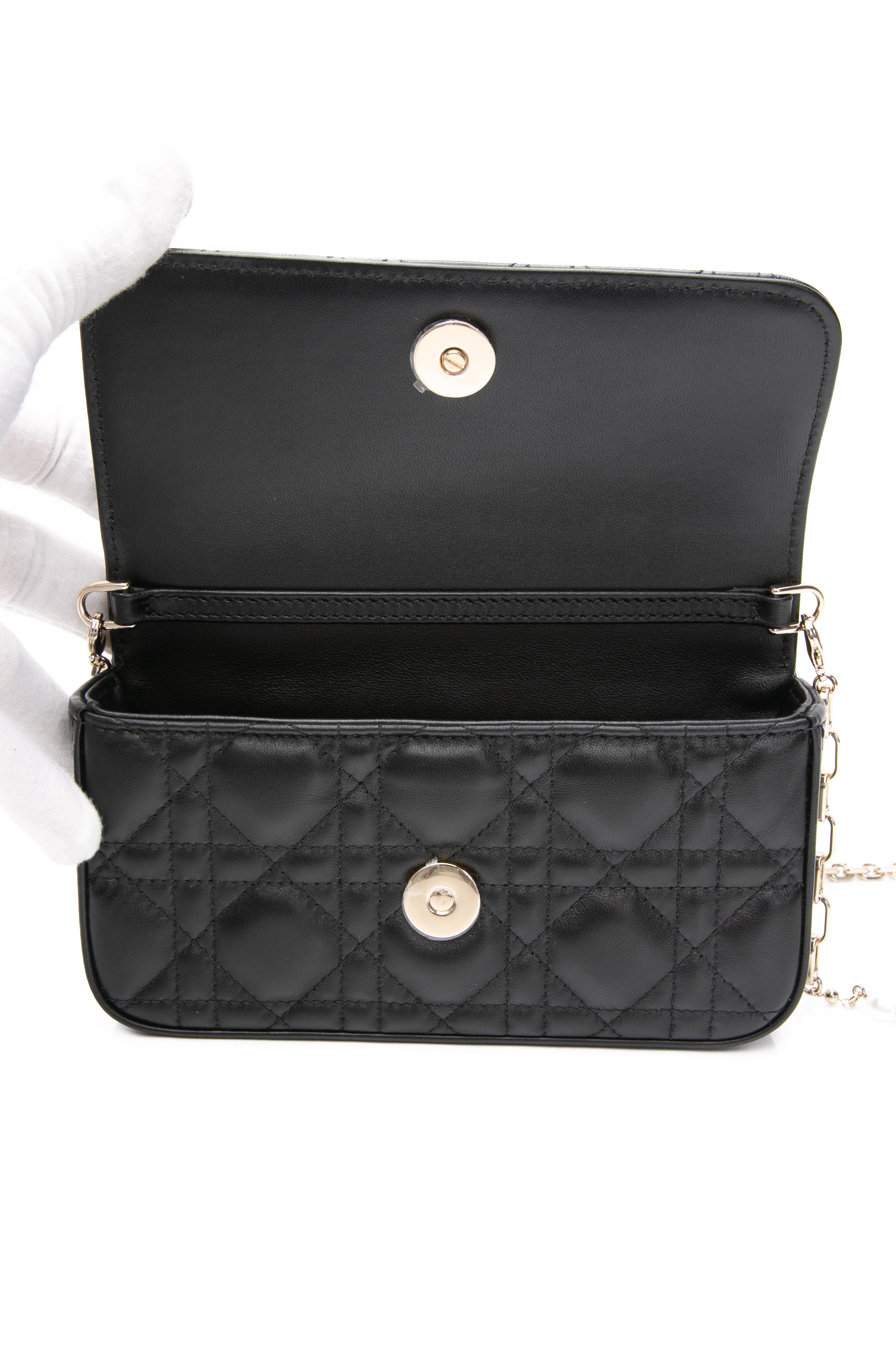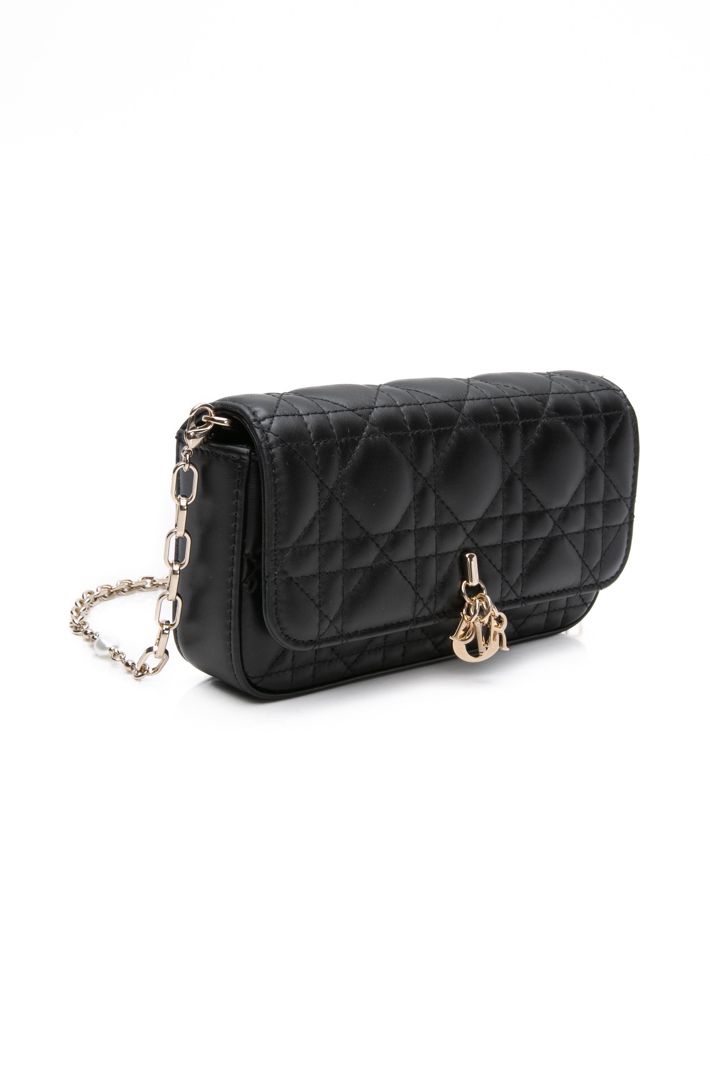 DIOR Black Lambskin Cannage Dior Talk Phone Pouch on Chain (New)