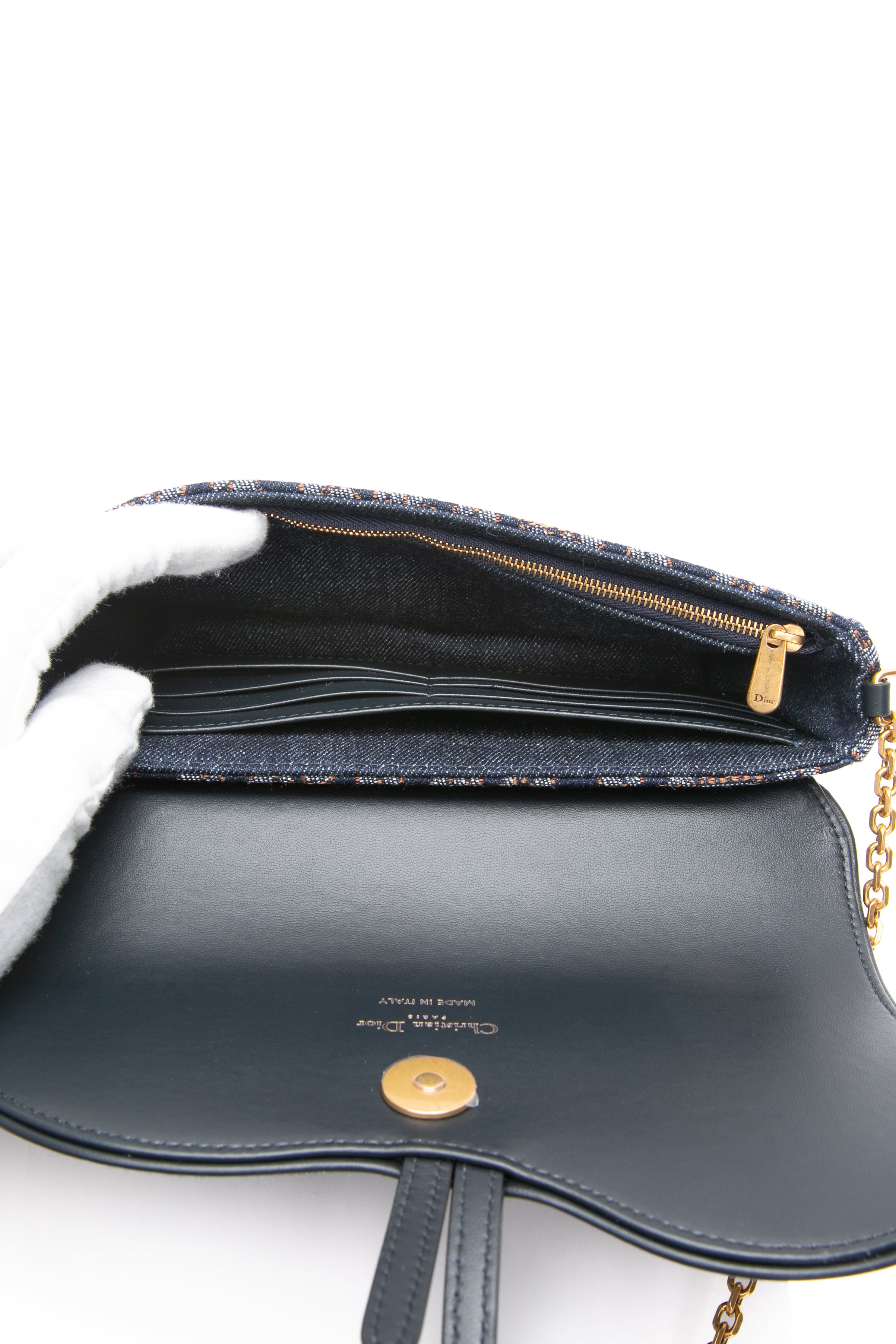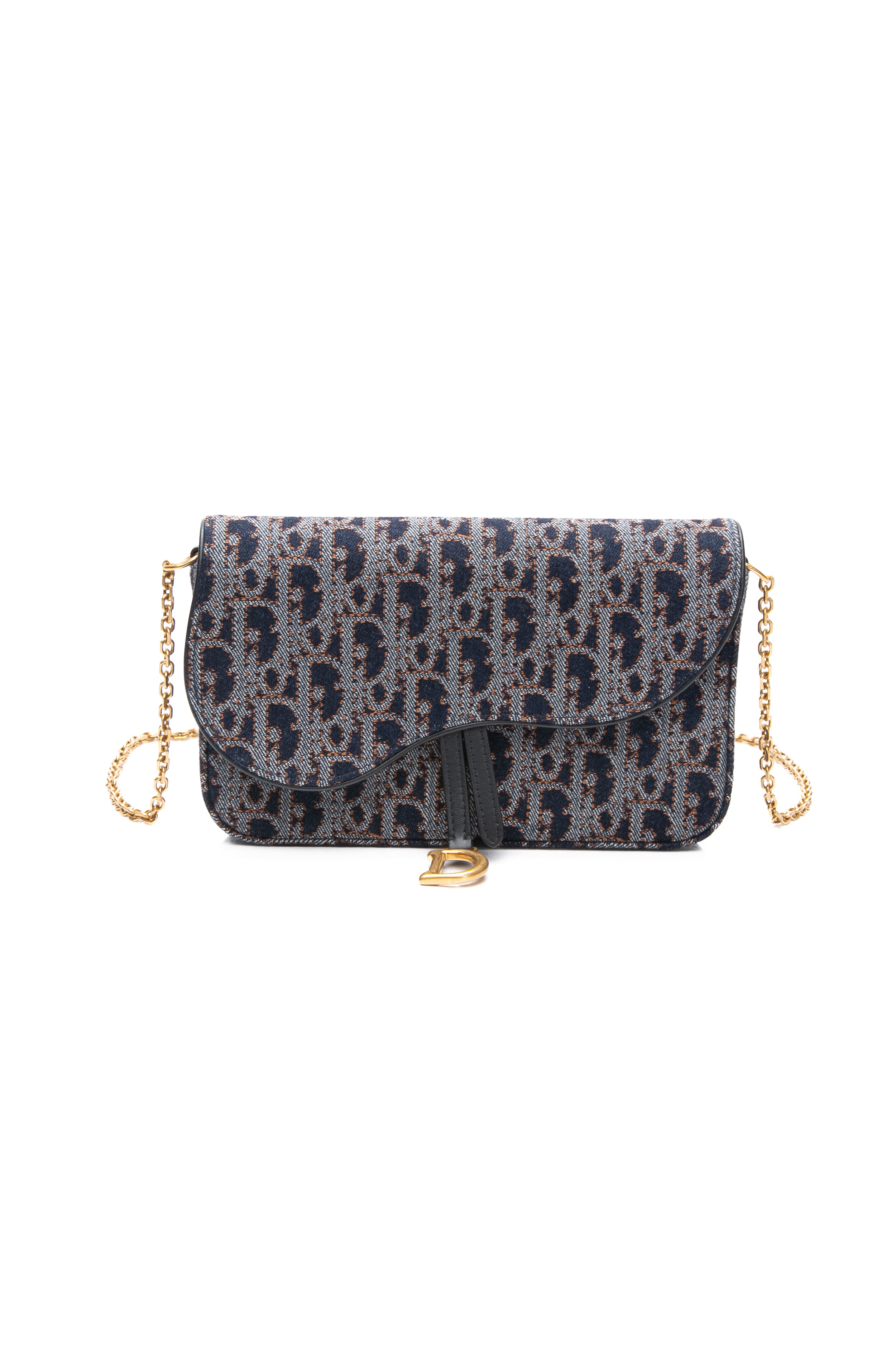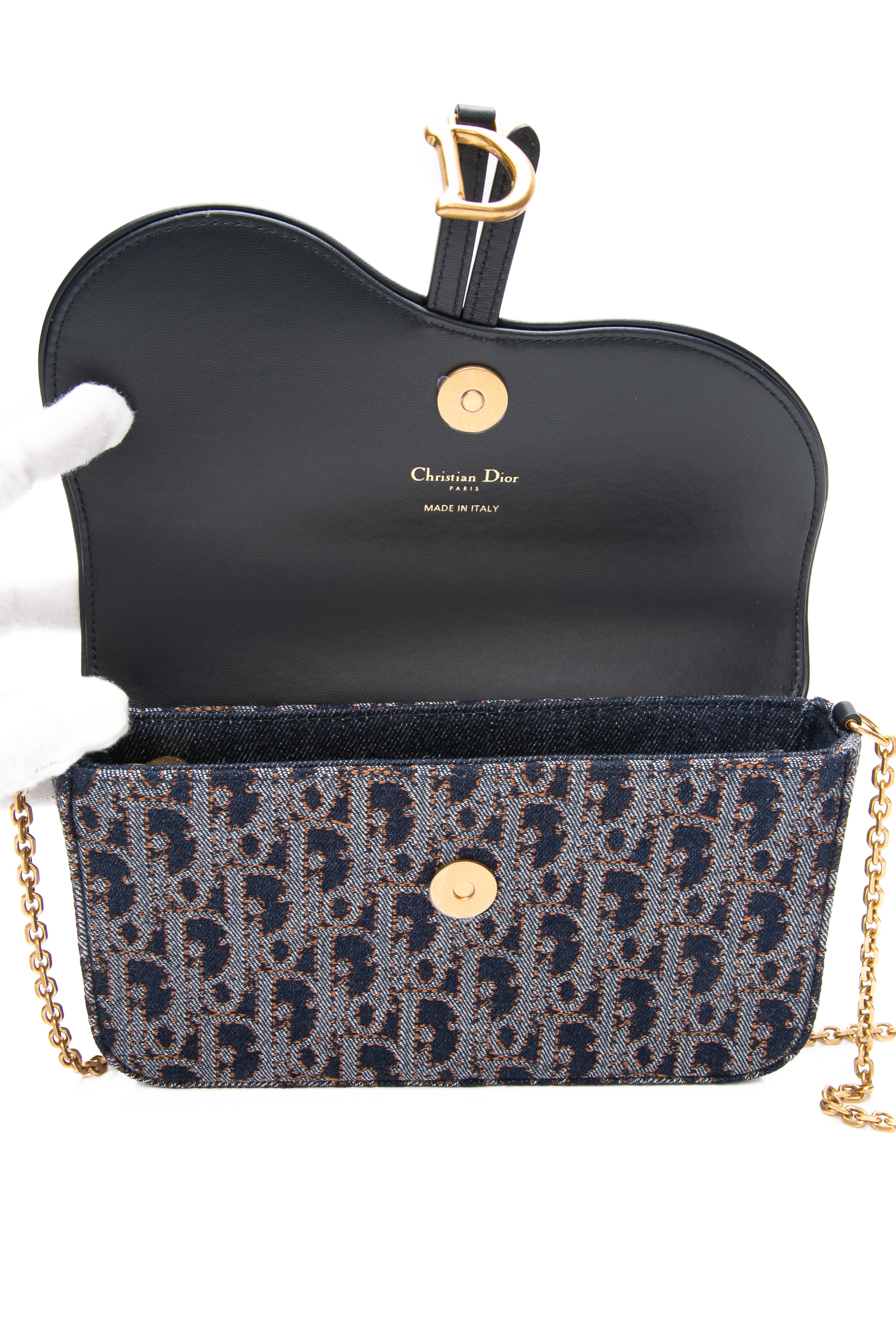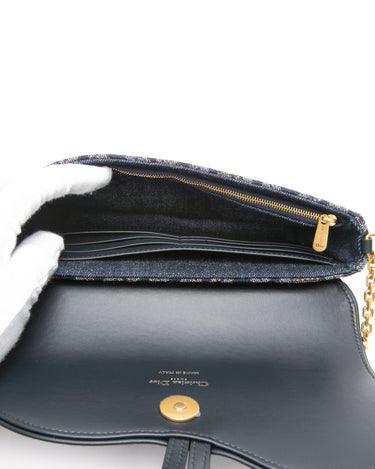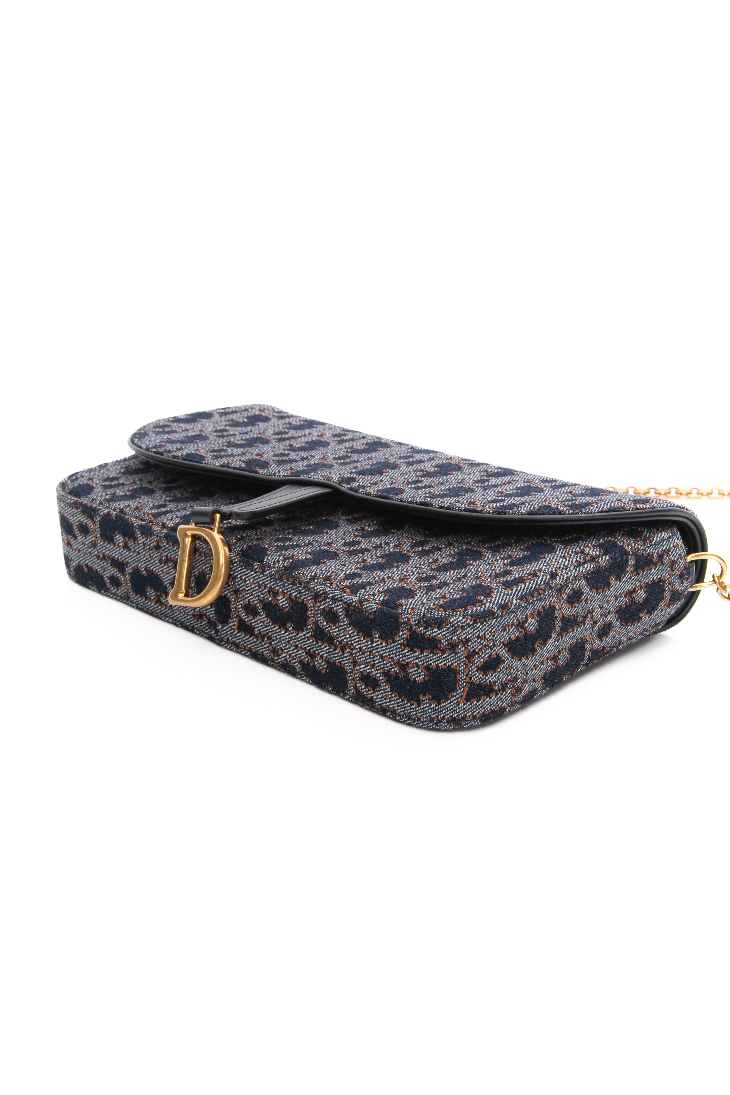 DIOR Blue and Tobacco Brown Dior Oblique Denim Medium Saddle Pouch with Chain (New)