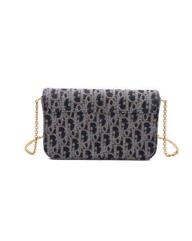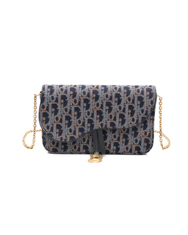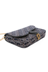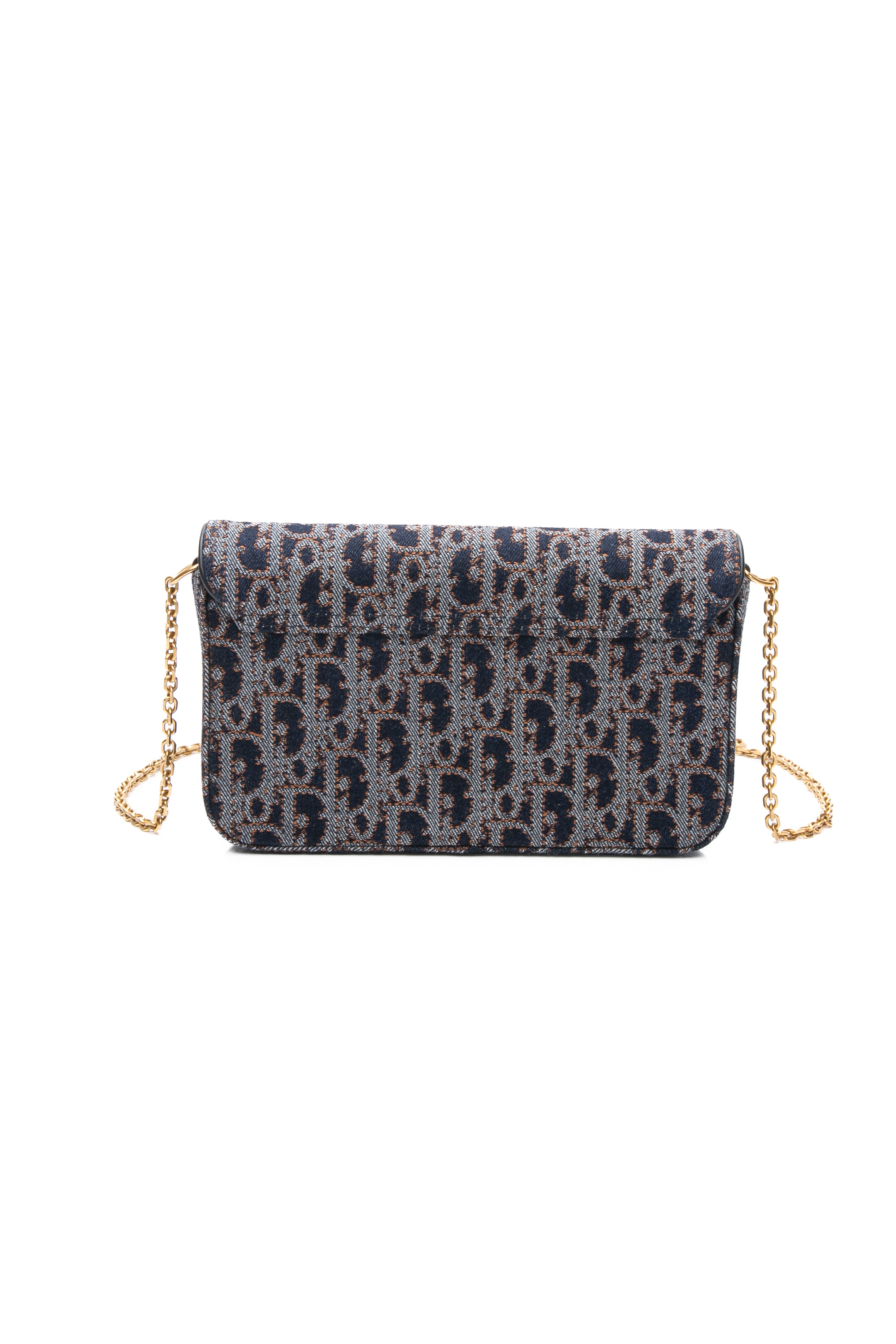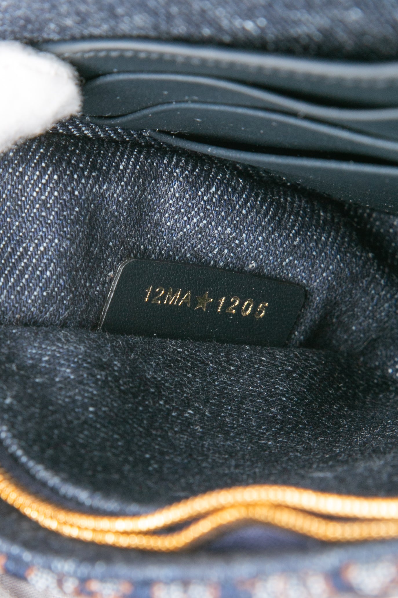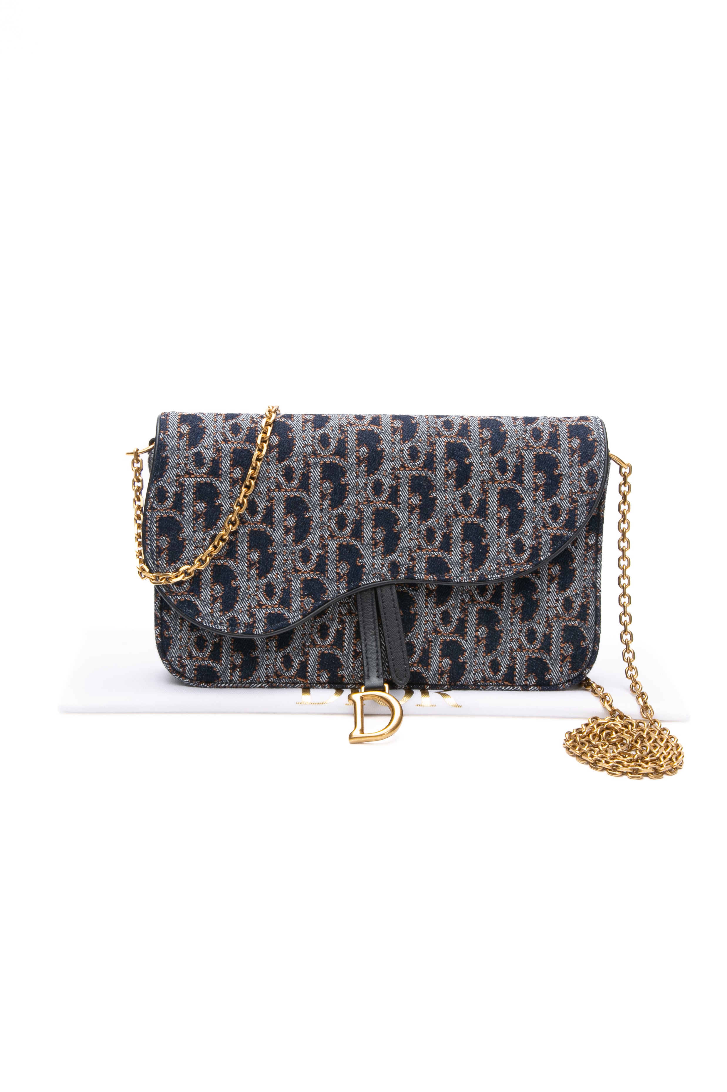DIOR Blue and Tobacco Brown Dior Oblique Denim Medium Saddle Pouch with Chain (New)