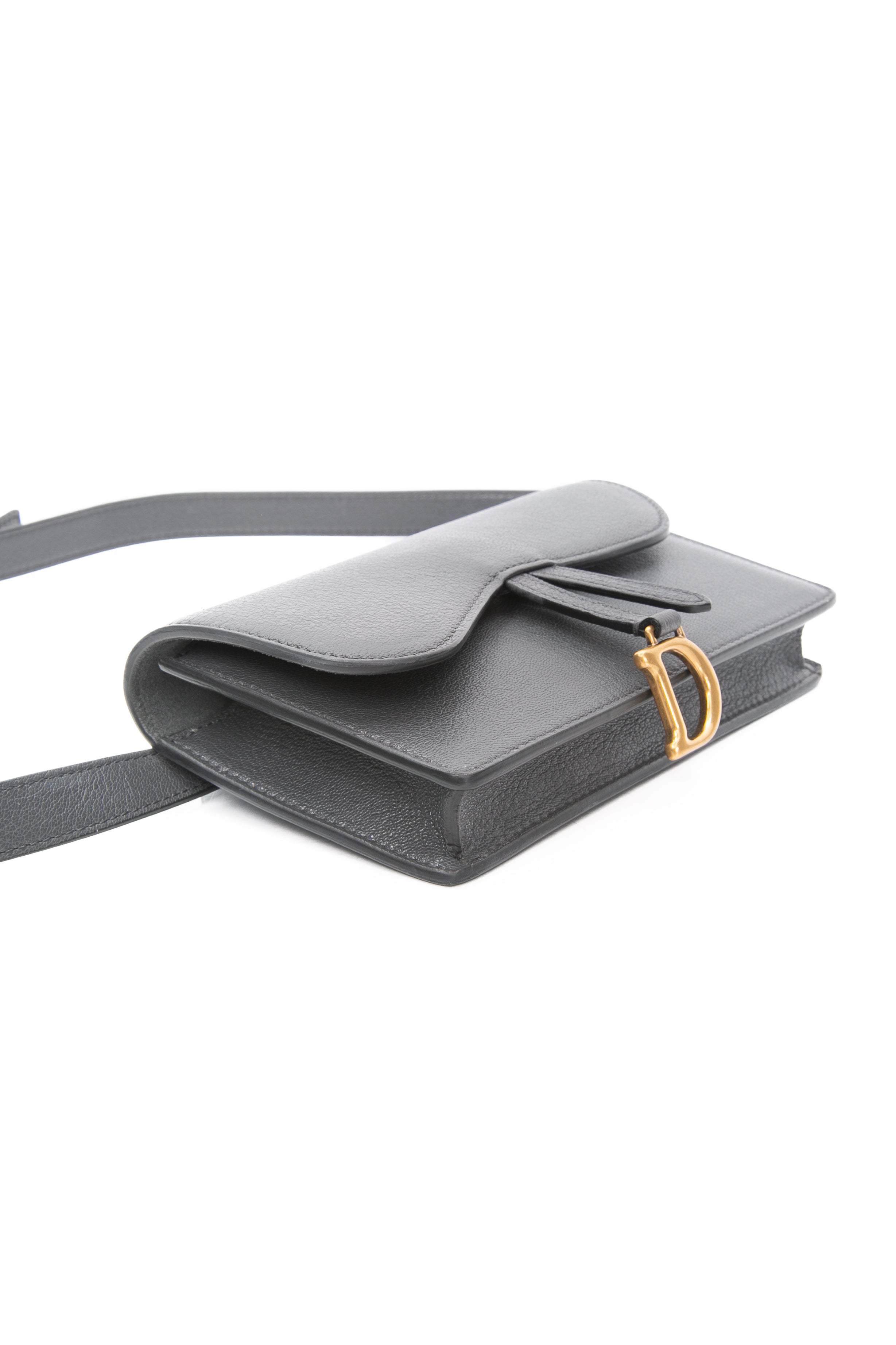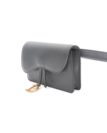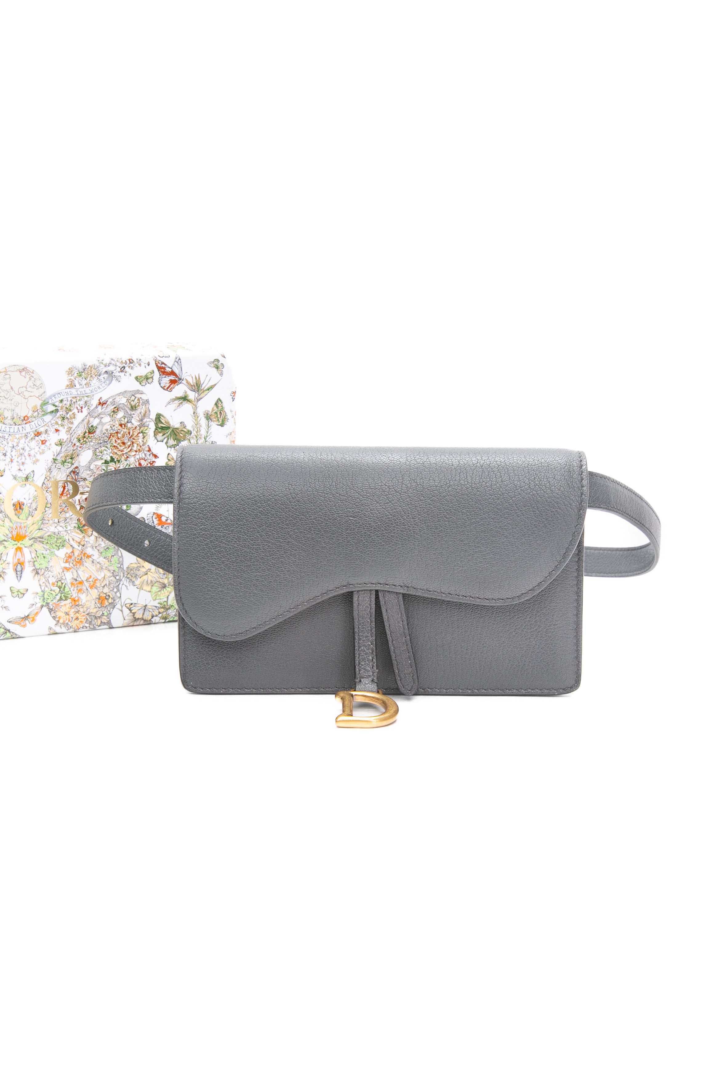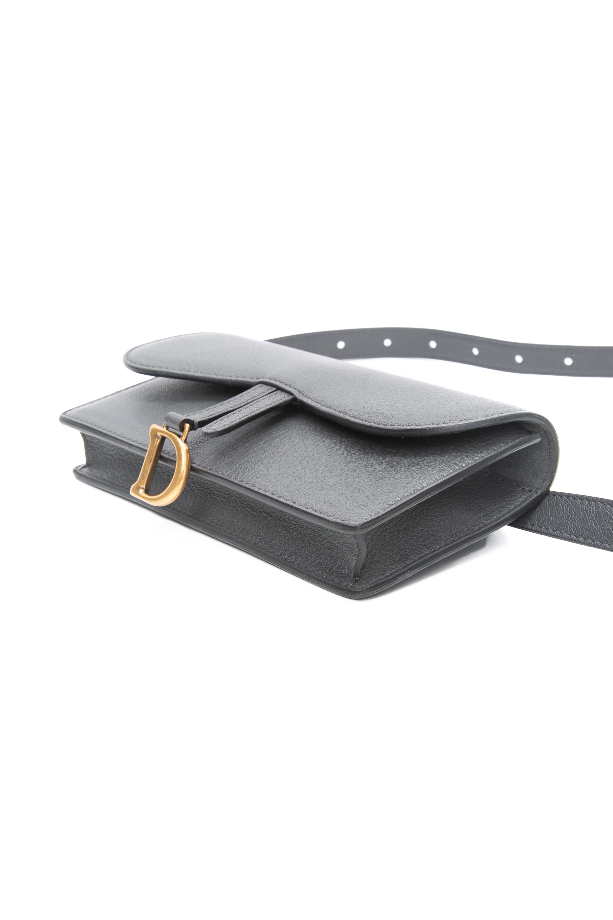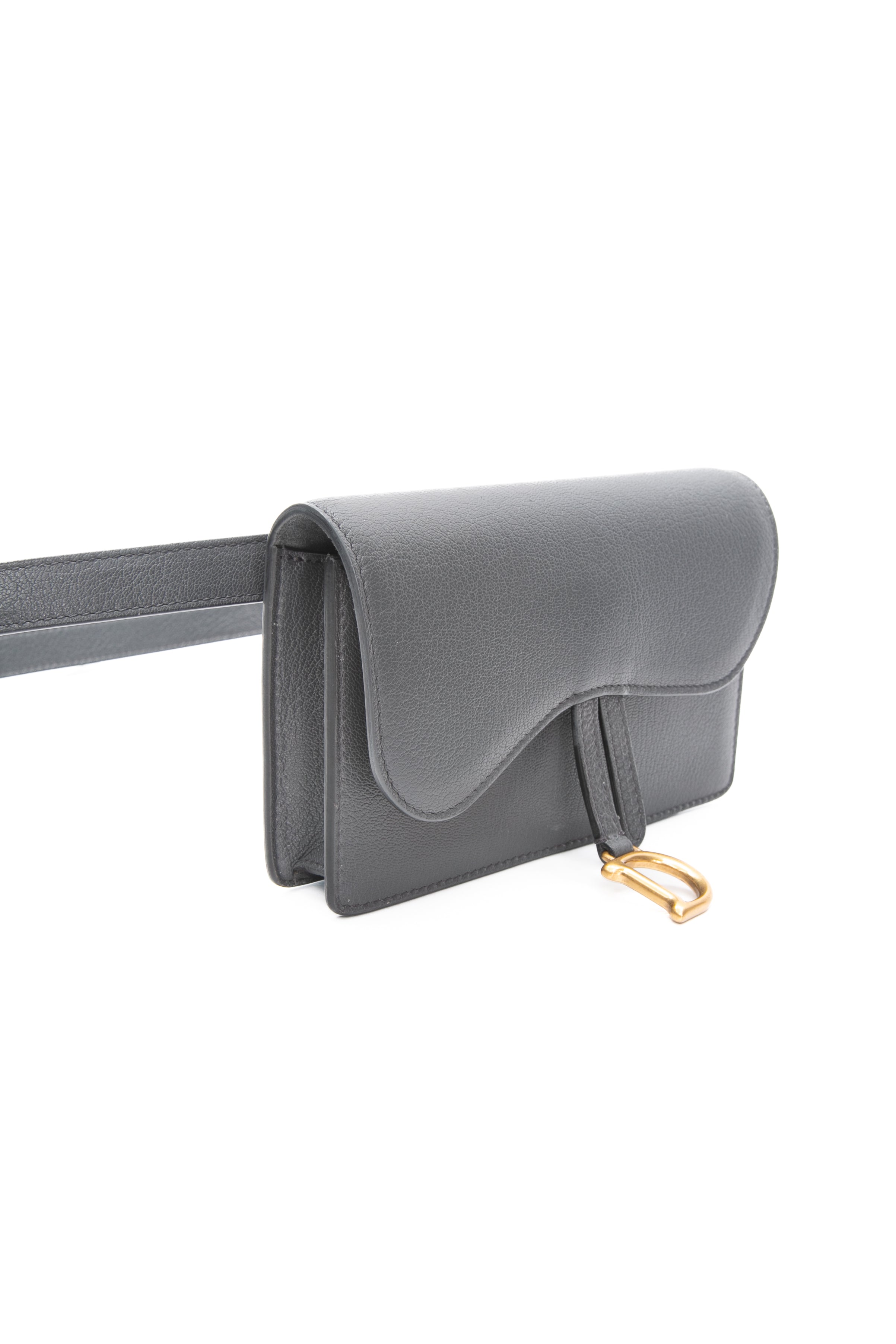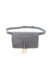 The Saddle belt pouch is a modern alternative to the classic pouch. Crafted in gray grained calfskin, it offers a subtle homage to the Saddle line with its flap and metal 'D' charm. Its thin removable belt will bring an added touch to any outfit. The belt pouch may be worn over the shoulder, crossbody or carried by hand.
