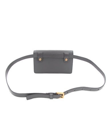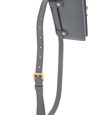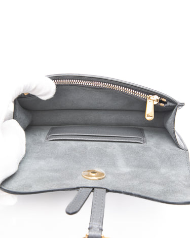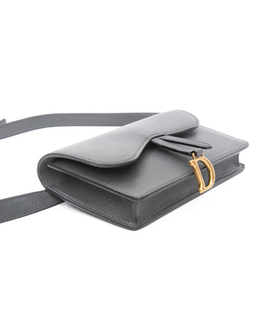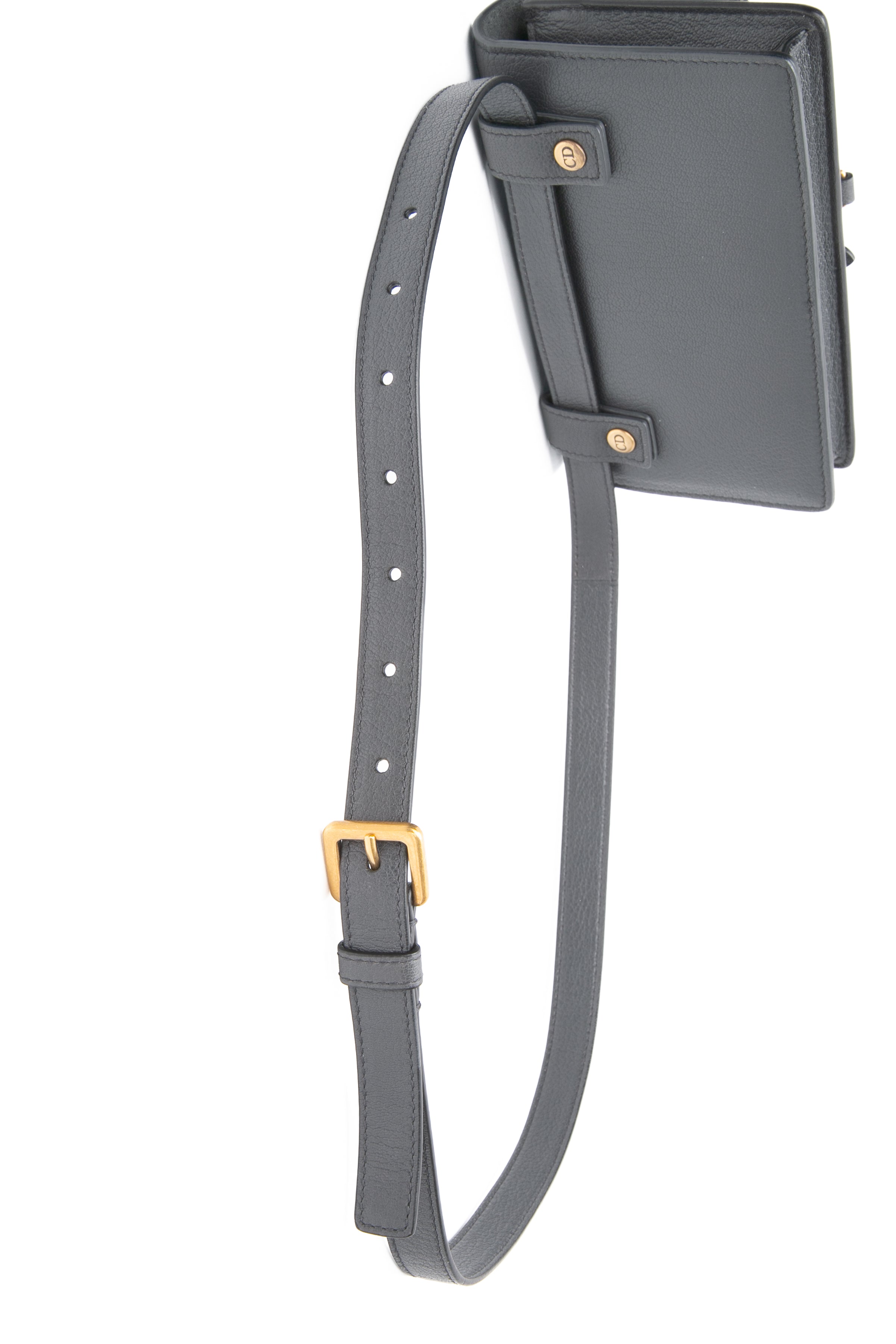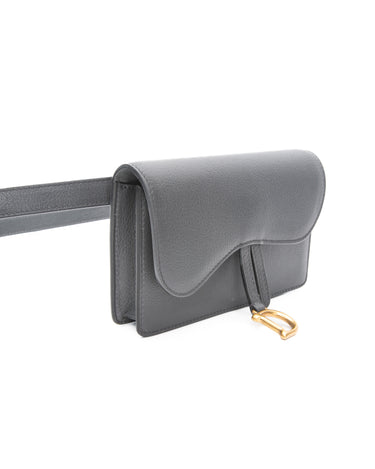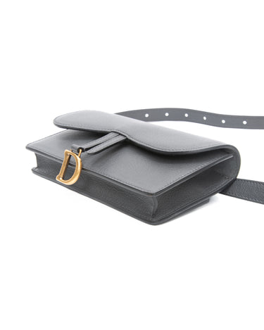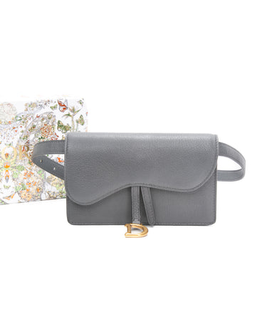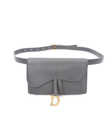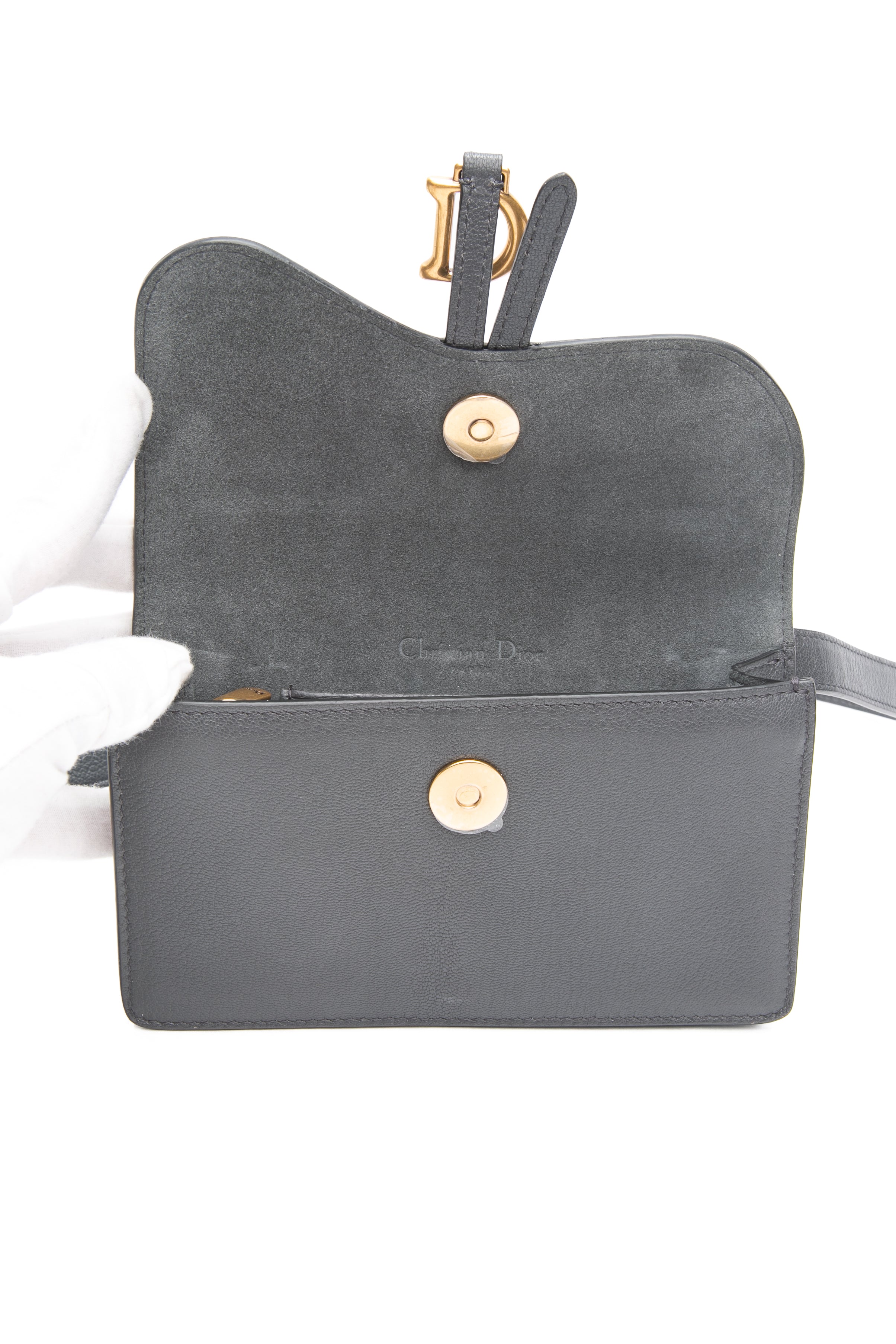 The Saddle belt pouch is a modern alternative to the classic pouch. Crafted in gray grained calfskin, it offers a subtle homage to the Saddle line with its flap and metal 'D' charm. Its thin removable belt will bring an added touch to any outfit. The belt pouch may be worn over the shoulder, crossbody or carried by hand.