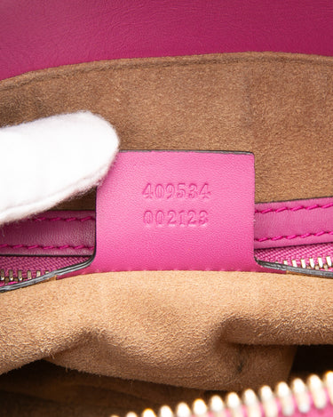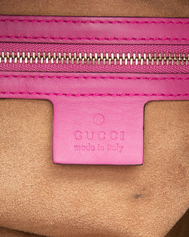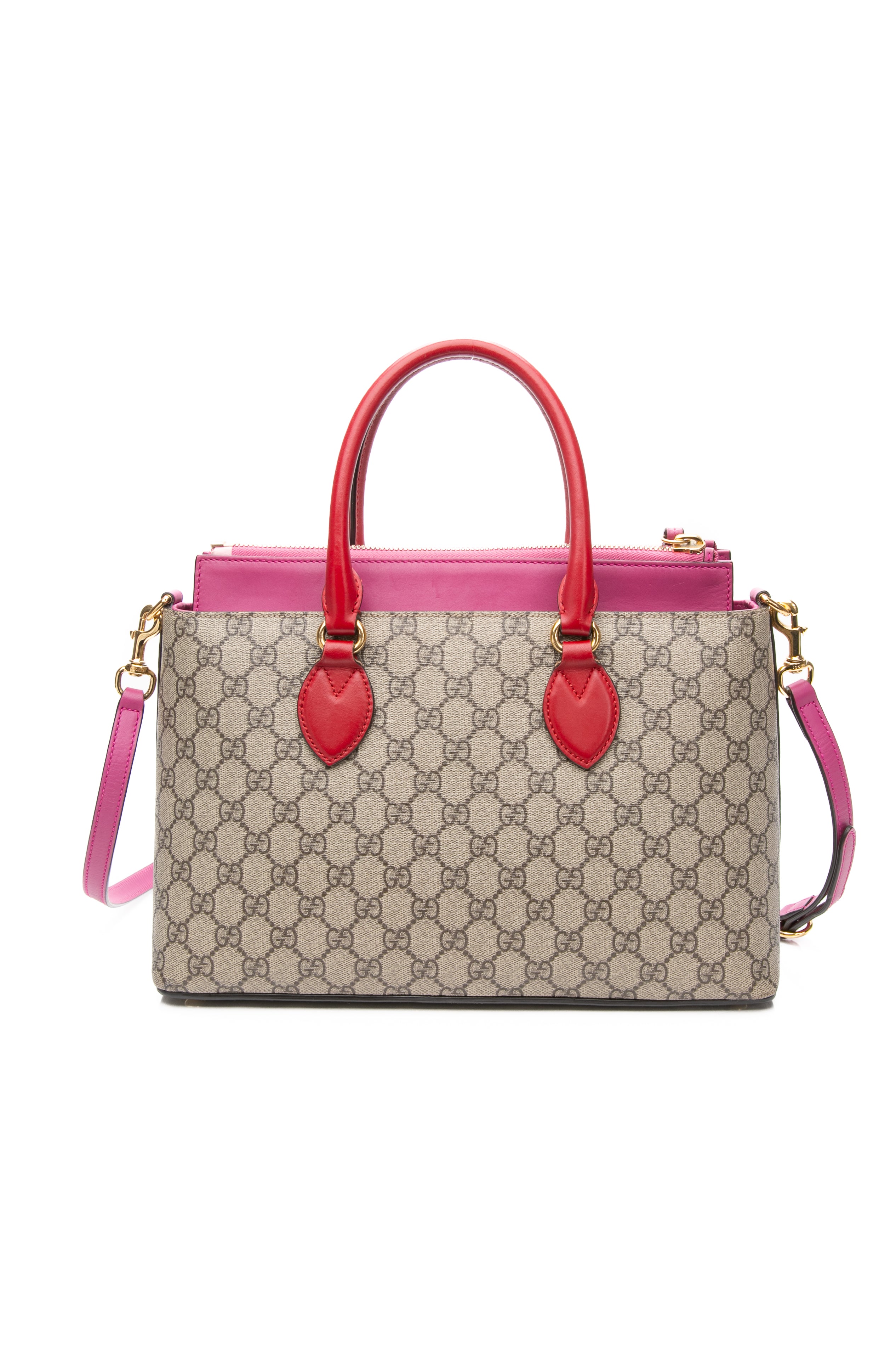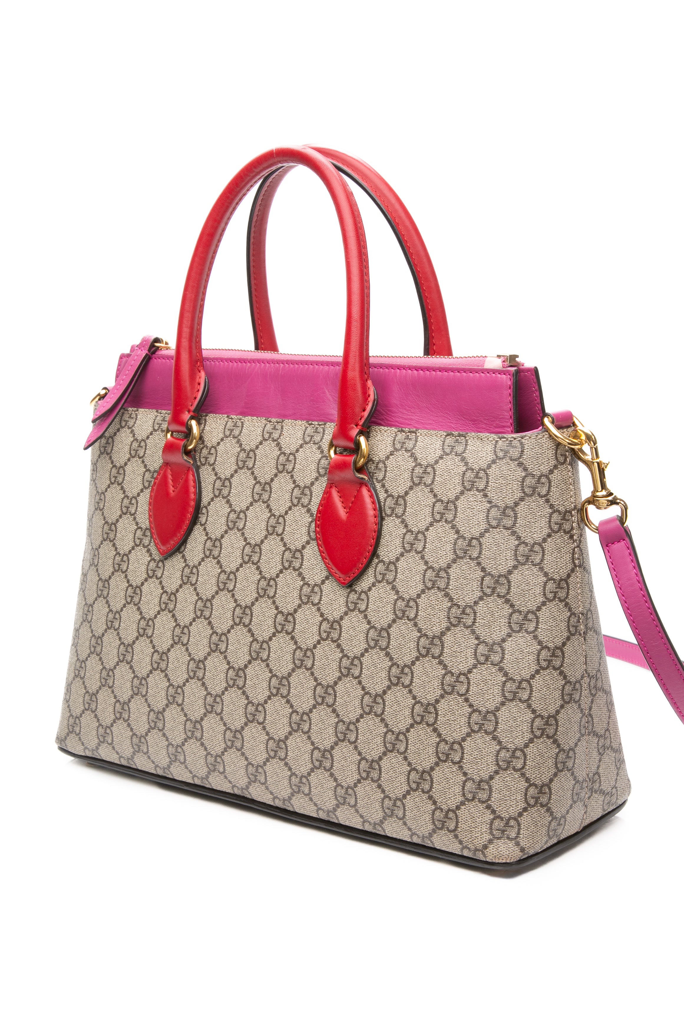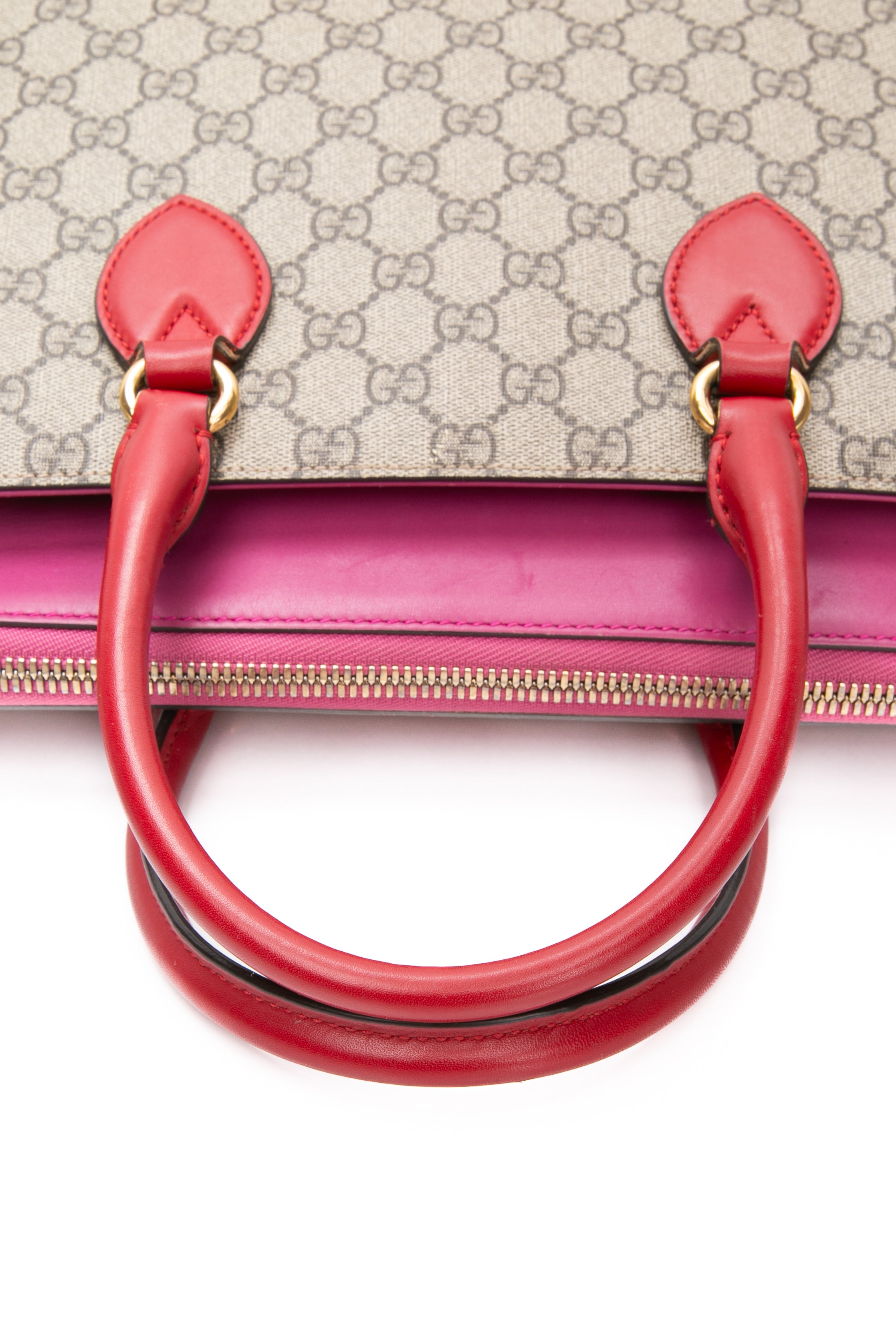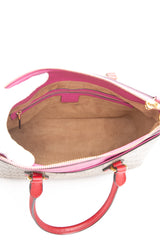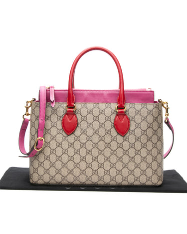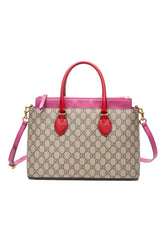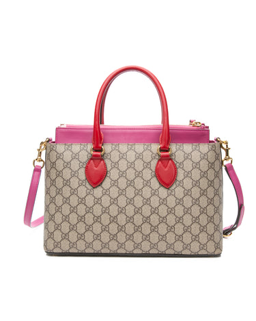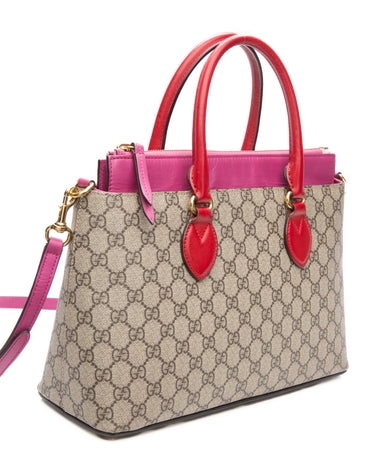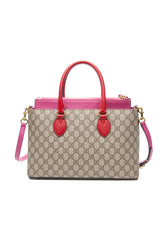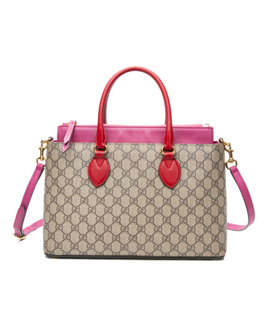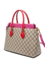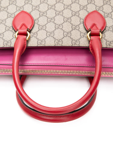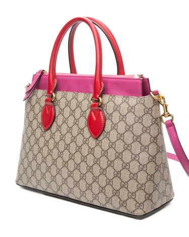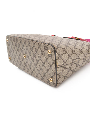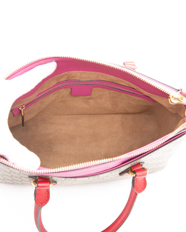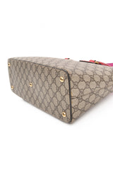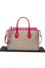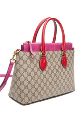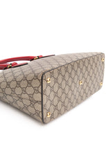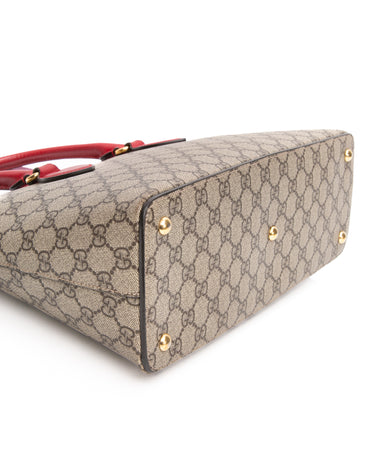 GUCCI Beige Ebony Hibiscus Red New Rosette GG Supreme Monogram Moon Calfskin Small Zip Top Tote Bag