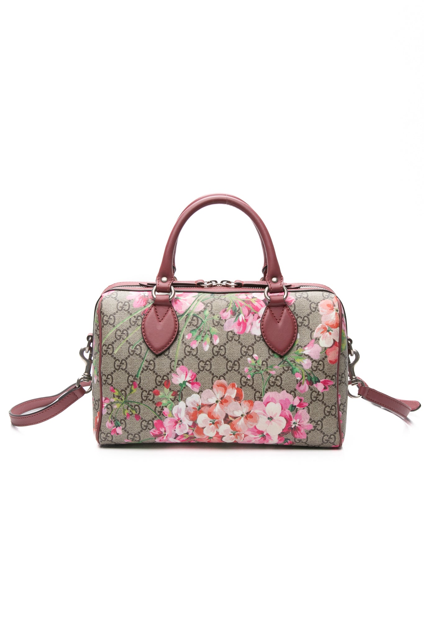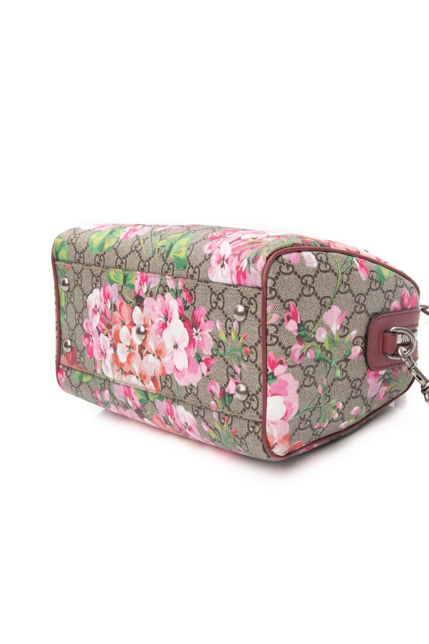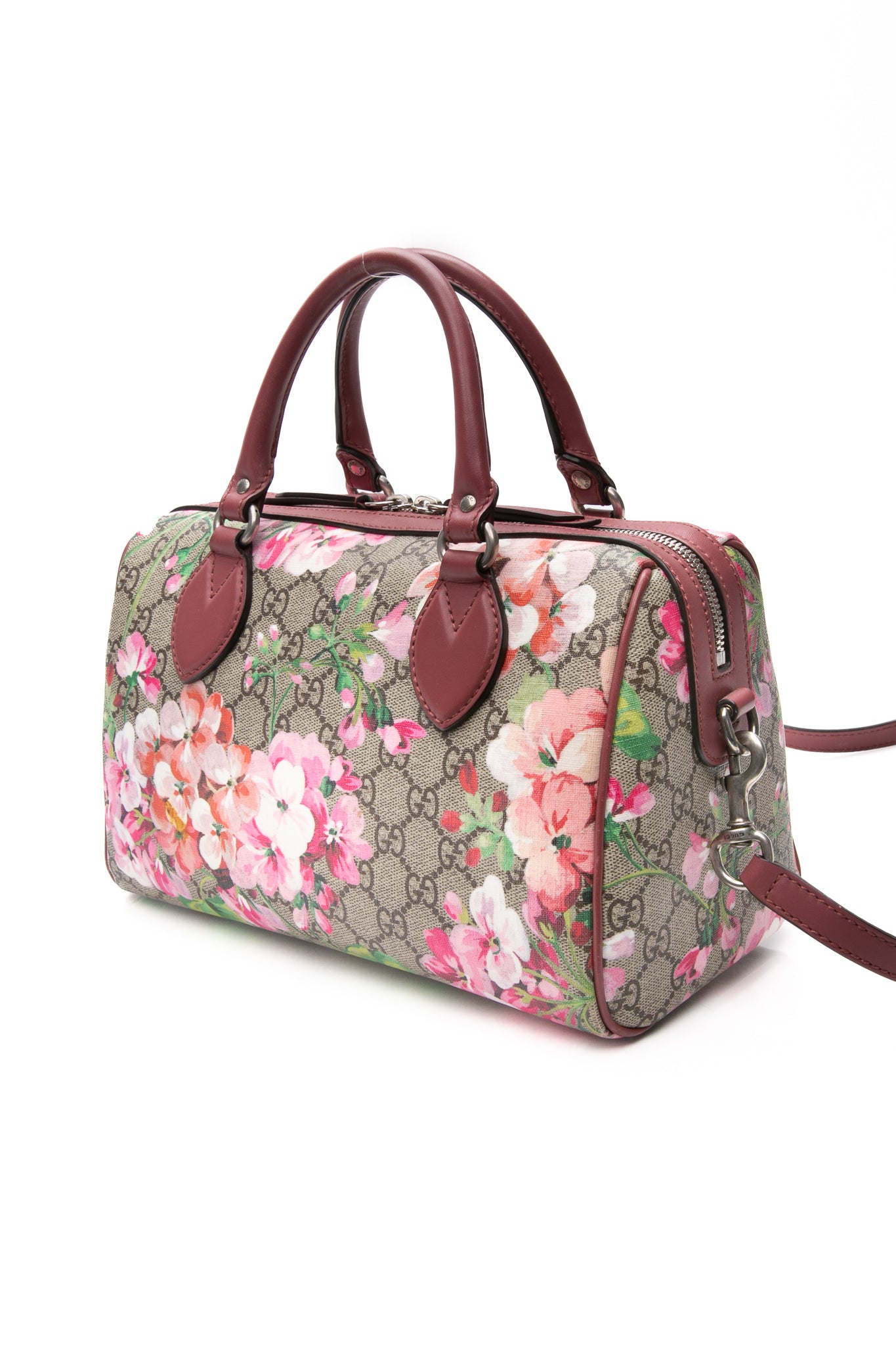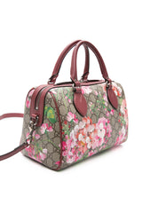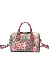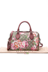 GUCCI Beige Multicolor Dry Rose GG Supreme Monogram Blooms Small Boston Crossbody Bag