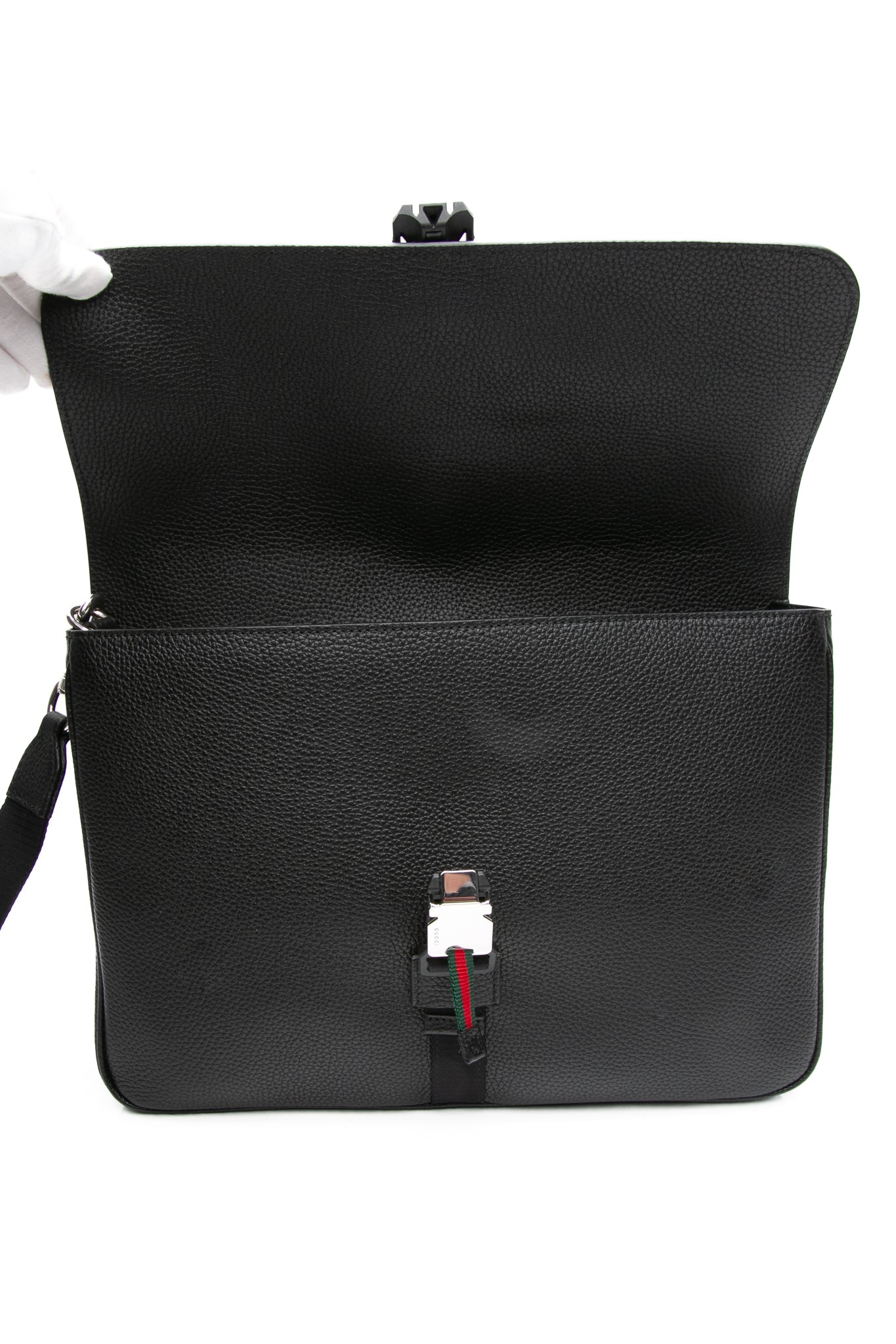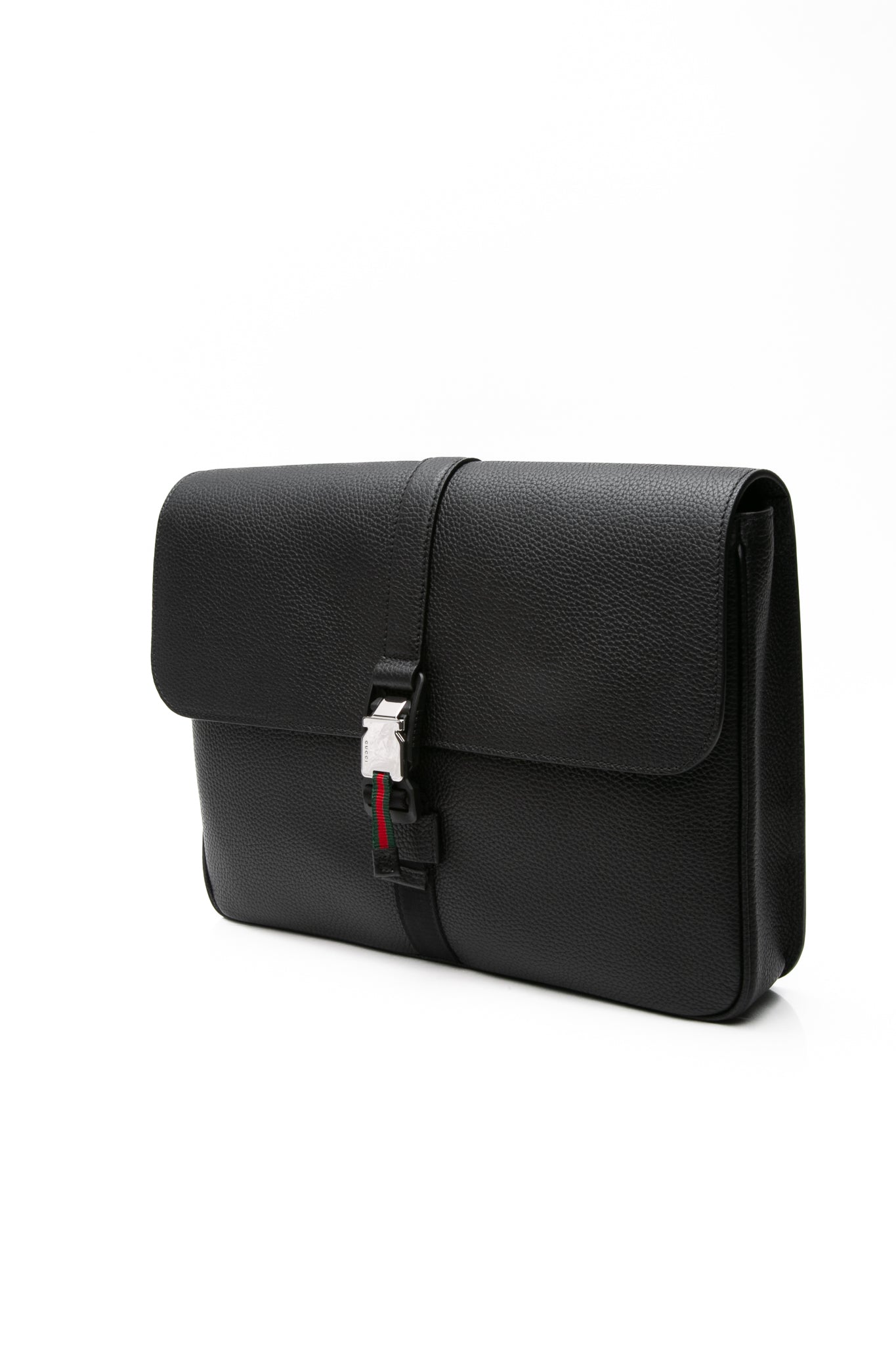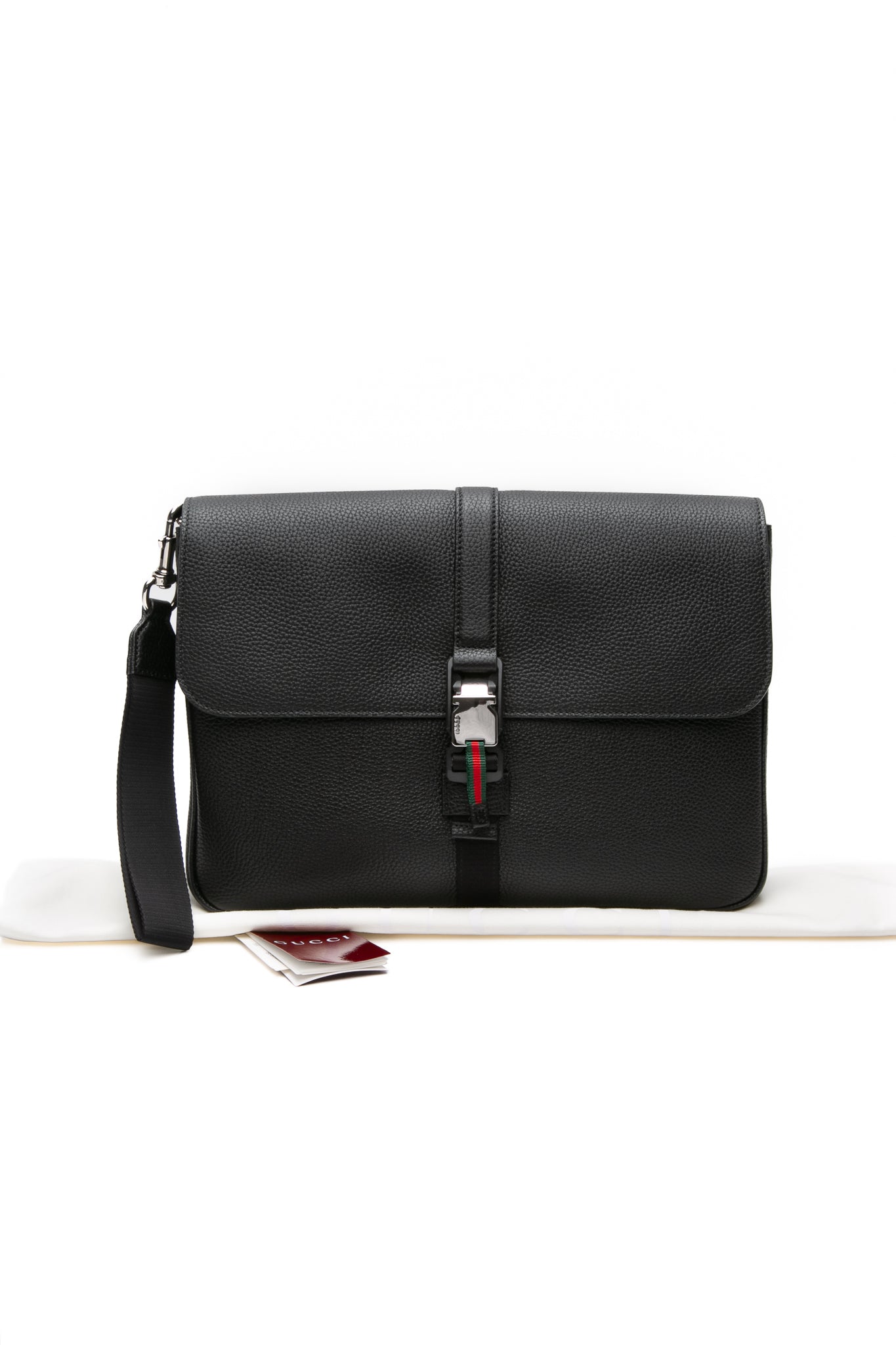 GUCCI Black Calfskin Web Medium Business Case (New)