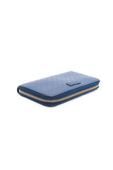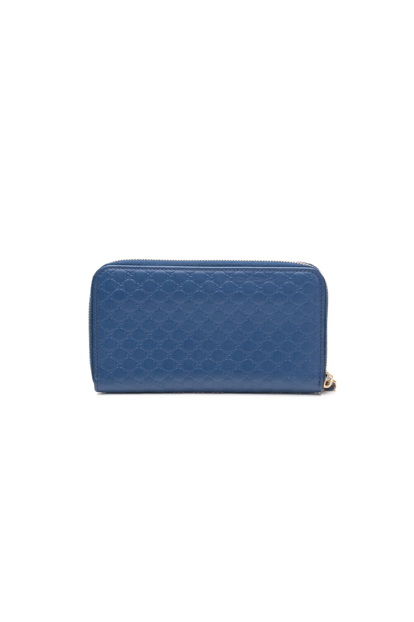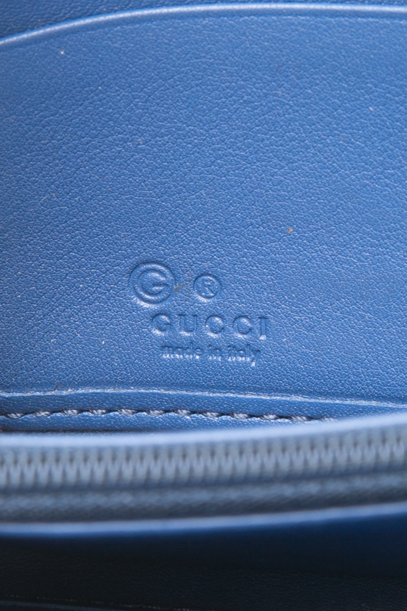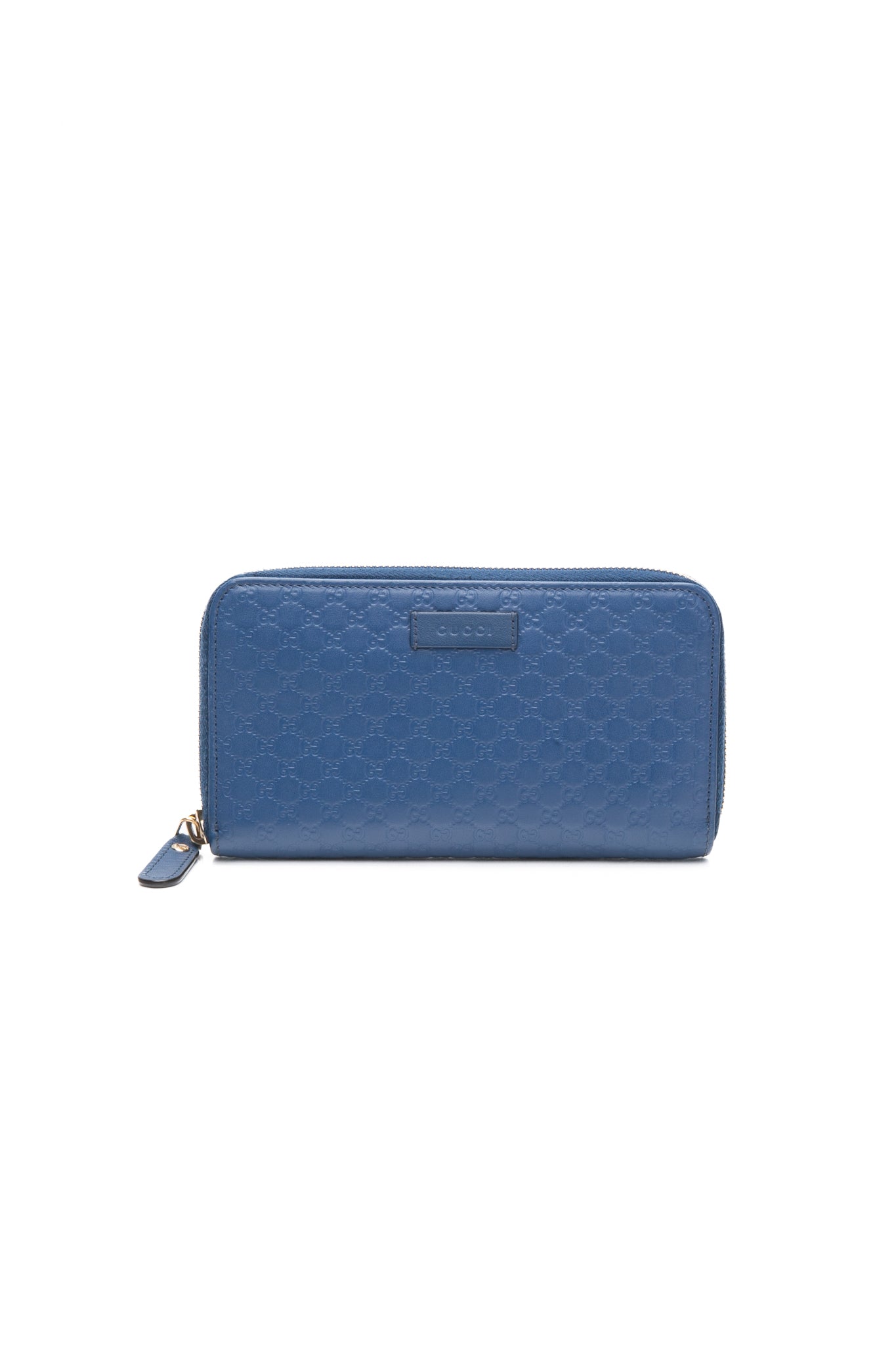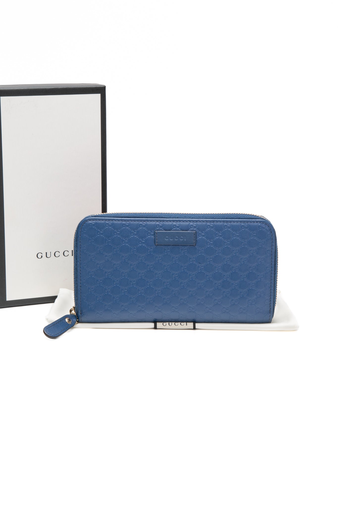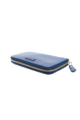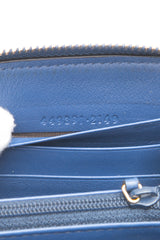 GUCCI Blue Leather Microguccissima Zip Around Wallet