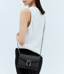 GUCCI Dionysus Black Calfskin Leather Wallet on Chain Crossbody Bag