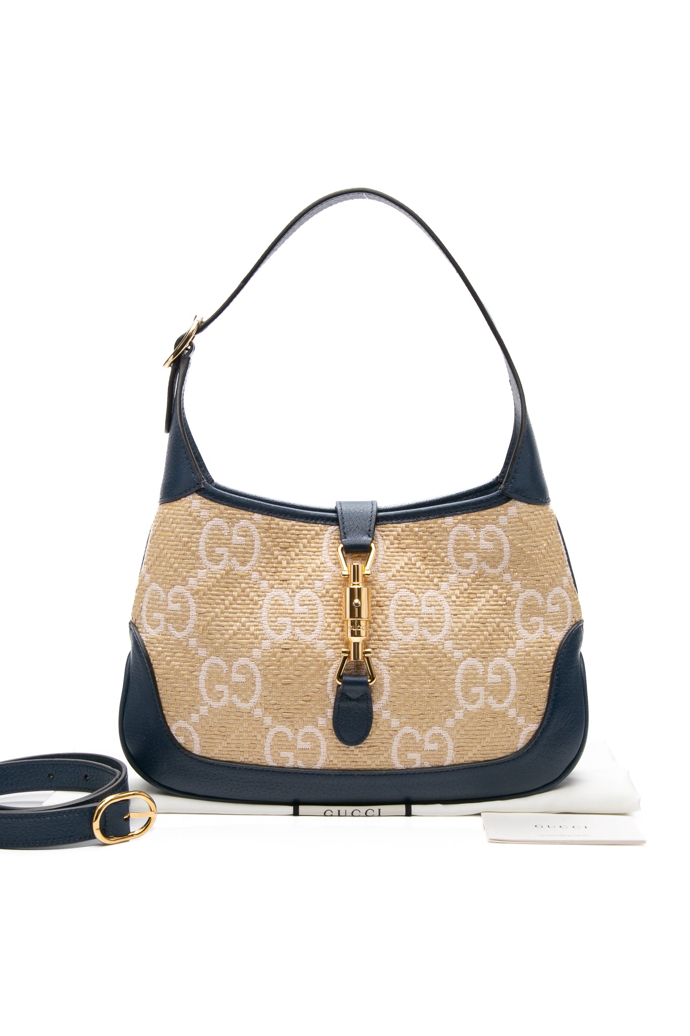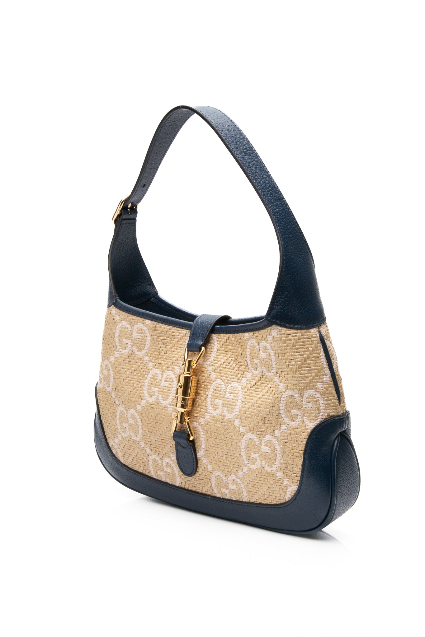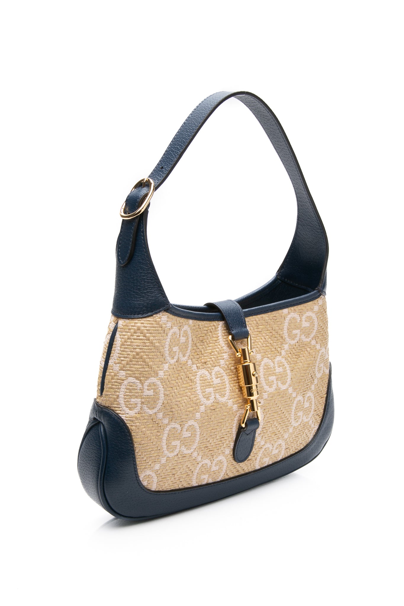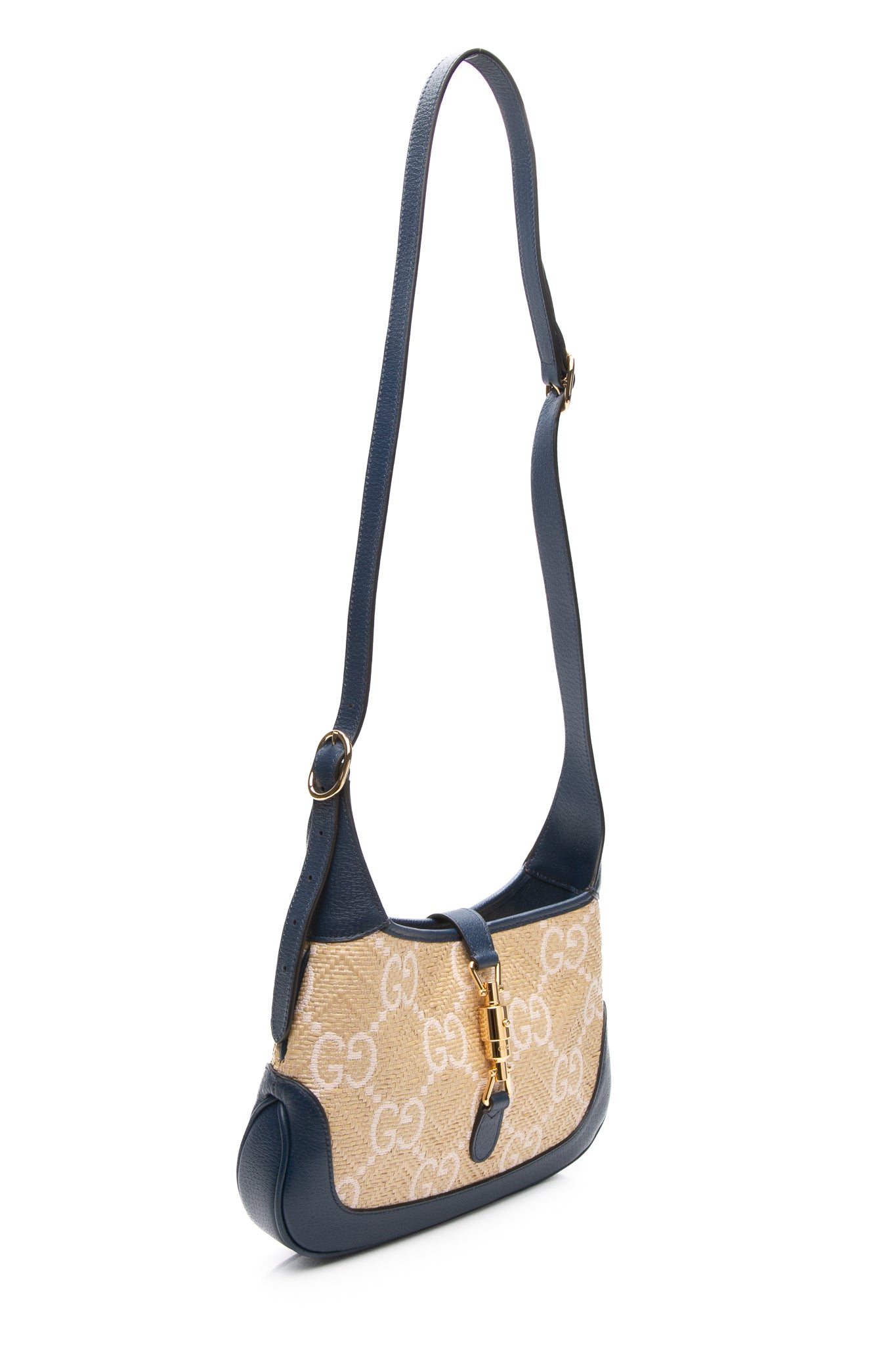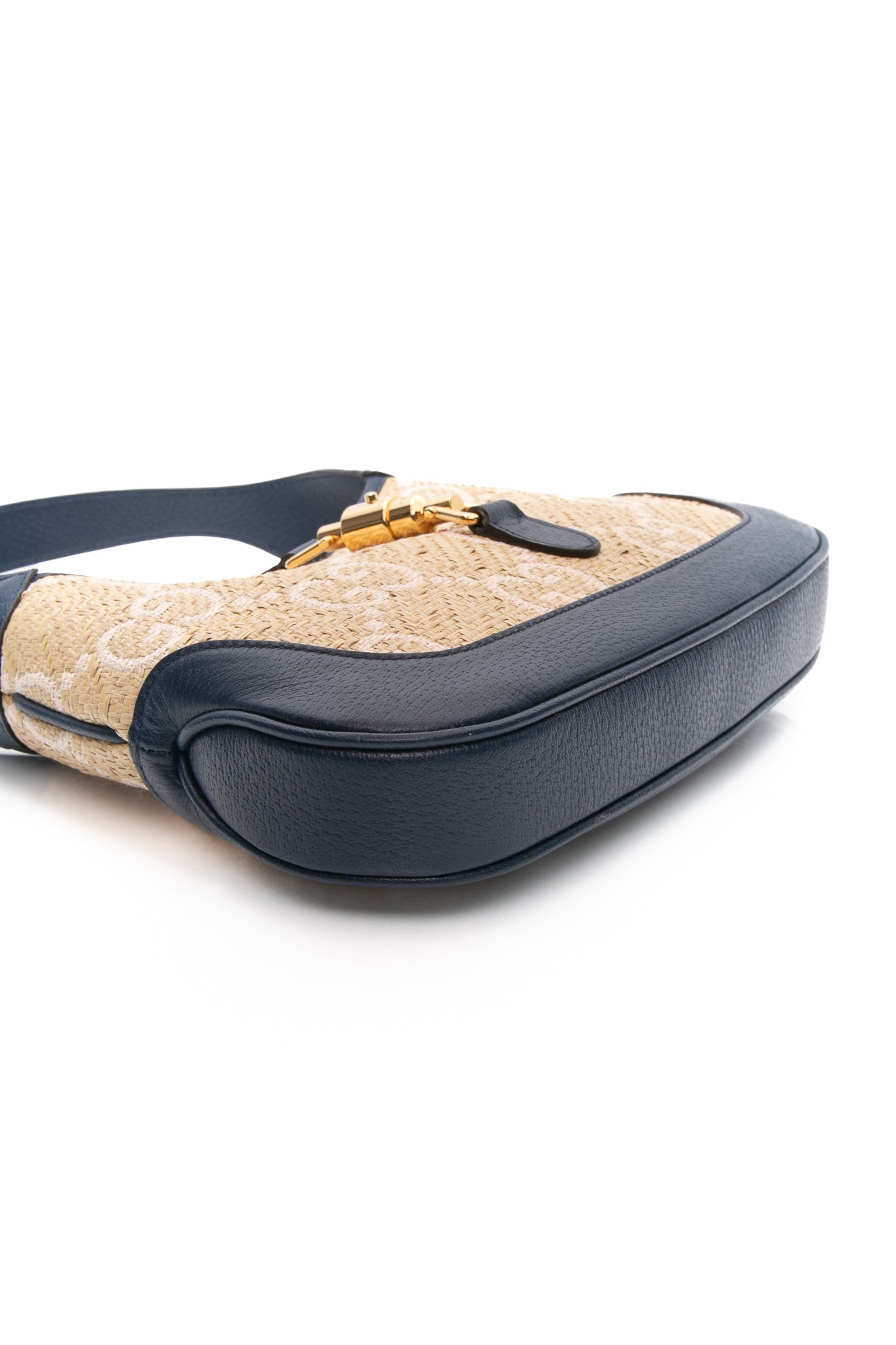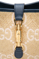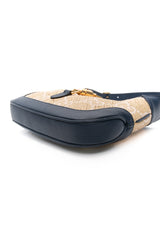 GUCCI Navy Blue Raffia GG Motif Jackie 1961 Small Shoulder/Crossbody Bag