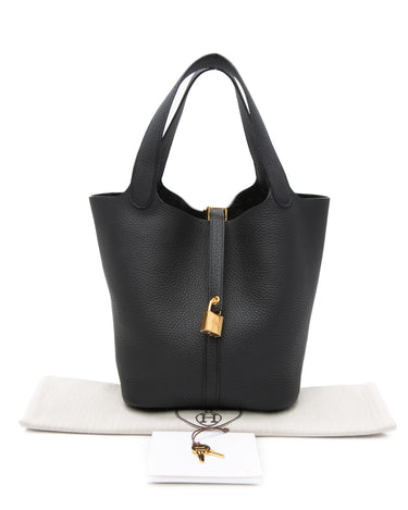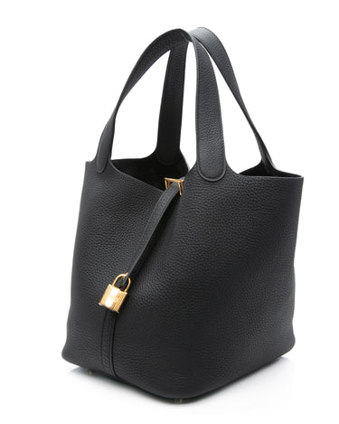 HERMES Black Noir Clemence Picotin Lock 22 Bag (2025 Model)