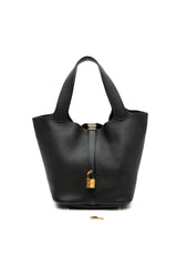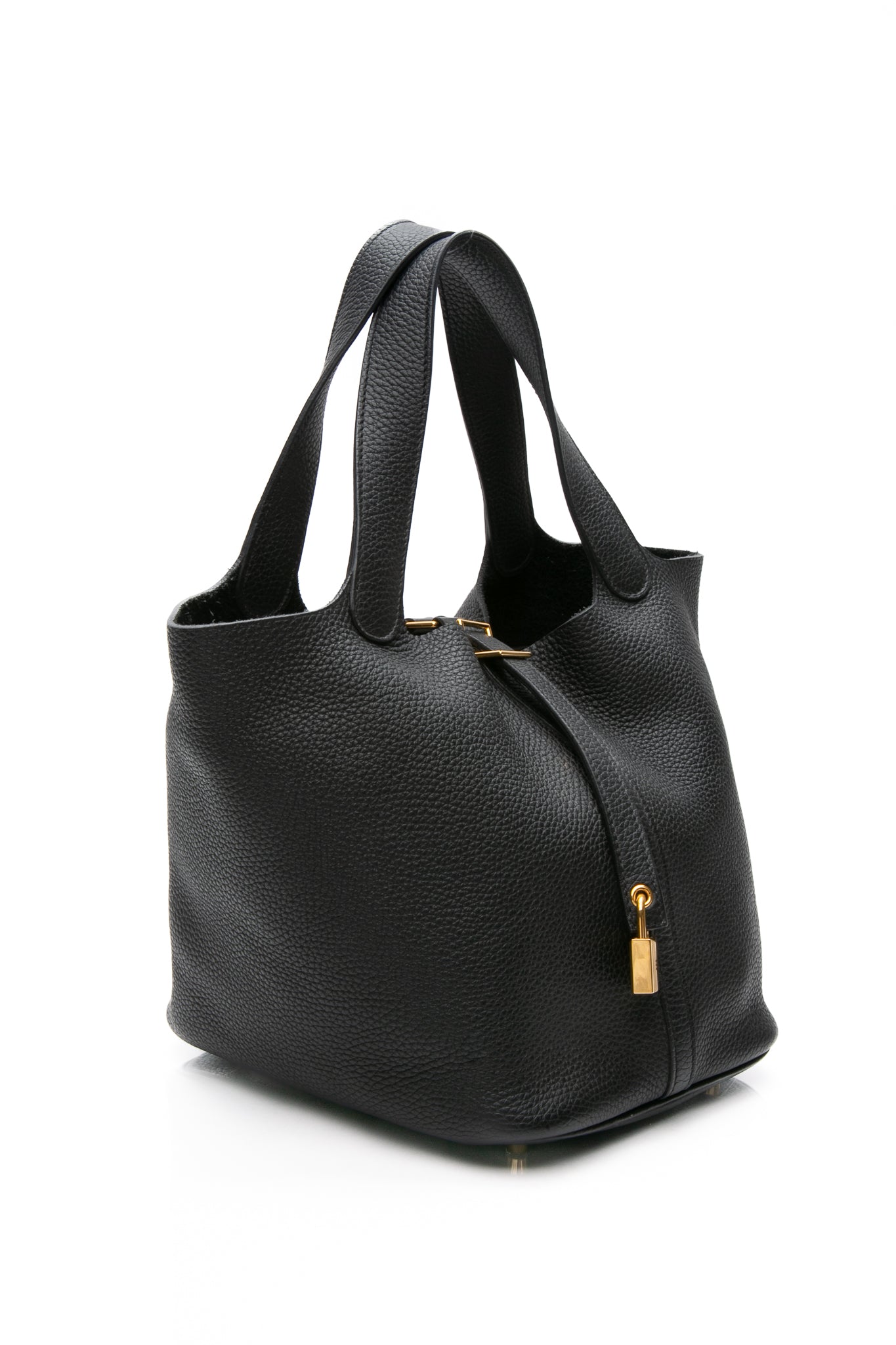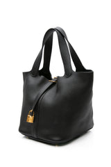 HERMES Black Noir Togo Picotin Lock 22 Bag