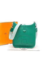 HERMES Vert Vertigo Green Evelyne TPM Clemence Leather Crossbody (New)